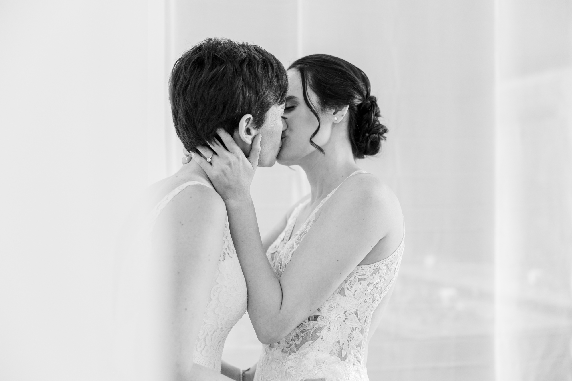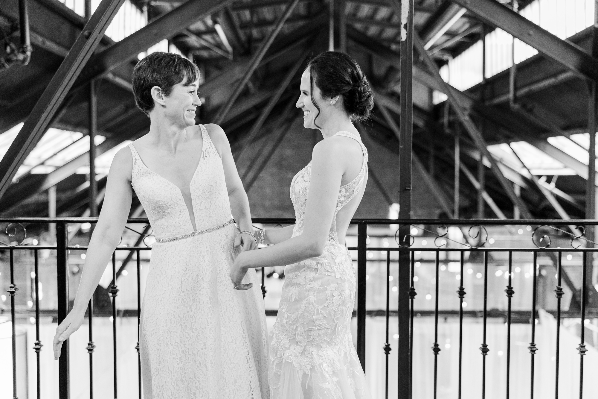 The day started at the Brooklyn Bridge Marriott, a great spot to get ready for a 26Bridge wedding. Laura and Rebecca got ready separately and then met at the venue for their first look. This convenient hotel is within a short driving distance of the venue, making it easy for our team to transport both halves of the couple for the first look.