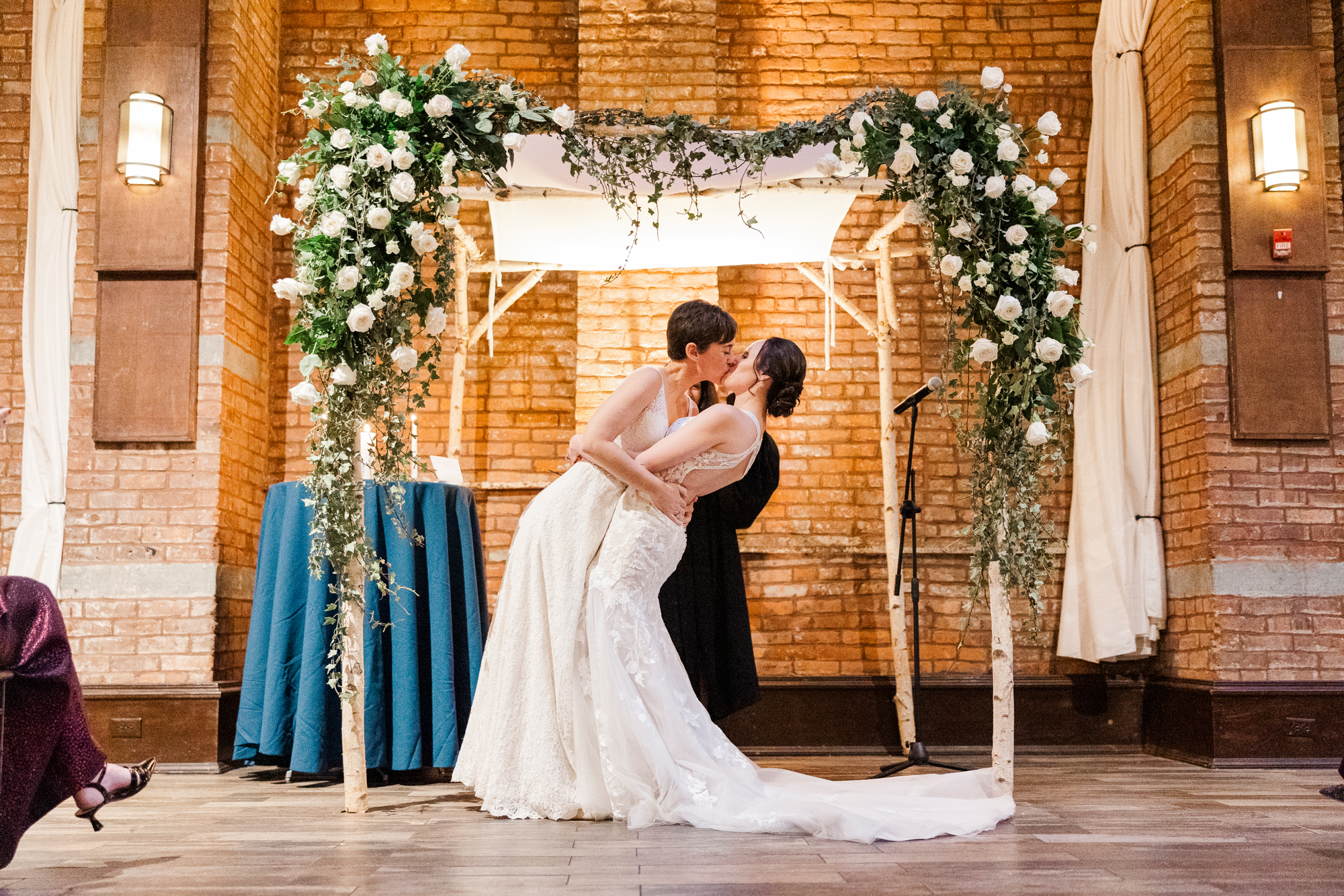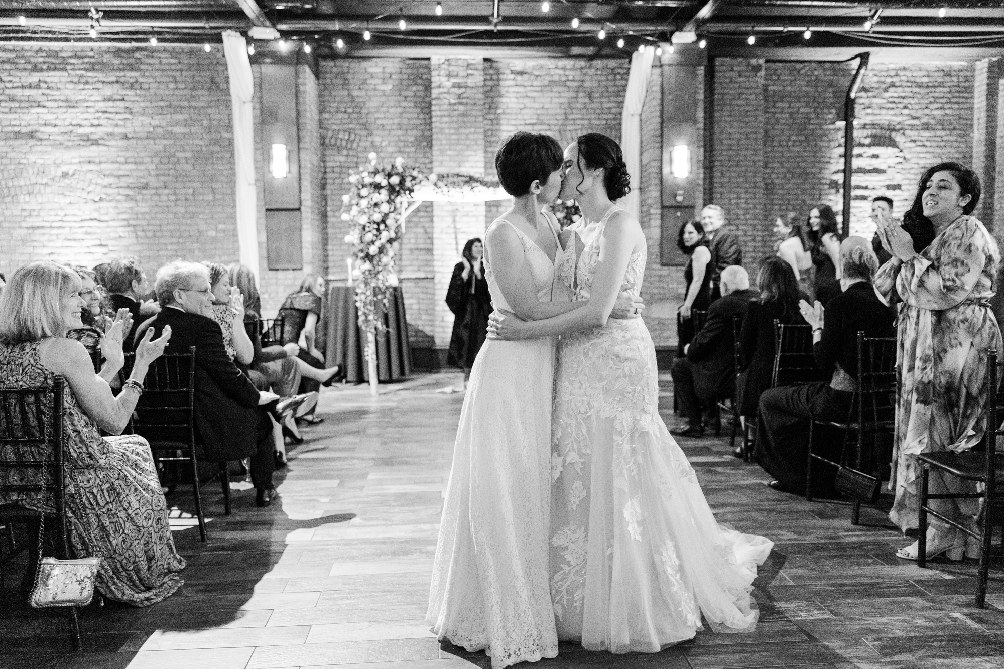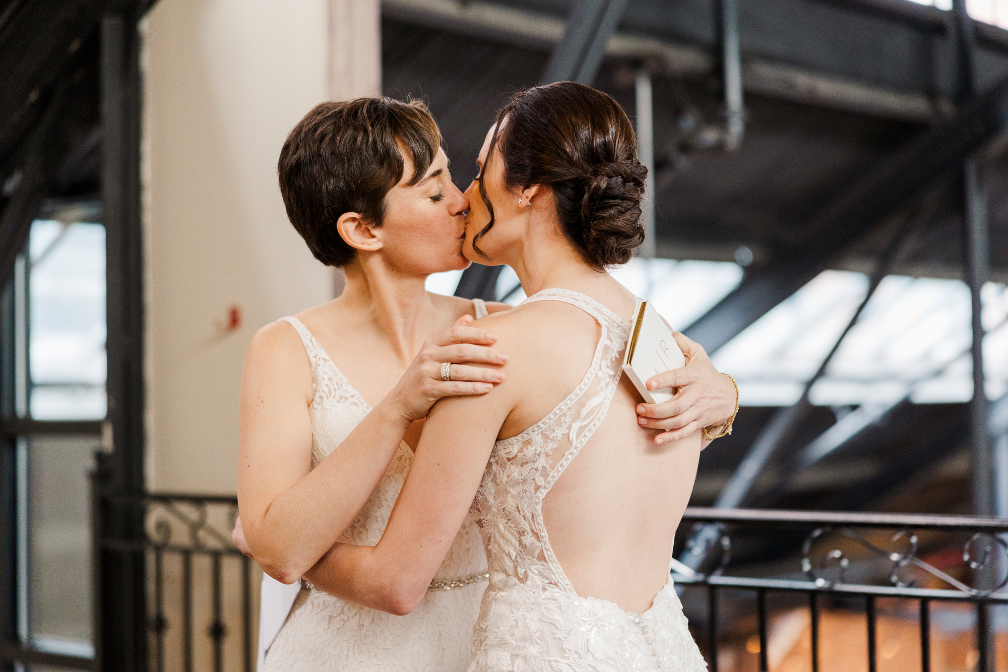 Laura and Rebecca’s 26Bridge wedding was a super unique occasion for our team of Hudson Valley wedding photographers. At the couple’s request, no flash was used in this industrial, loft wedding venue in DUMBO. It made for some truly intimate and rustic Brooklyn wedding photos and videography. We were so honored to capture this LGBTQ wedding in the city.