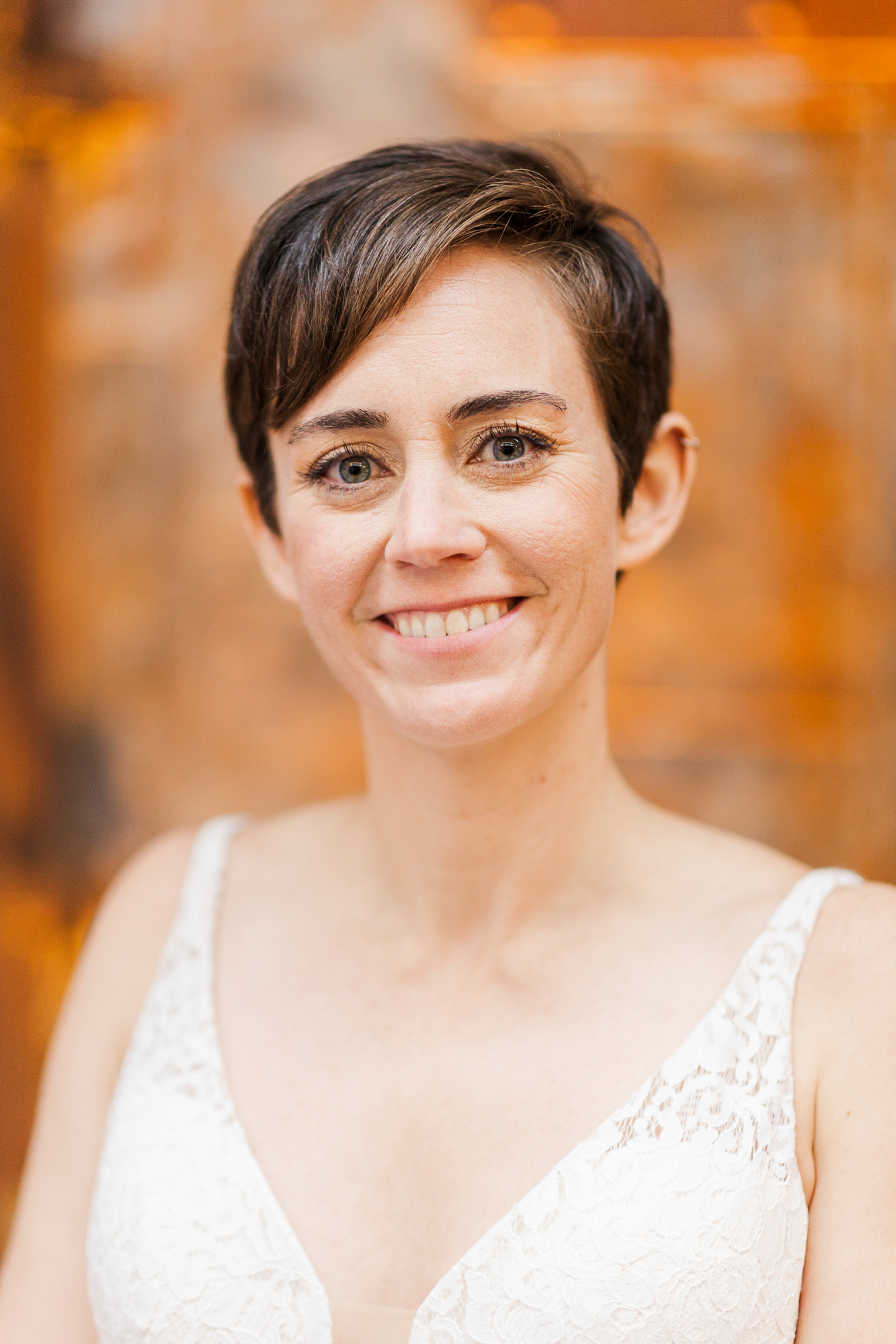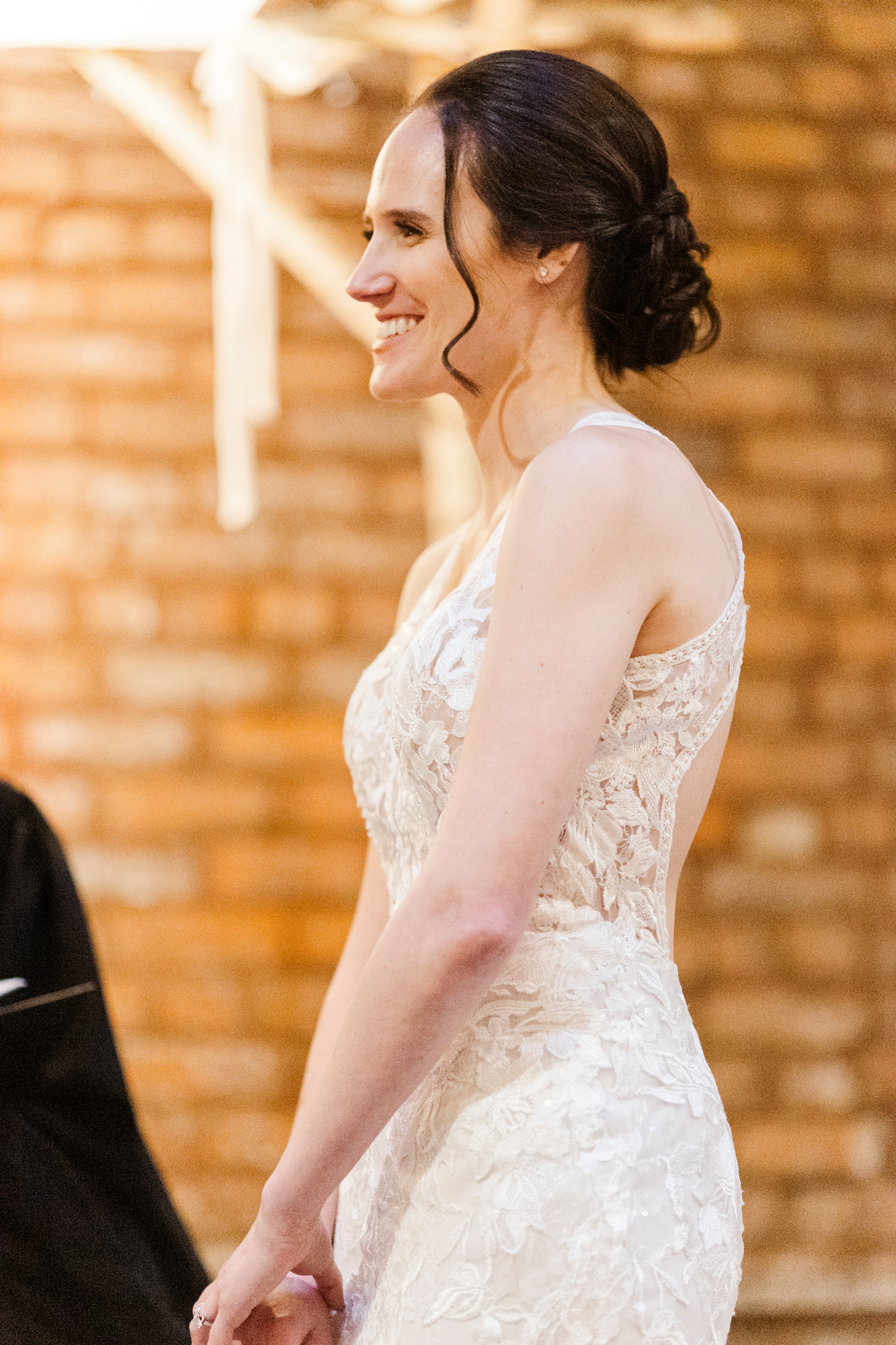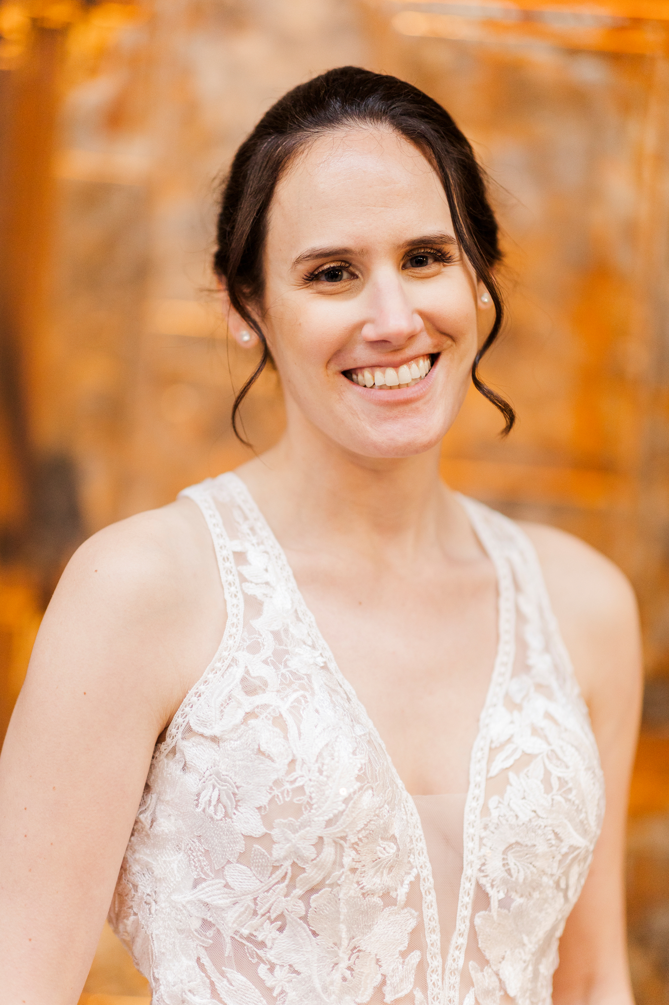 This event space is nestled in the heart of this bustling neighborhood. Coming down from New York’s Hudson Valley, this venue is a treat as it feels like a rustic barn right in the city. This industrial space was the perfect backdrop for the couple to exchange their vows and have indoor wedding portraits. Since it was rainy outside for the wedding day, their portraits took place indoors.