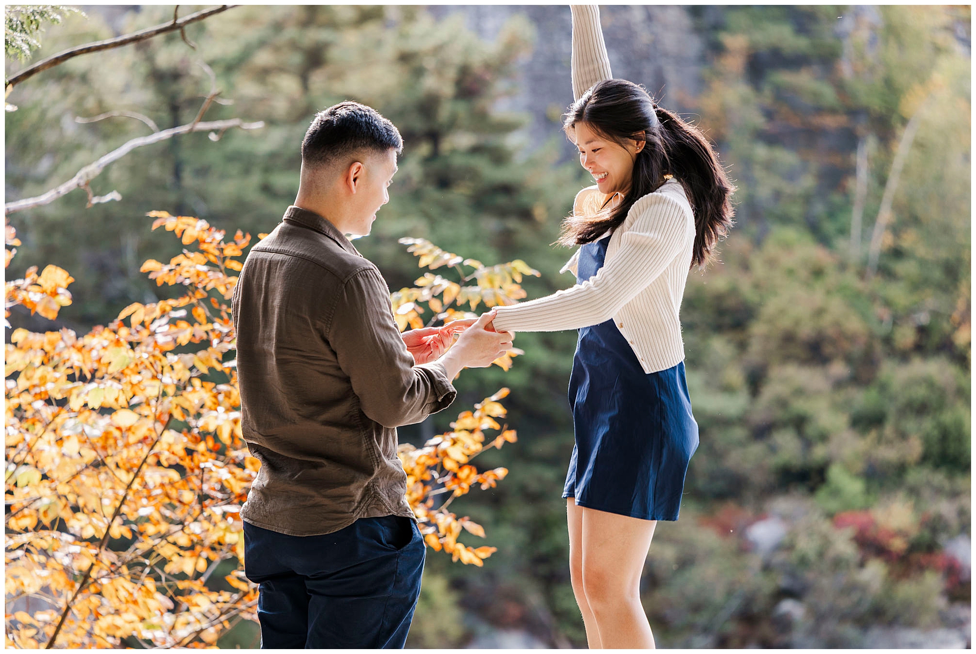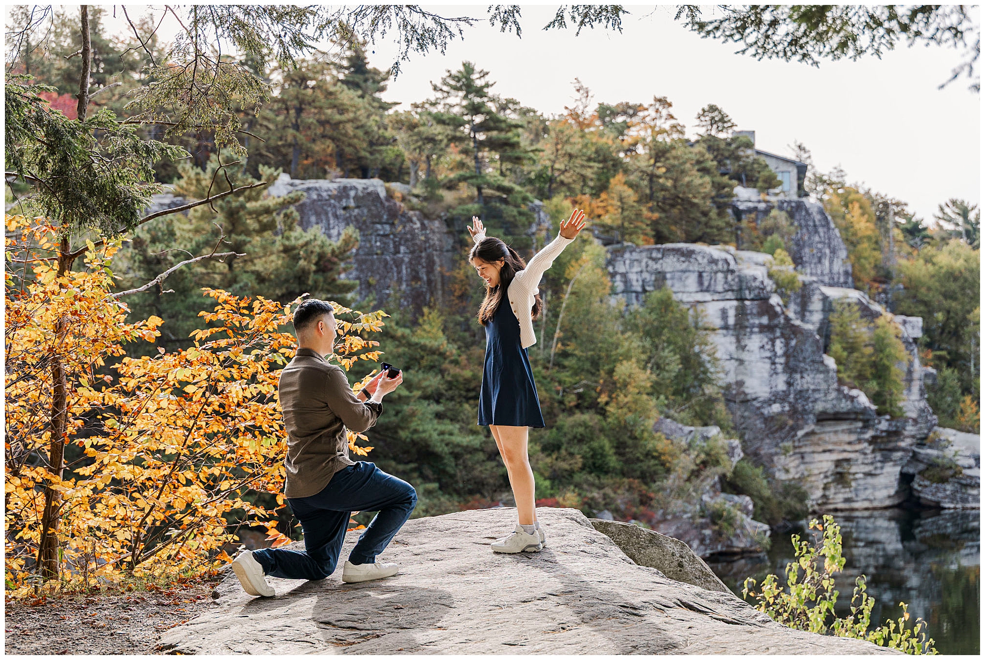 There are few moments more meaningful than capturing a surprise proposal, and this Lake Minnewaska proposal was nothing short of perfect. When Andrique planned his special moment with Jessica, we knew the setting would elevate everything. The air carried that crisp autumn feeling that makes late September in the Hudson Valley unforgettable. Walking toward the overlook, with colors beginning to change, the two were steps away from a life-changing moment.