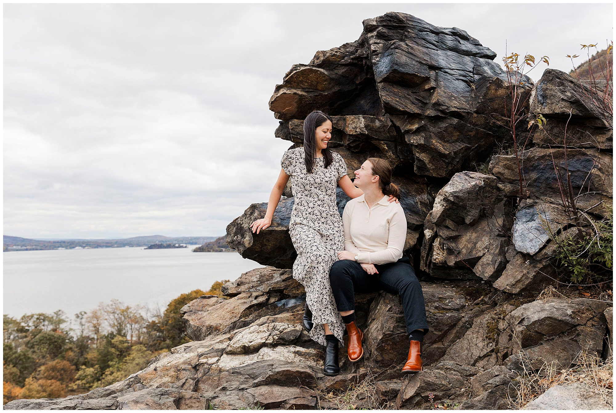 Located right off Route 9D, Little Stony Point Park offers an incredible variety of backdrops for Hudson Valley engagement photography. The overlook gives a panoramic view of the Hudson River and the surrounding Highlands. Between the natural rock formations and the colorful fall trees, there are endless options for portraits. It is one of those places where you can get forest, cliffs, and beach all within a short walk.