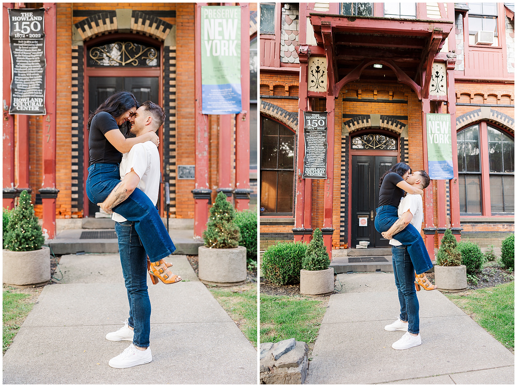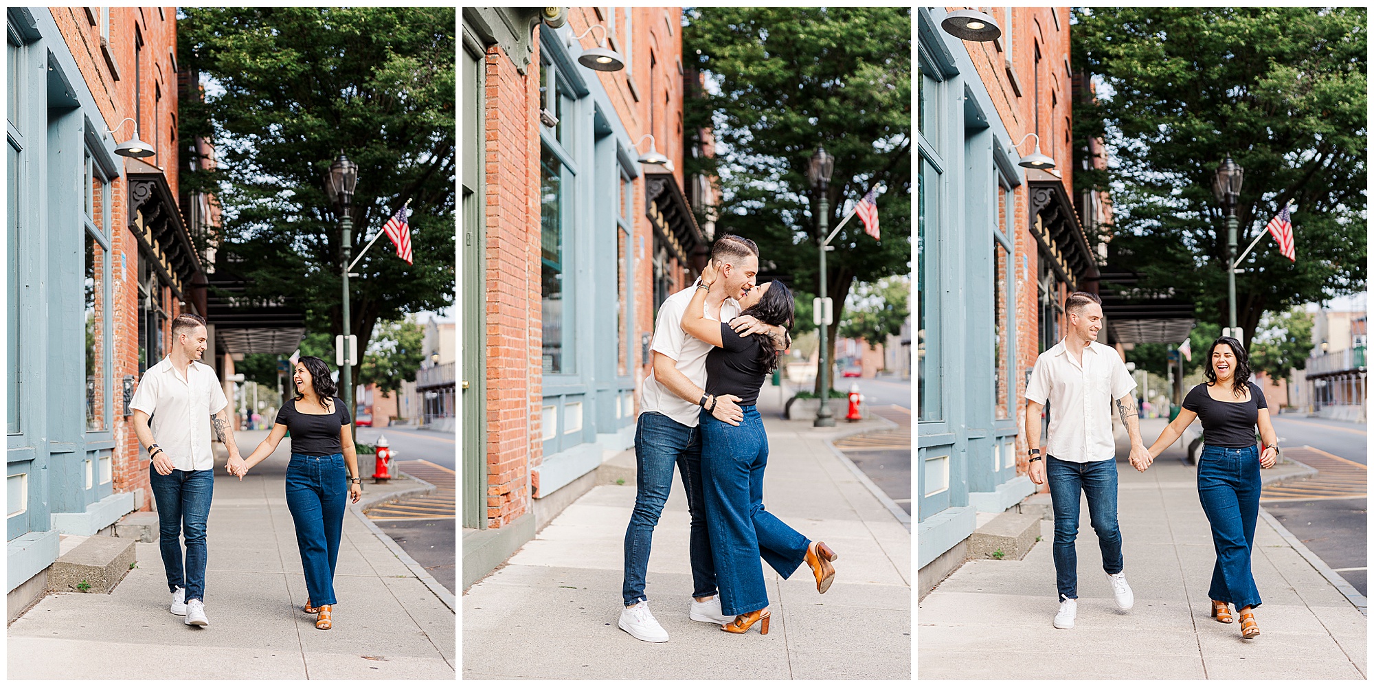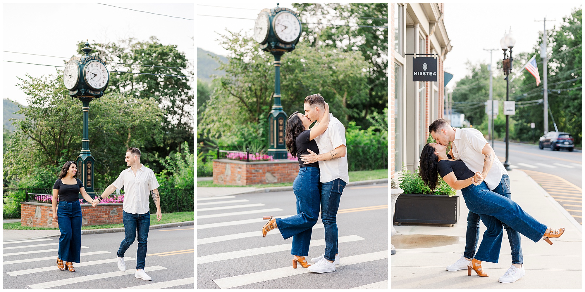Autumn is a super popular time to take Hudson Valley wedding and engagement pictures. The great thing about Main Street is that there are so many great locations for photos at any time of year. There isn’t a ton of foliage in the shots, so they feel even more timeless. This couple’s summer photo shoot could feel like any time of year, which is great for save-the-dates.![]()