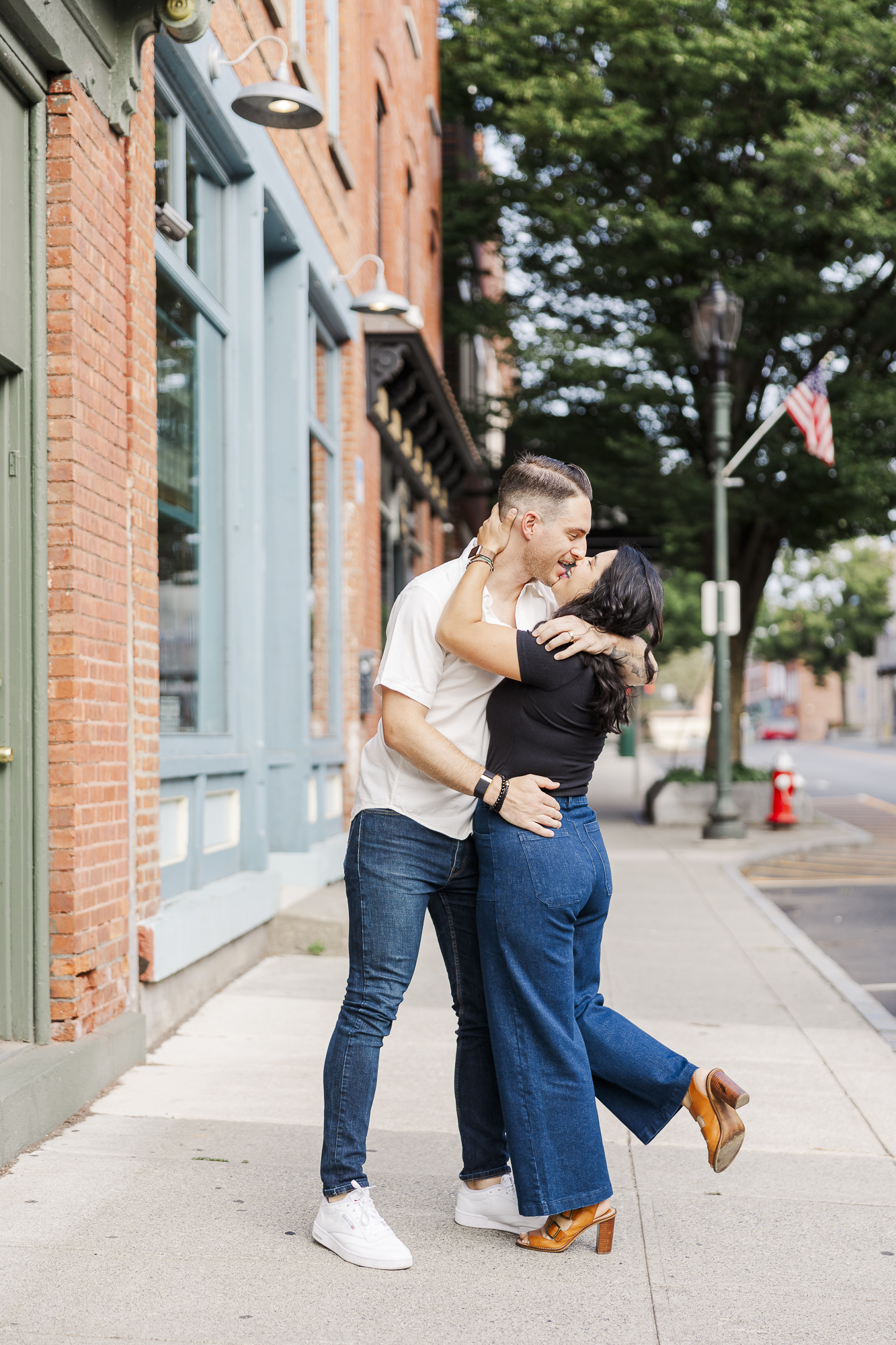 Based in Beacon, we’re Dutchess County wedding photographers capturing the Hudson Valley, Catskills, and beyond. We love when couples choose to take their engagement session into this lovely town. A place full of weddings and elopements, this area is big on celebrations of love. Our photo session took place right in the heart of the town.