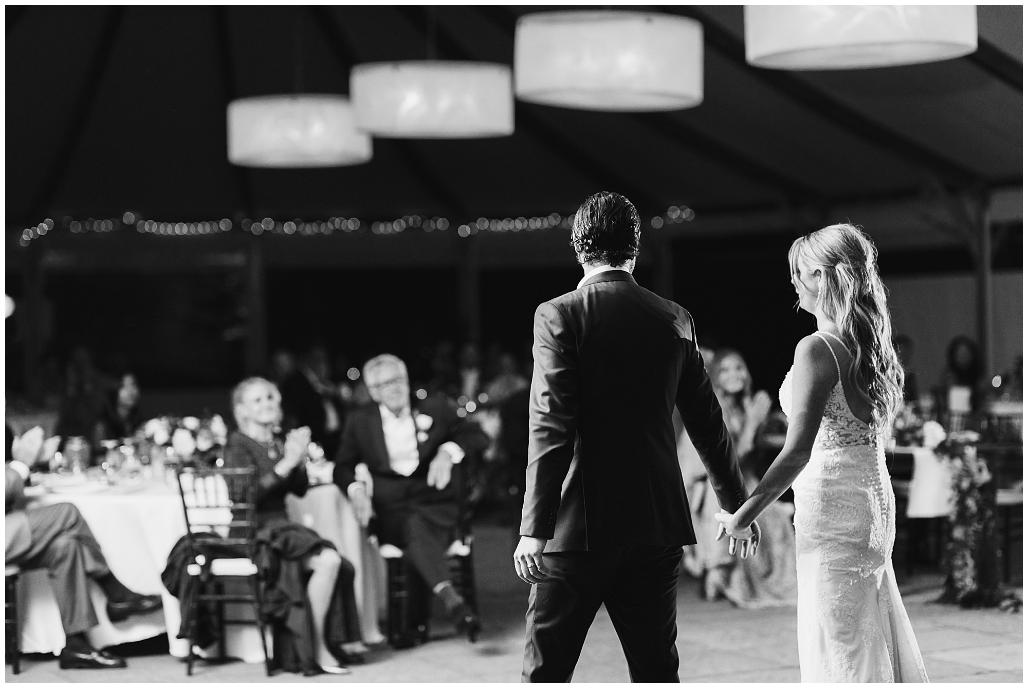 Throughout the evening, fire pits and bistro lights created a warm and inviting glow. Guests wrapped themselves in cozy blankets and relaxed by the fireside between dances. Their wedding favors were beer cozies, masks, sanitizer, and blankets. They were thoughtful touches that perfectly matched the season and setting.