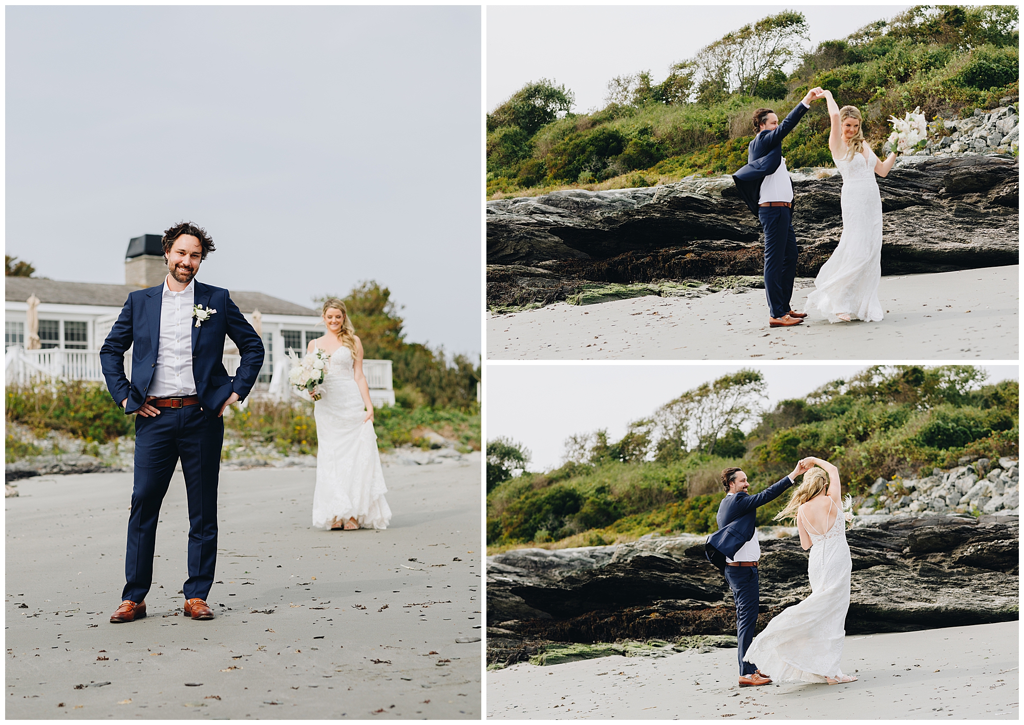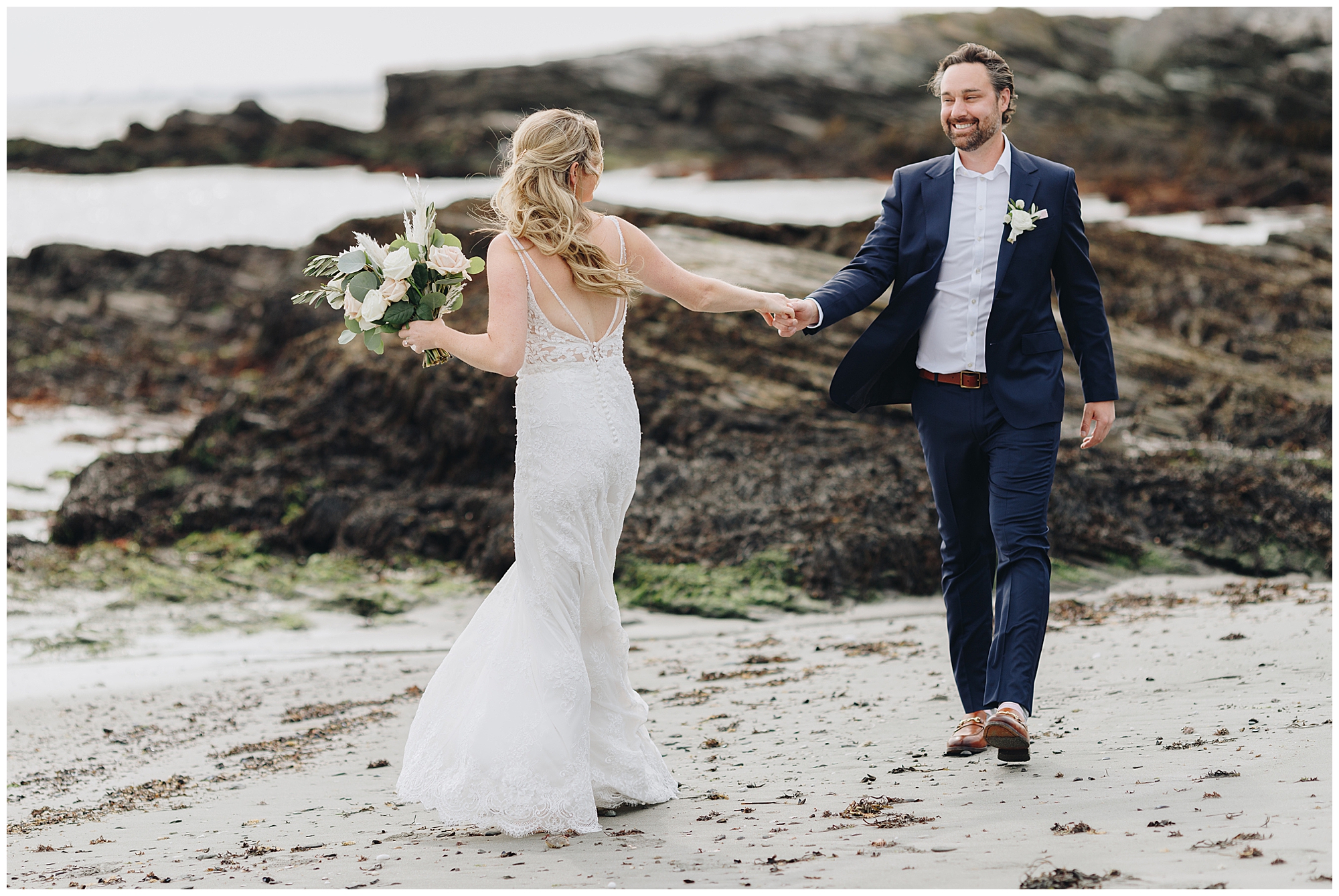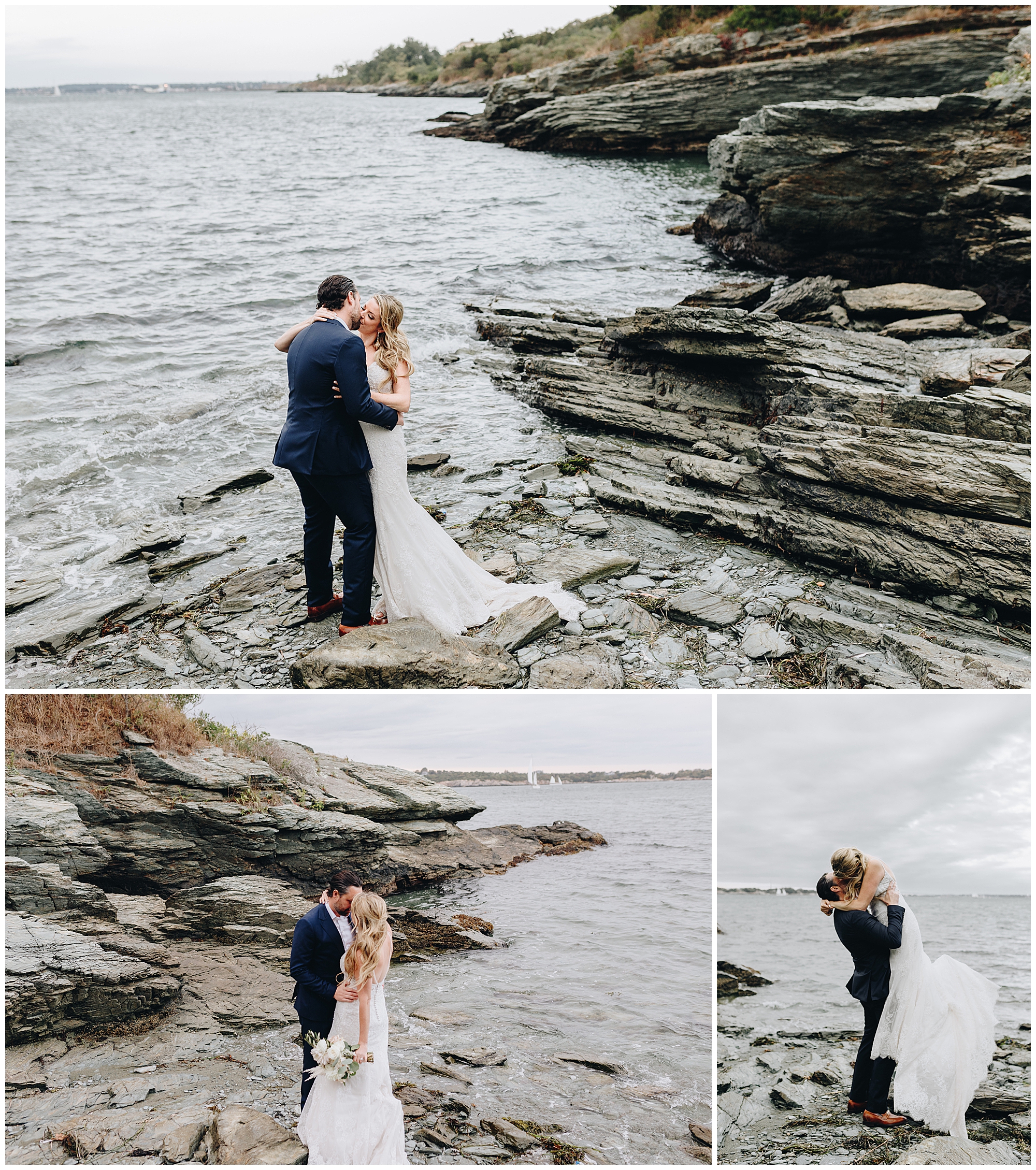 As photographers, we were in awe of the variety of backdrops Castle Hill Inn provides. From the rugged rocks along the water to the lush greenery across the property, it’s a dream venue for natural, candid portraits. We started the day with a first look on the beach, where Lauren and John shared a private, emotional moment together.