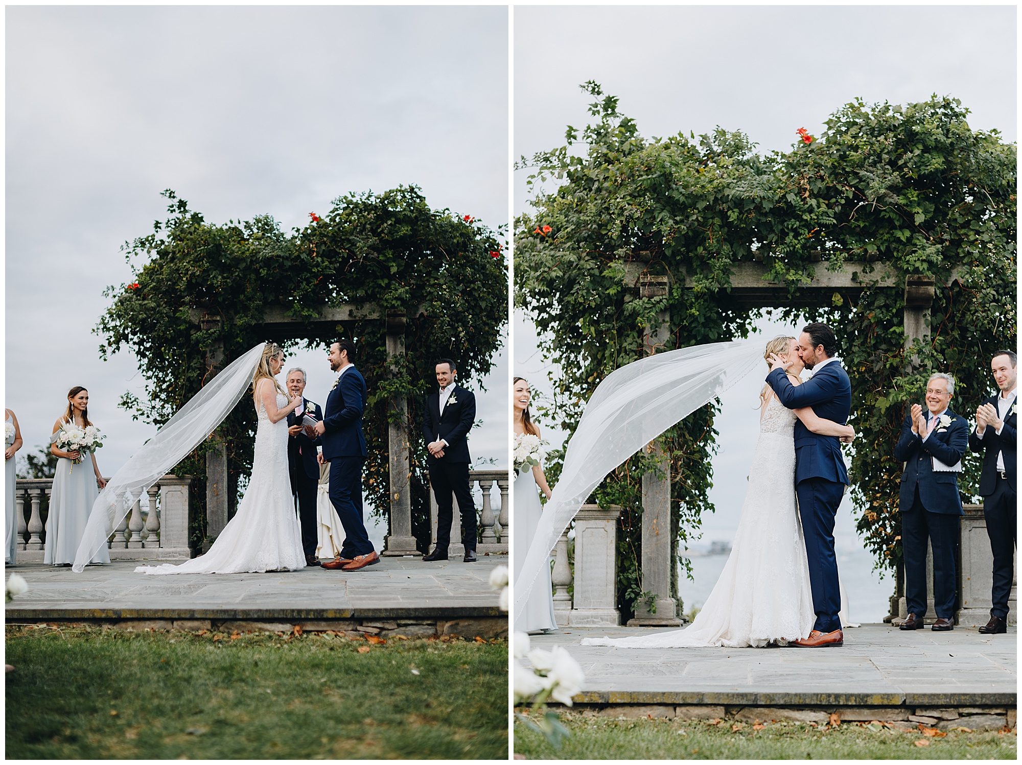 The views at Castle Hill Inn are breathtaking from sunrise to sunset. During the day, you can see sailboats gliding across the water. At night, the harbor lights shimmer in the distance. These details make for stunning Castle Hill Inn wedding photos that capture the full romance of the location.