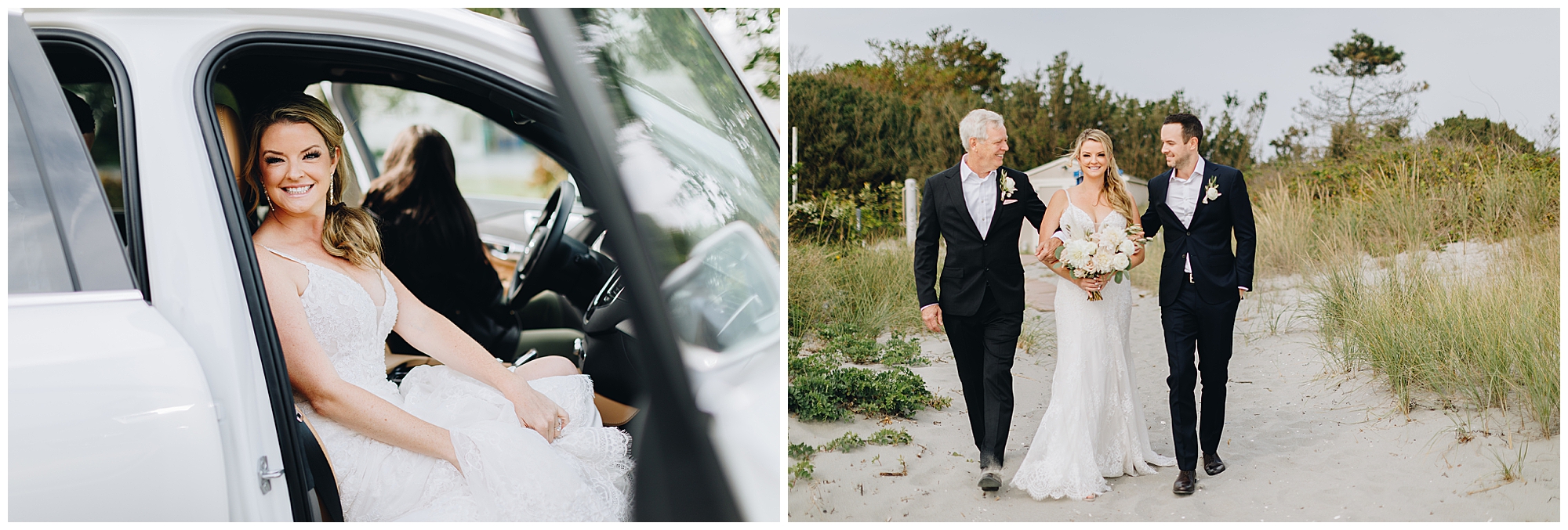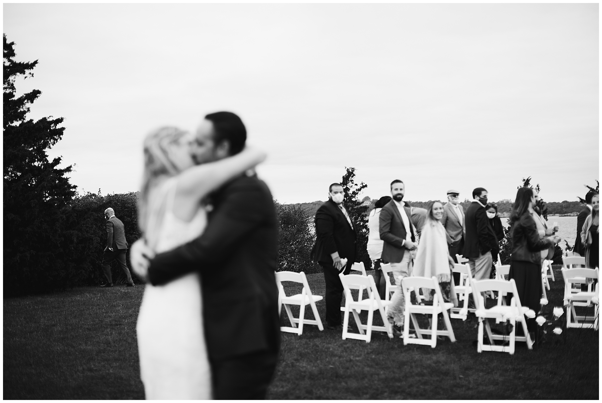 Lauren and John exchanged vows on the property’s expansive lawn under clear skies. Despite an earlier forecast predicting rain, the weather turned out perfectly. They hosted their reception in the venue’s elegant outdoor tent, surrounded by glowing string lights. The setup allowed guests to dance, dine, and celebrate while enjoying the fresh ocean air.