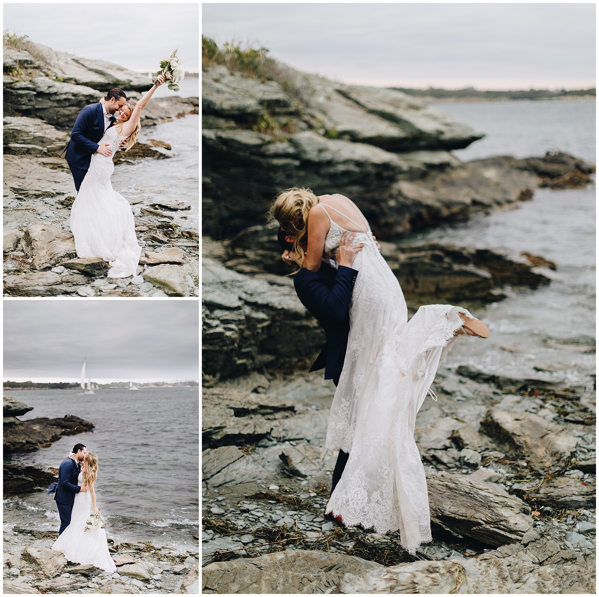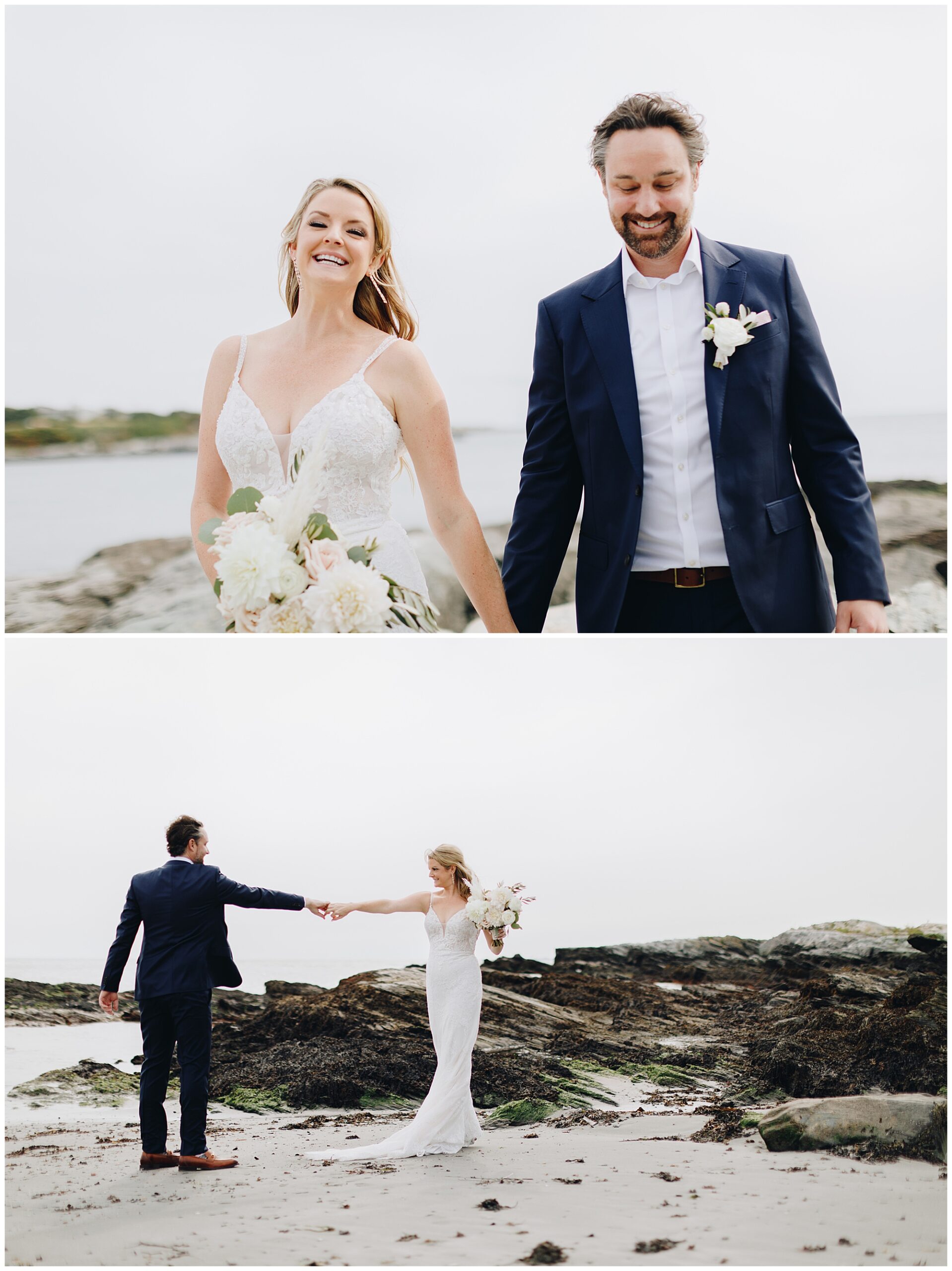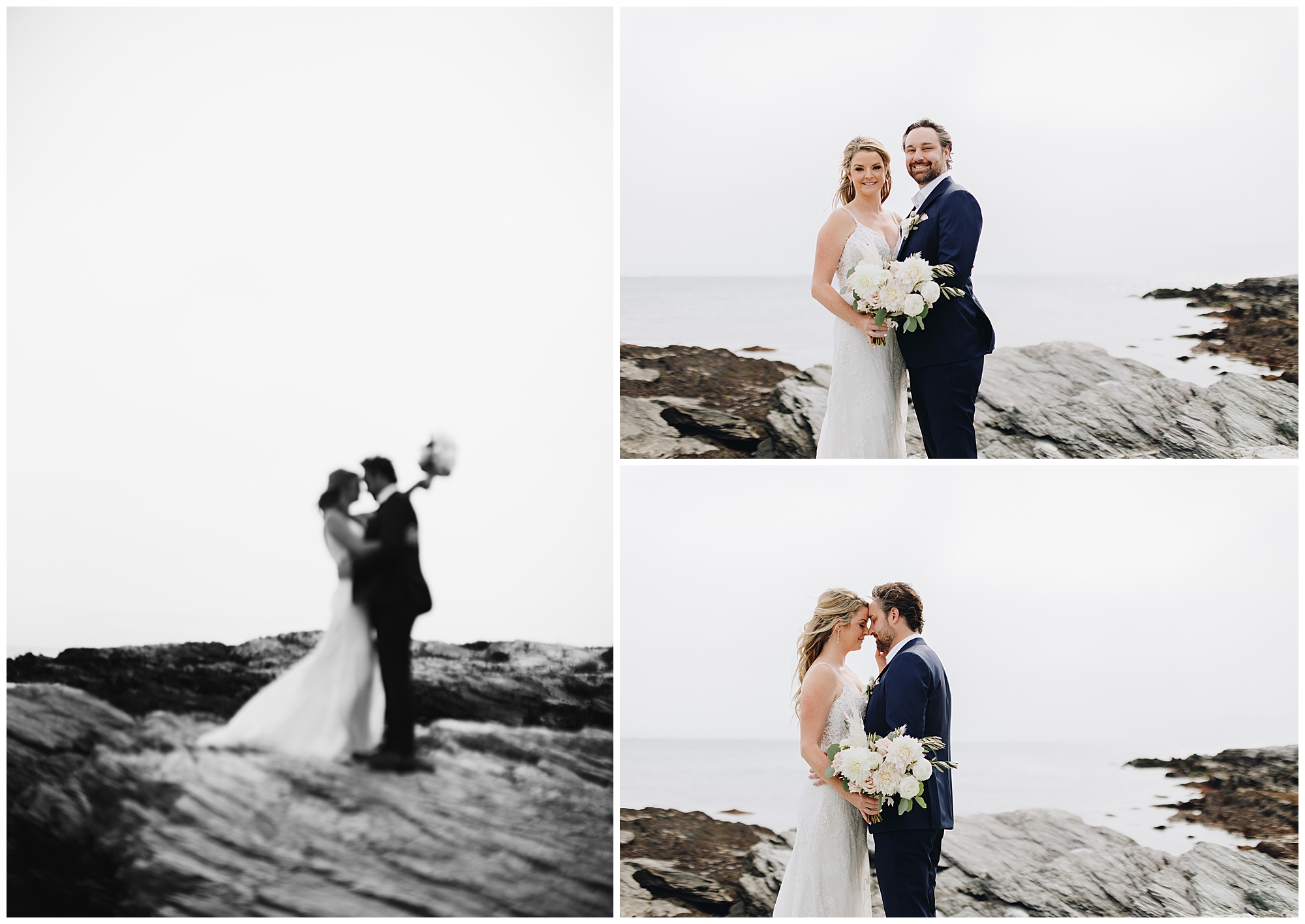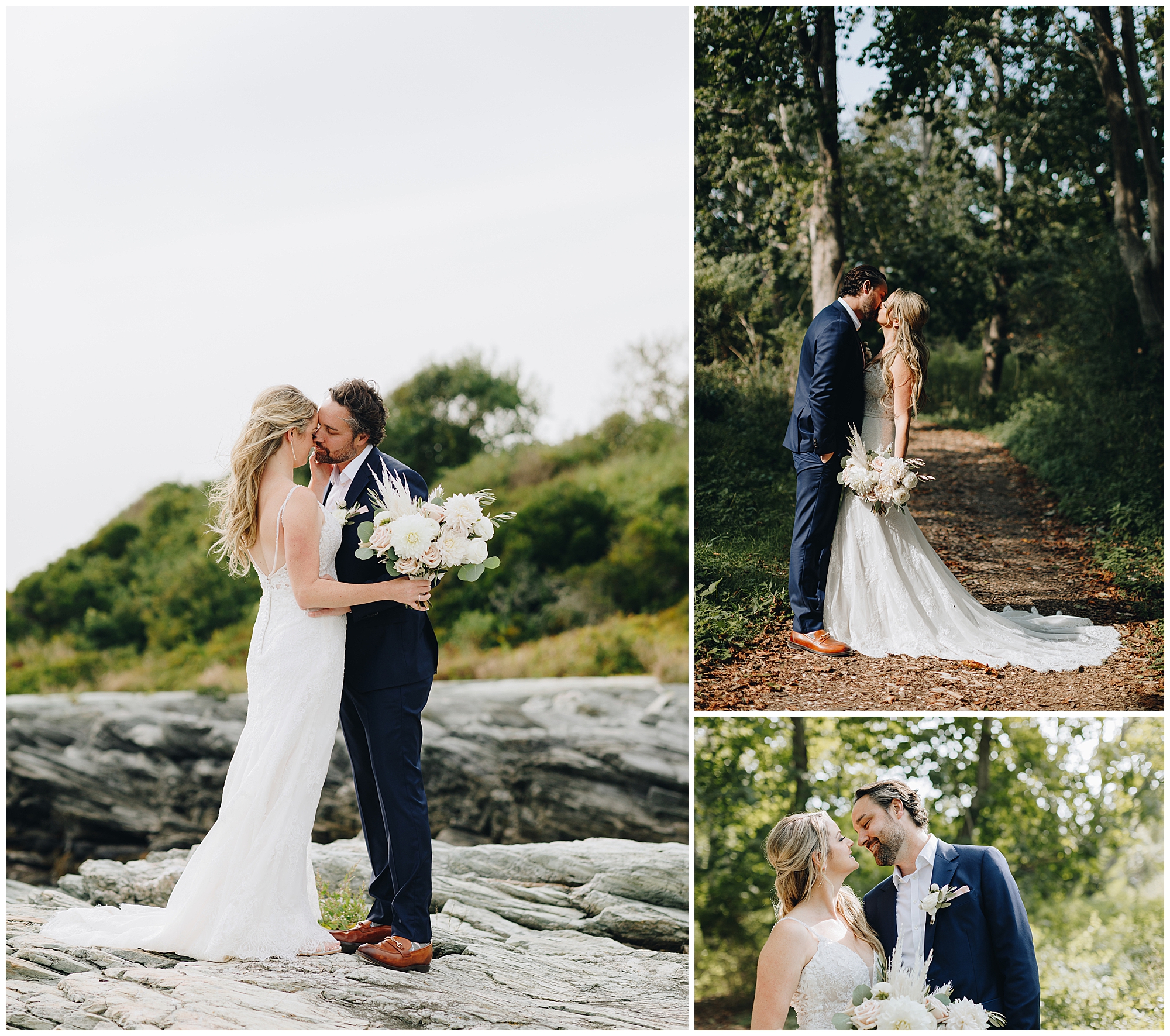 As photographers, we were in awe of the variety of backdrops Castle Hill Inn provides. From the rugged rocks along the water to the lush greenery across the property, it’s a dream venue for natural, candid portraits. We started the day with a first look on the beach, where Lauren and John shared a private, emotional moment together.