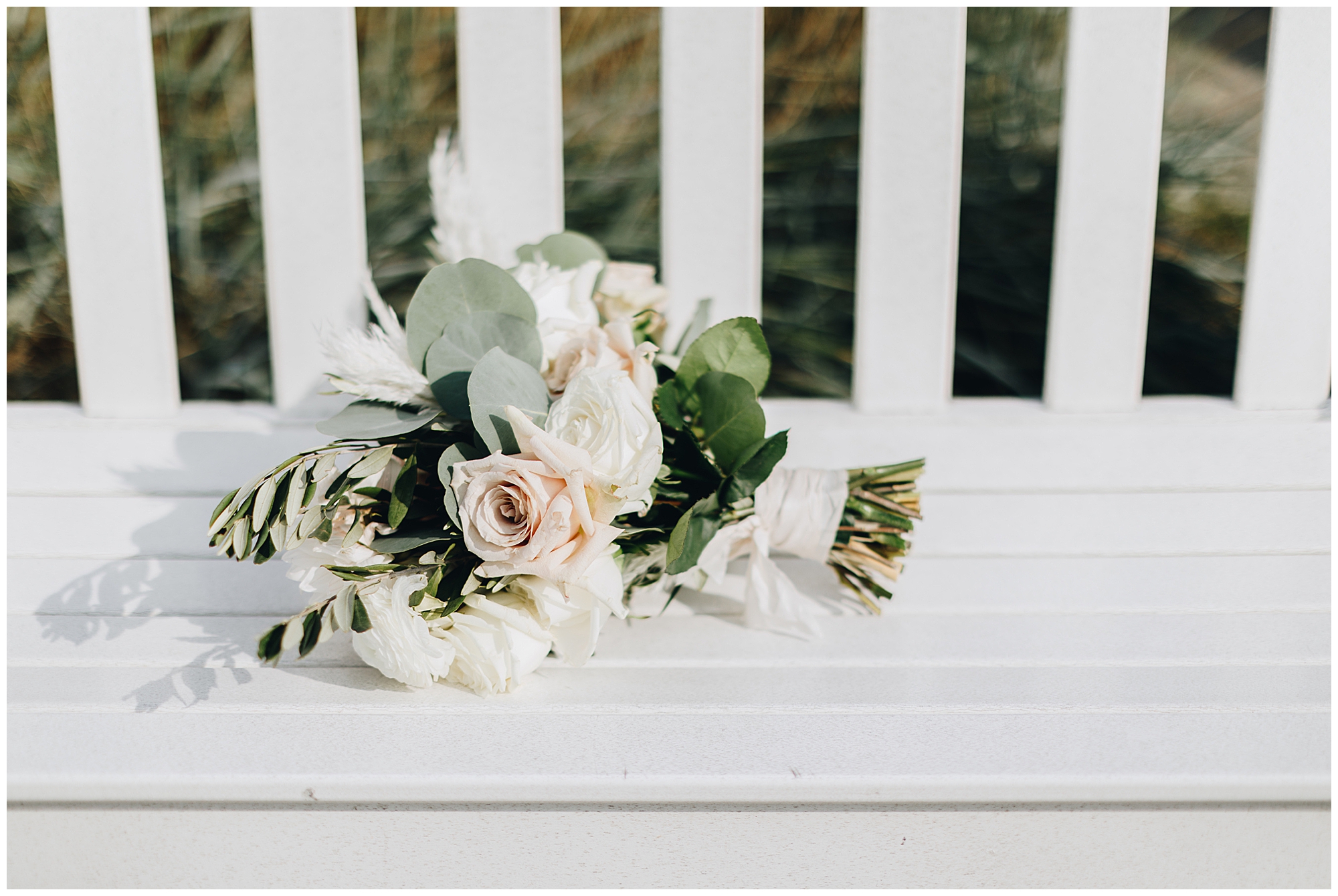 Lauren and John’s ceremony featured a gorgeous floral arch designed by A Petal to Peddle. White blooms lined the aisle, keeping the aesthetic simple, modern, and elegant. A breeze from the bay added cinematic movement to Lauren’s veil and hair, giving every photo that extra bit of magic.