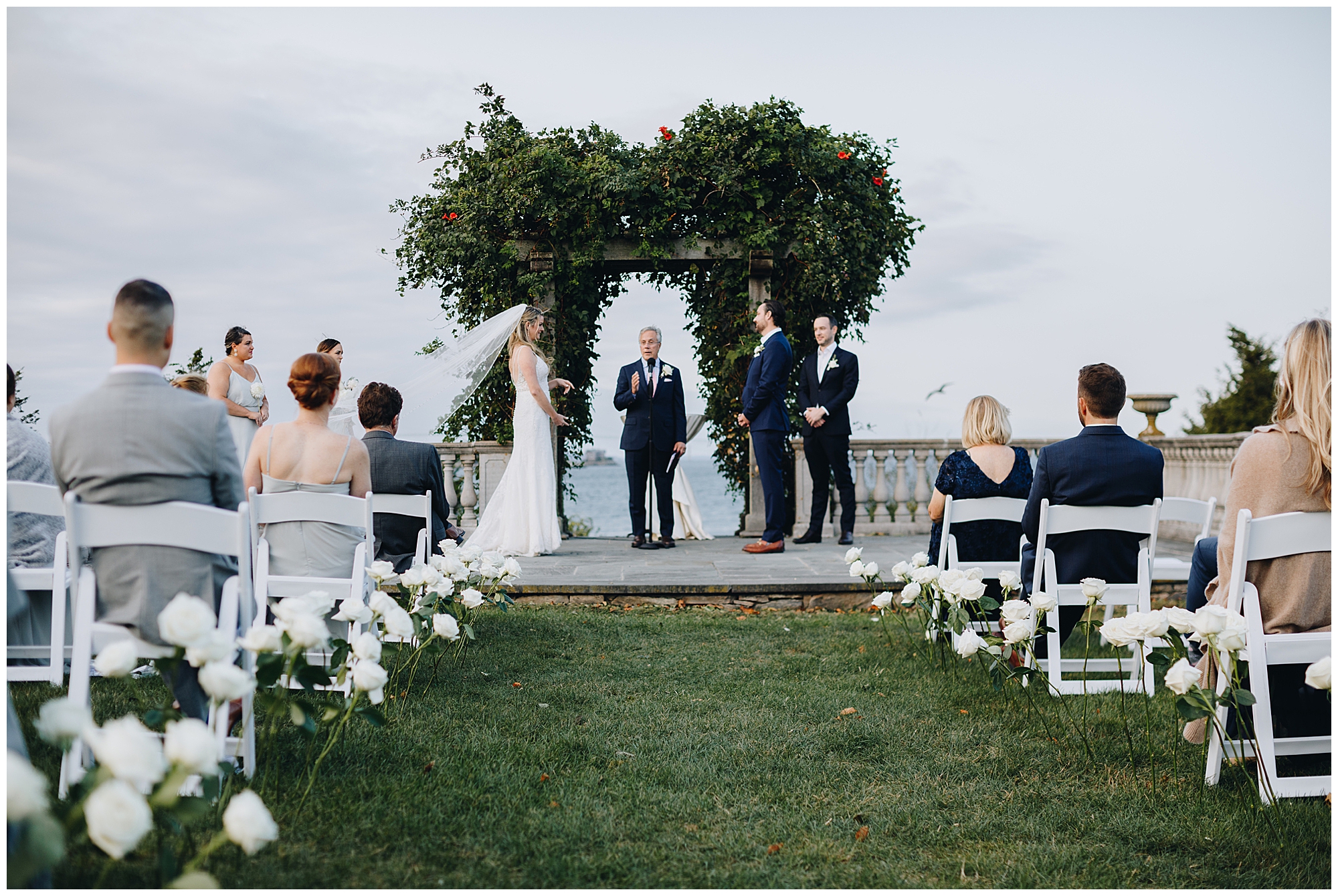 The views at Castle Hill Inn are breathtaking from sunrise to sunset. During the day, you can see sailboats gliding across the water. At night, the harbor lights shimmer in the distance. These details make for stunning Castle Hill Inn wedding photos that capture the full romance of the location.
