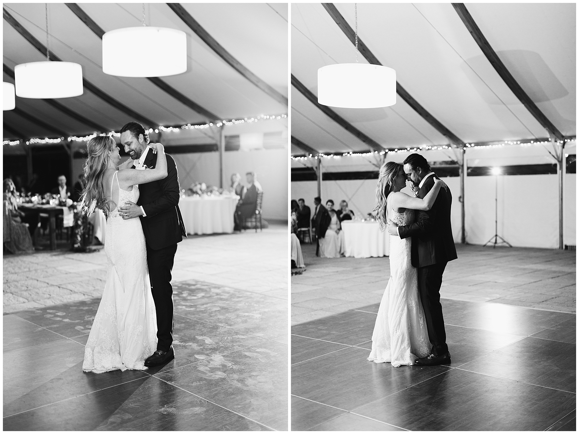 Ann Marie from Simply Styled Events perfectly coordinated the day’s transitions. The flow from ceremony to cocktail hour and into the tented reception was effortless. Guests sipped cocktails on the lawn while enjoying sweeping views of the Atlantic. When dinner began, the tent glowed under soft lighting, creating a cozy, celebratory atmosphere.