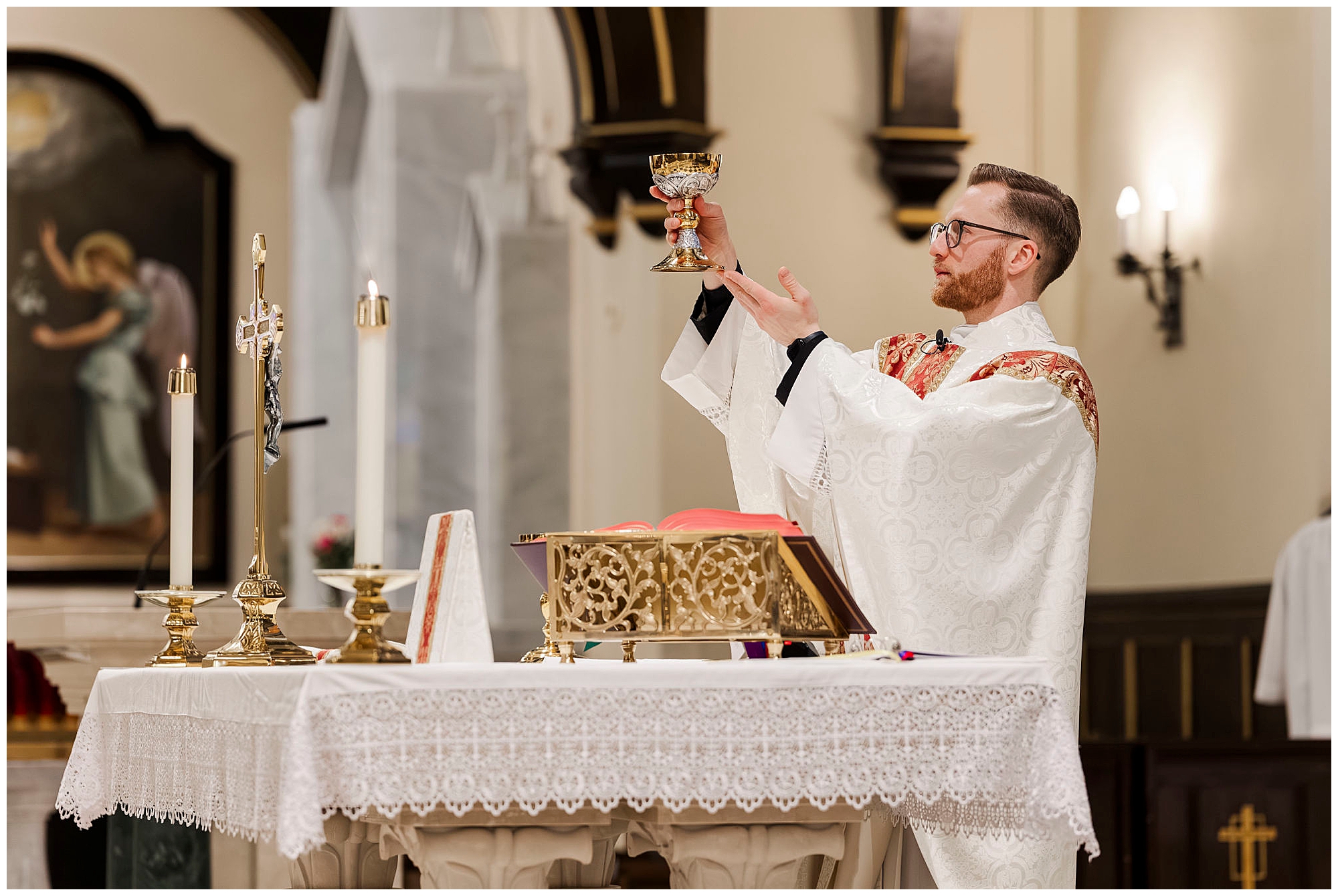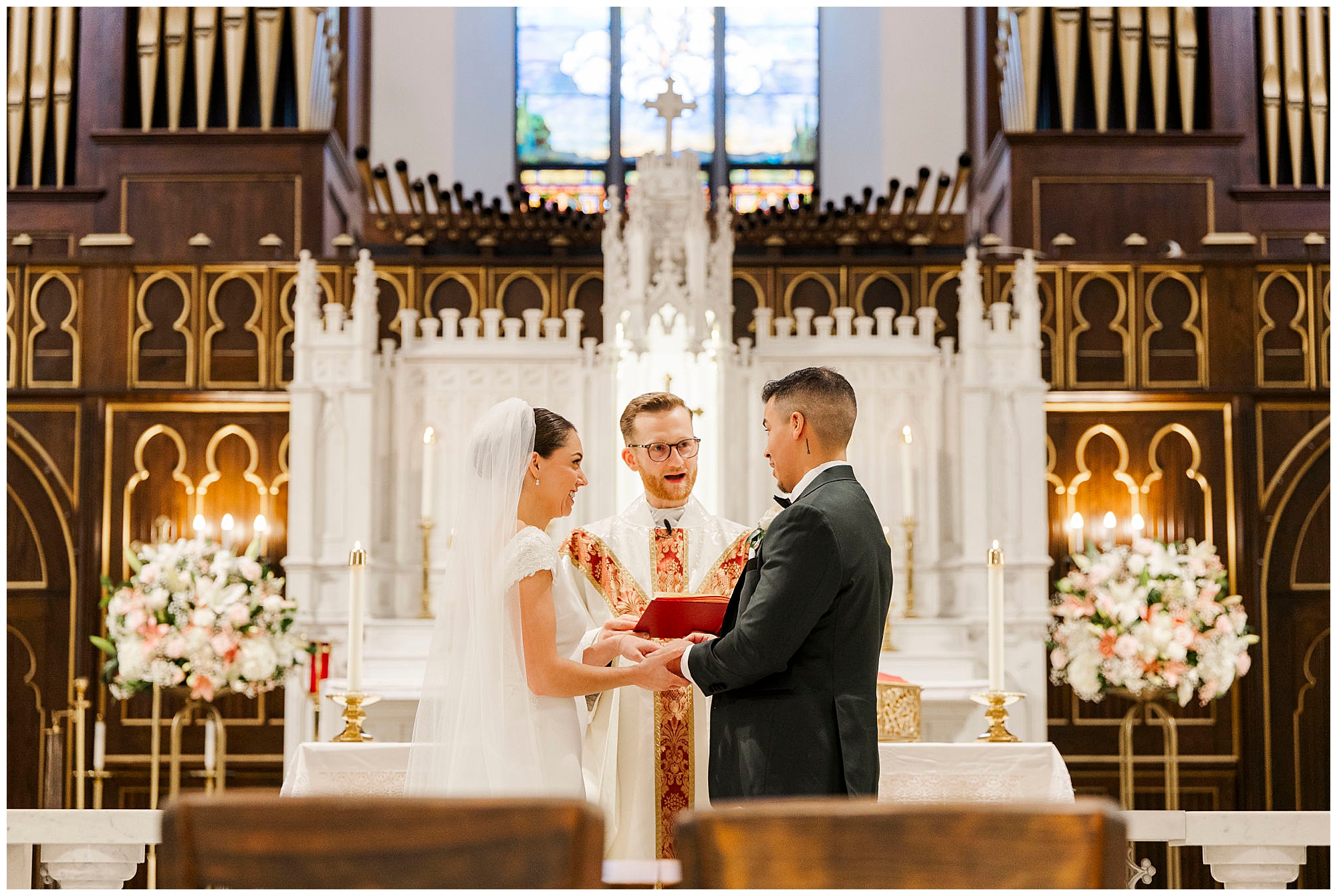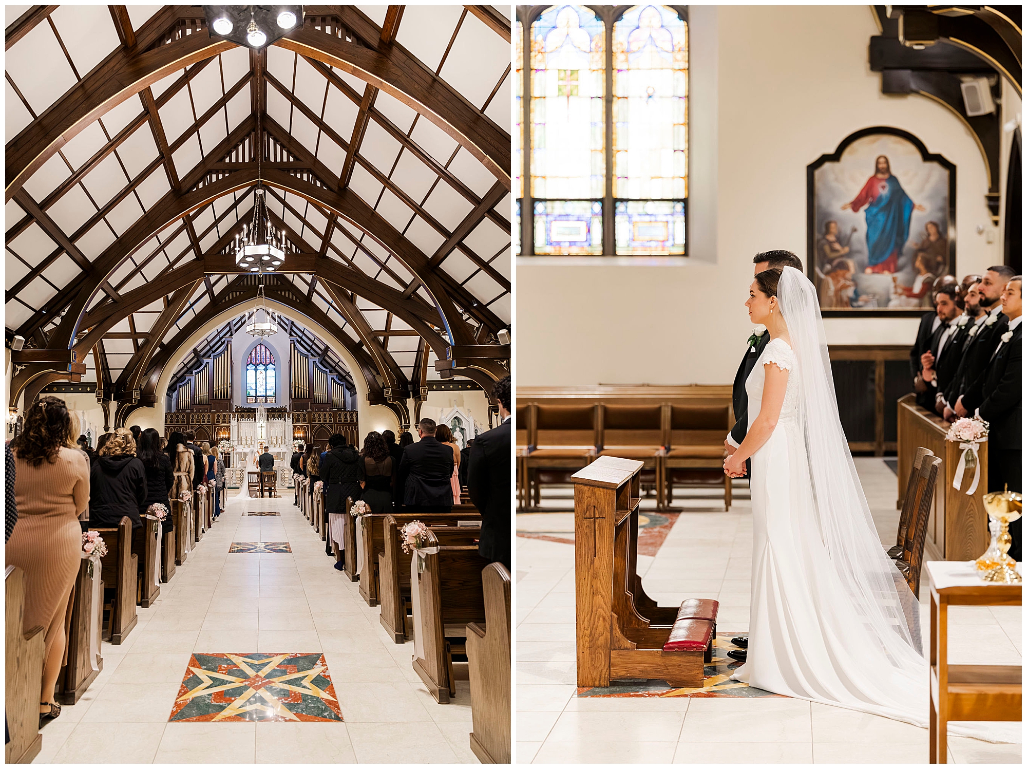 Kenneth found Ernesto looking sharp and calm inside the beautiful church. Furthermore, the architecture of Holy Trinity Poughkeepsie provided a stunning backdrop for his portraits. The anticipation of the ceremony filled every corner of the space. As Hudson Valley wedding photographers, we always appreciate when the groom’s quiet moments tell their own story.