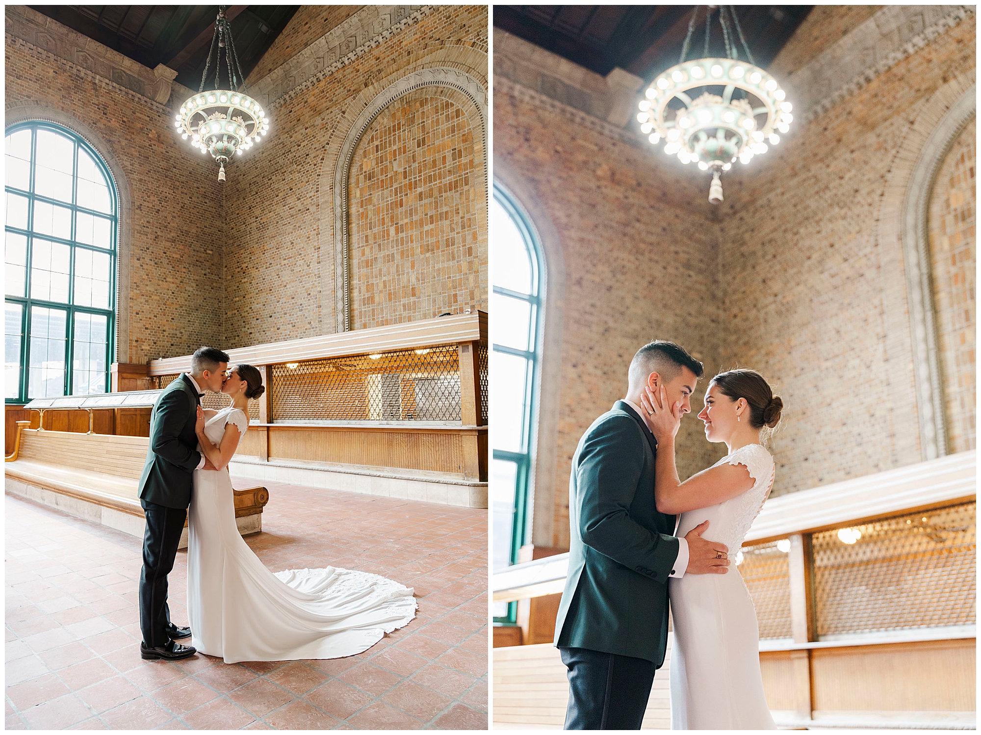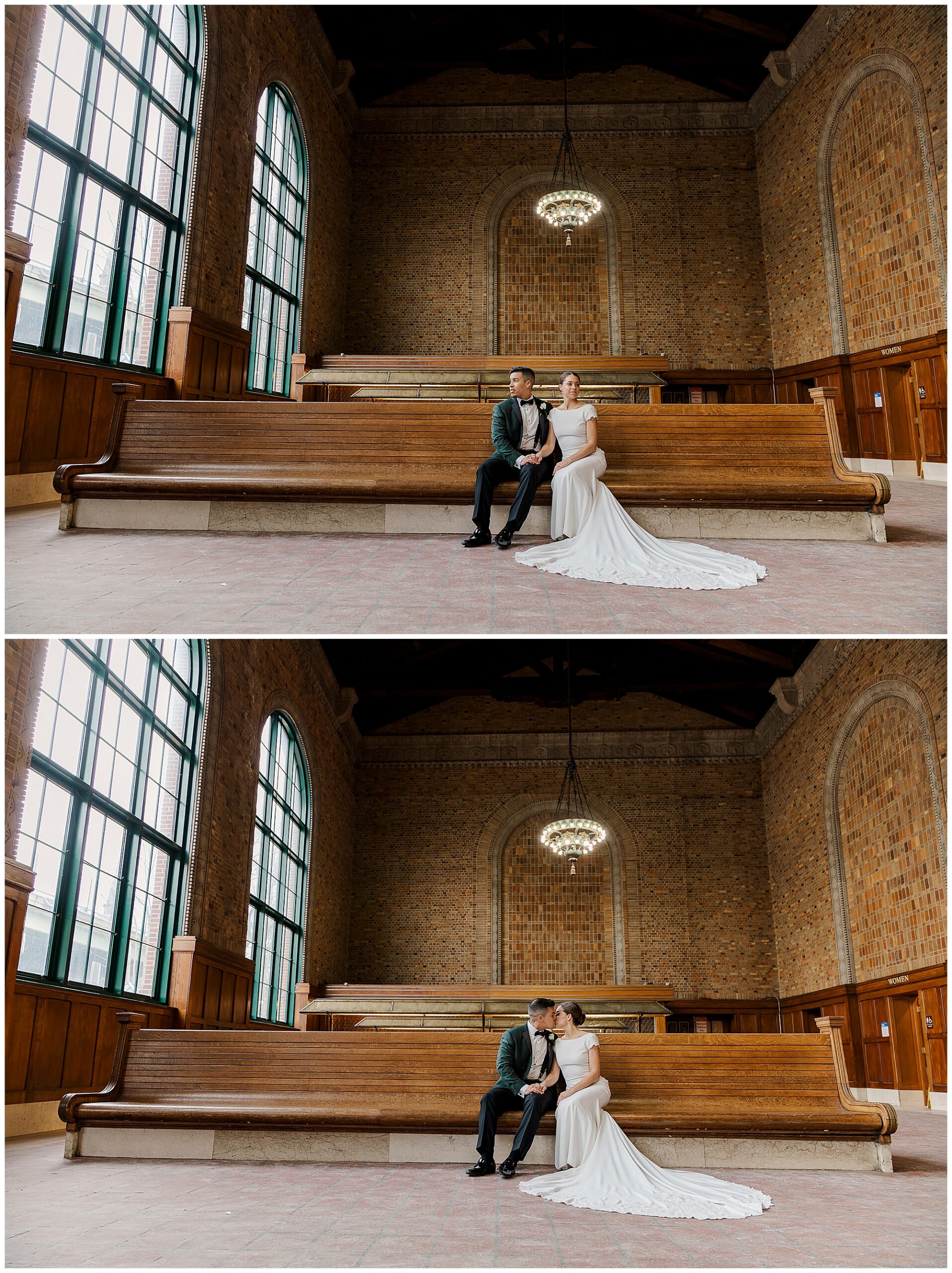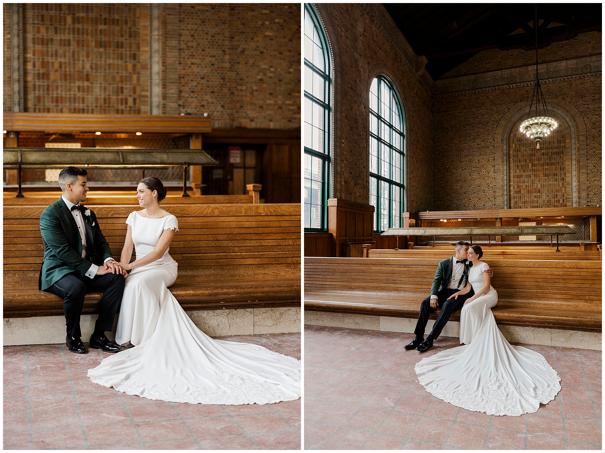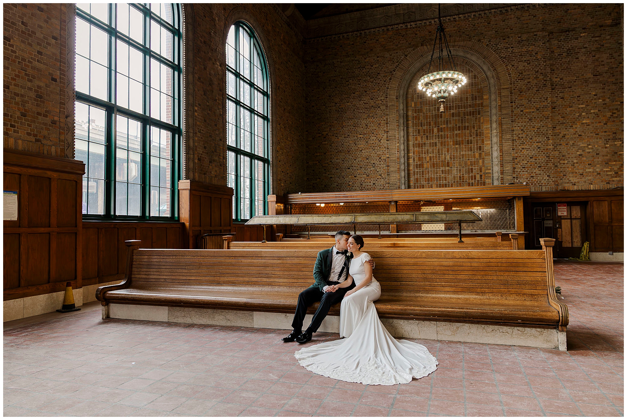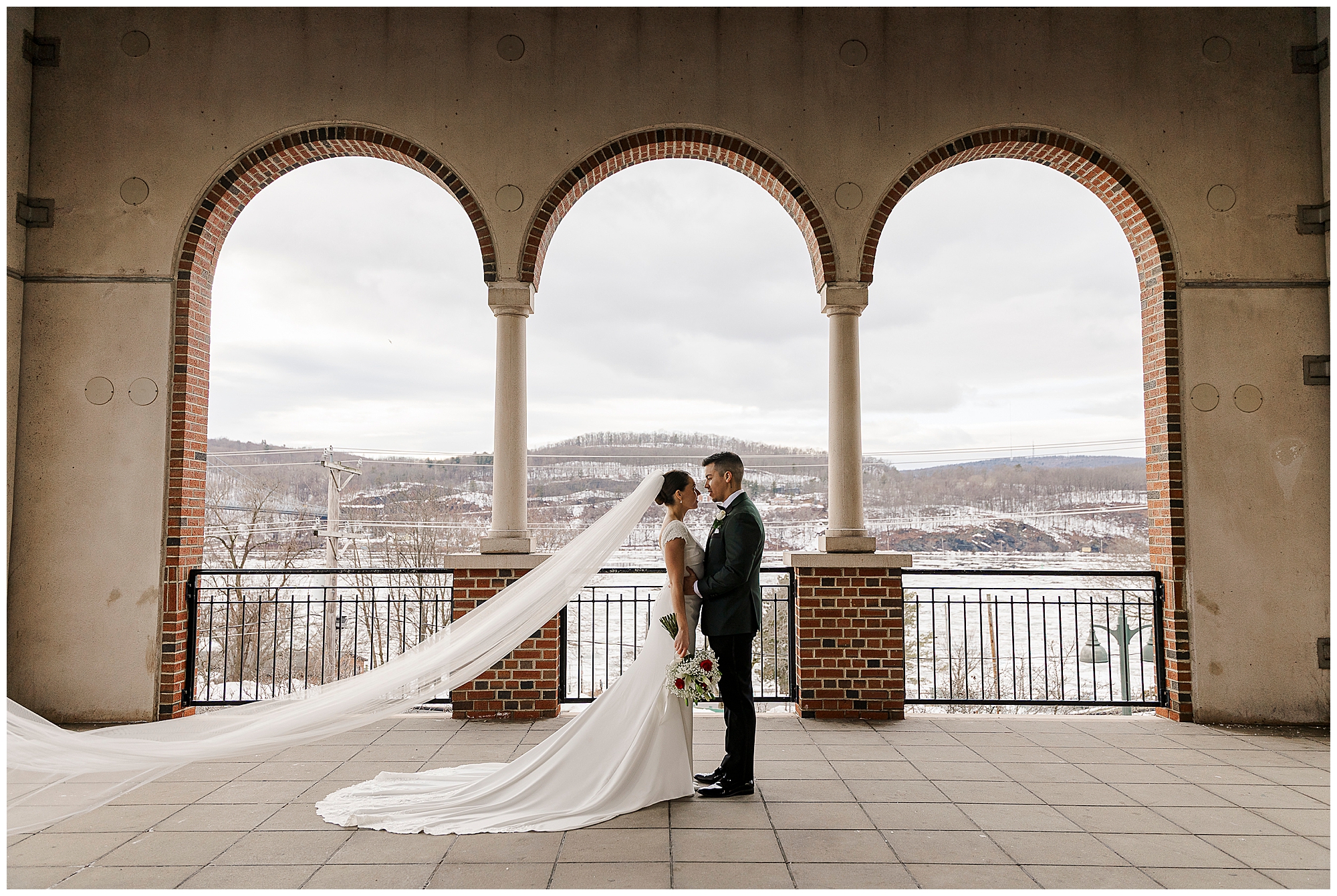One of the best things about this location is its versatility for couples. We captured portraits both outside by the arches and inside the station’s stunning interior. Furthermore, no permit is needed for most occasions at this Poughkeepsie landmark. For winter weddings especially, the indoor spaces keep couples warm and comfortable during their Church of the Holy Trinity wedding day portraits.