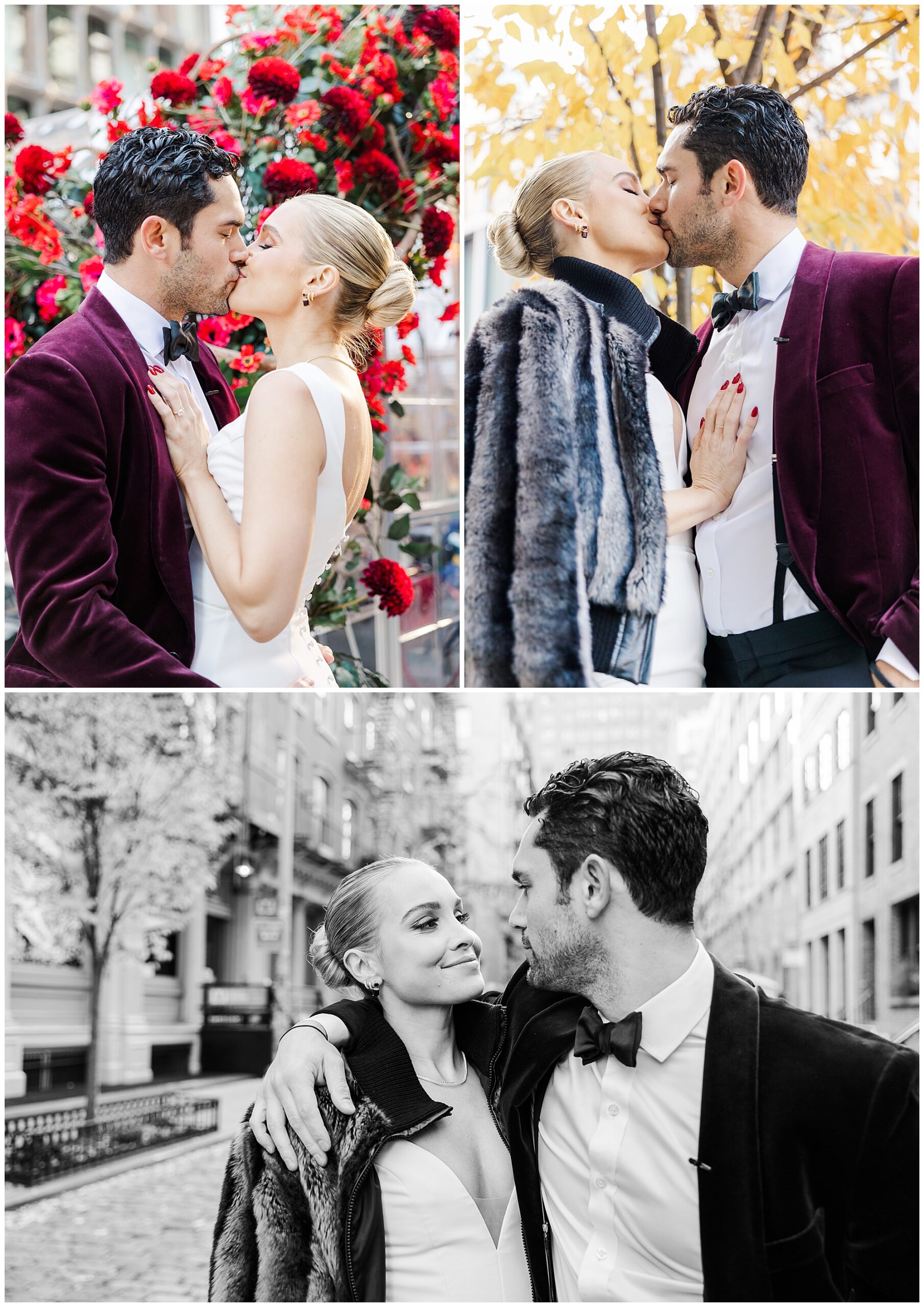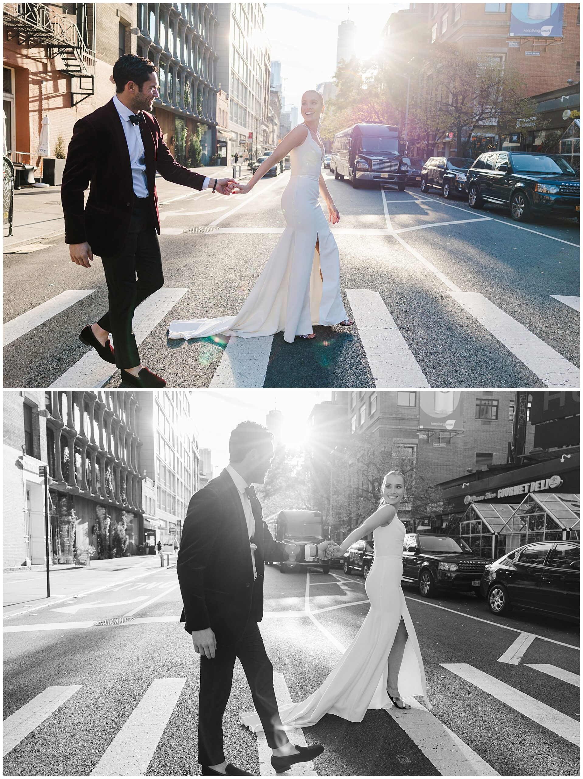 After their first look, we explored the surrounding Soho streets for portraits. The cobblestone roads, chic storefronts, and classic architecture created a timeless New York backdrop. Sam and Nico were effortless together, laughing and holding hands as we documented every candid moment. As Hudson Valley wedding photographers, we love these in-between moments that feel natural and full of life. Their connection came through beautifully in every frame, setting the tone for the rest of their City Winery Manhattan wedding day.