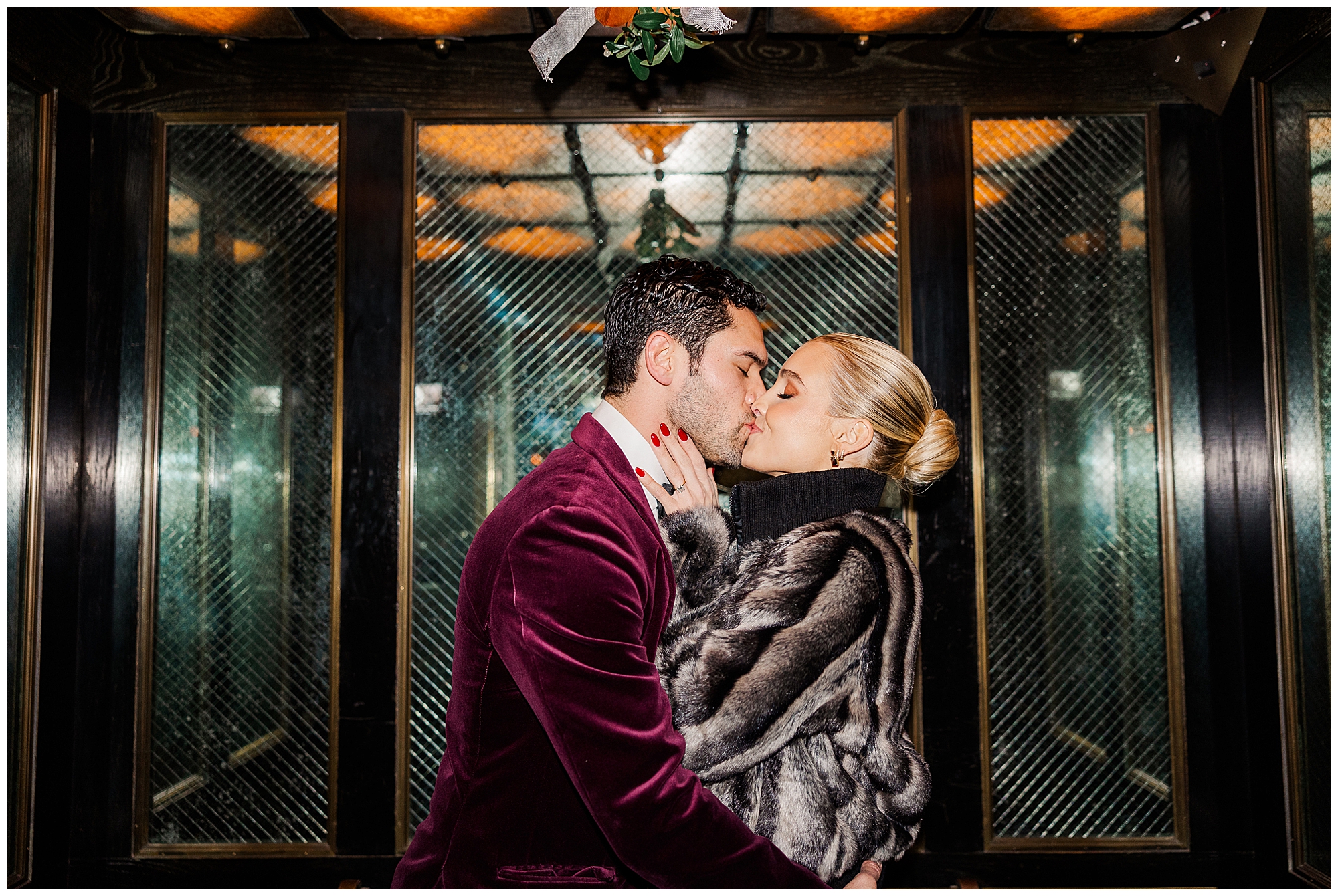 The reception at City Winery was full of laughter, dancing, and heartfelt moments. The Storytellers Band set the tone for the night with an incredible mix of live music that kept everyone on the dance floor. Sam and Nico’s design aesthetic leaned into the winter season with a rich, moody palette of greens and golds. The floral arrangements from Ivie Joy Flowers added warmth and elegance to the space. Every table was softly lit by candles, creating a cozy glow that reflected the couple’s vision perfectly.