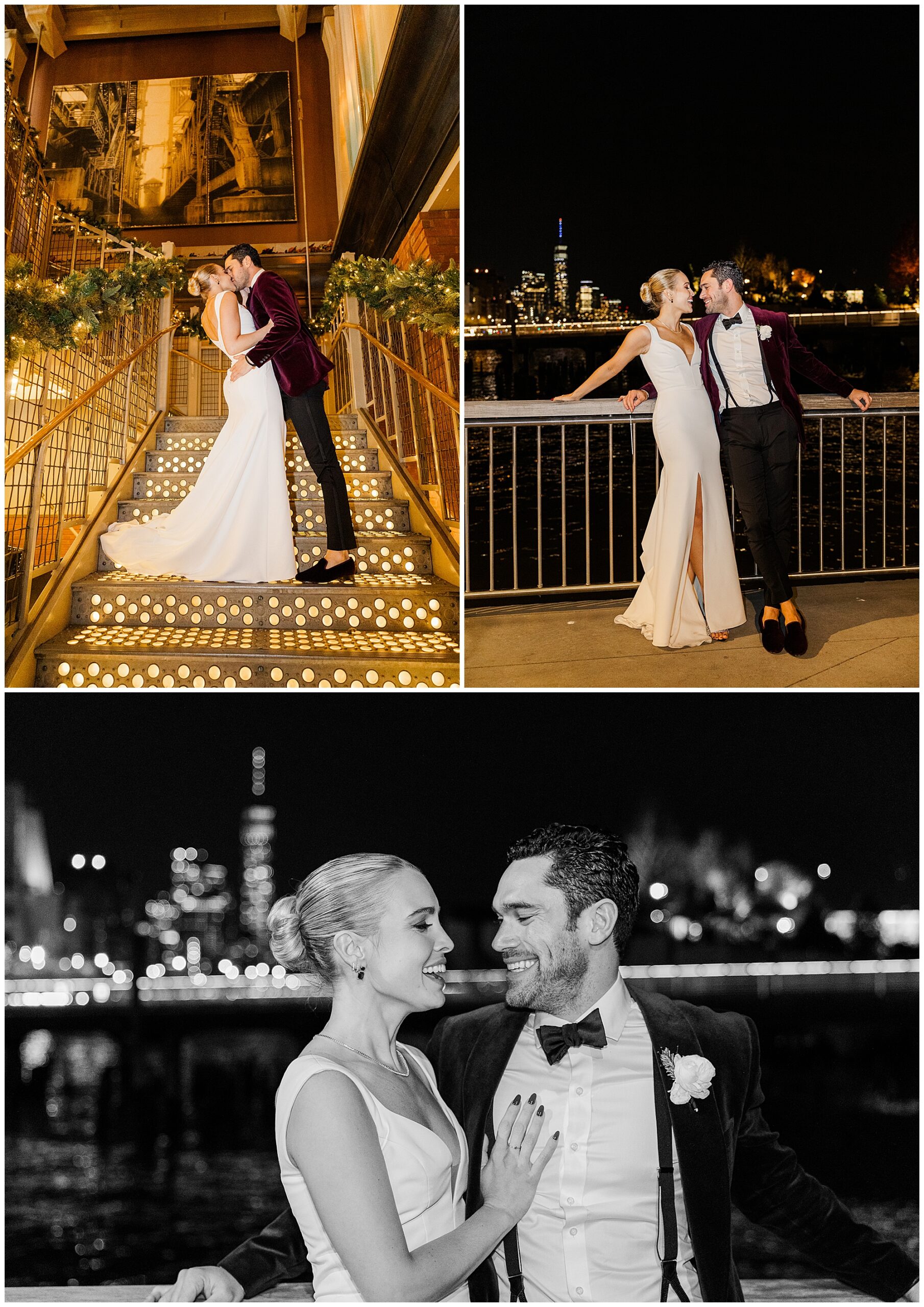 Sam and Nico had a gorgeous winter City Winery Manhattan wedding on the west side of New York. Their day was a stunning celebration filled with festive décor, joyful energy, and cozy winter charm. As Hudson Valley wedding photographers, we typically photograph weddings at City Winery Hudson Valley, so it was a special treat to capture this romantic celebration at the Manhattan location. The combination of holiday sparkle, glowing candles, and waterfront views made their day unforgettable.
