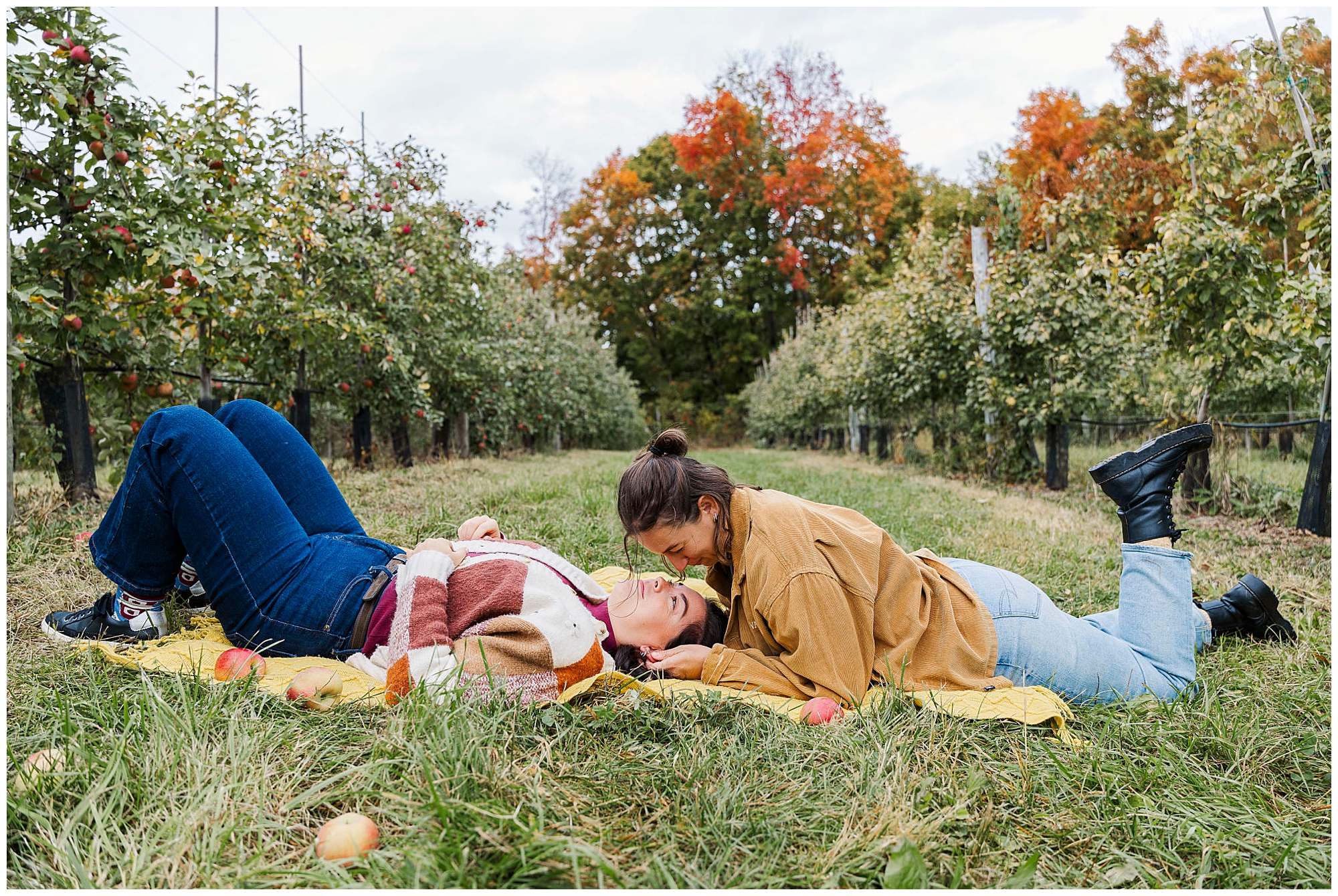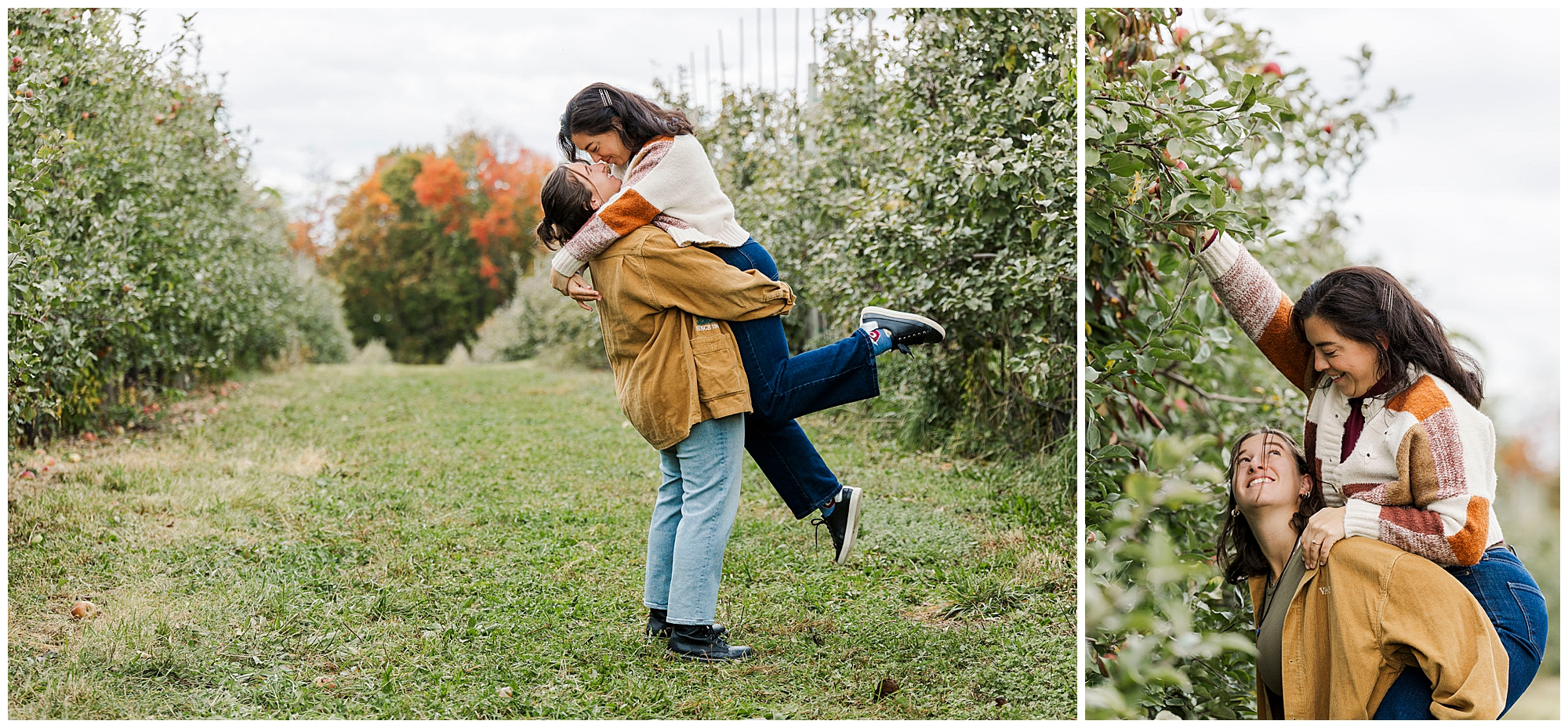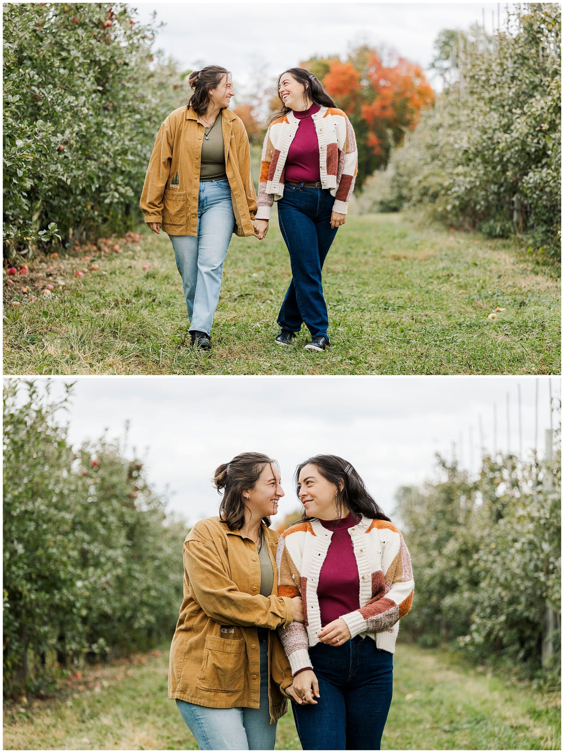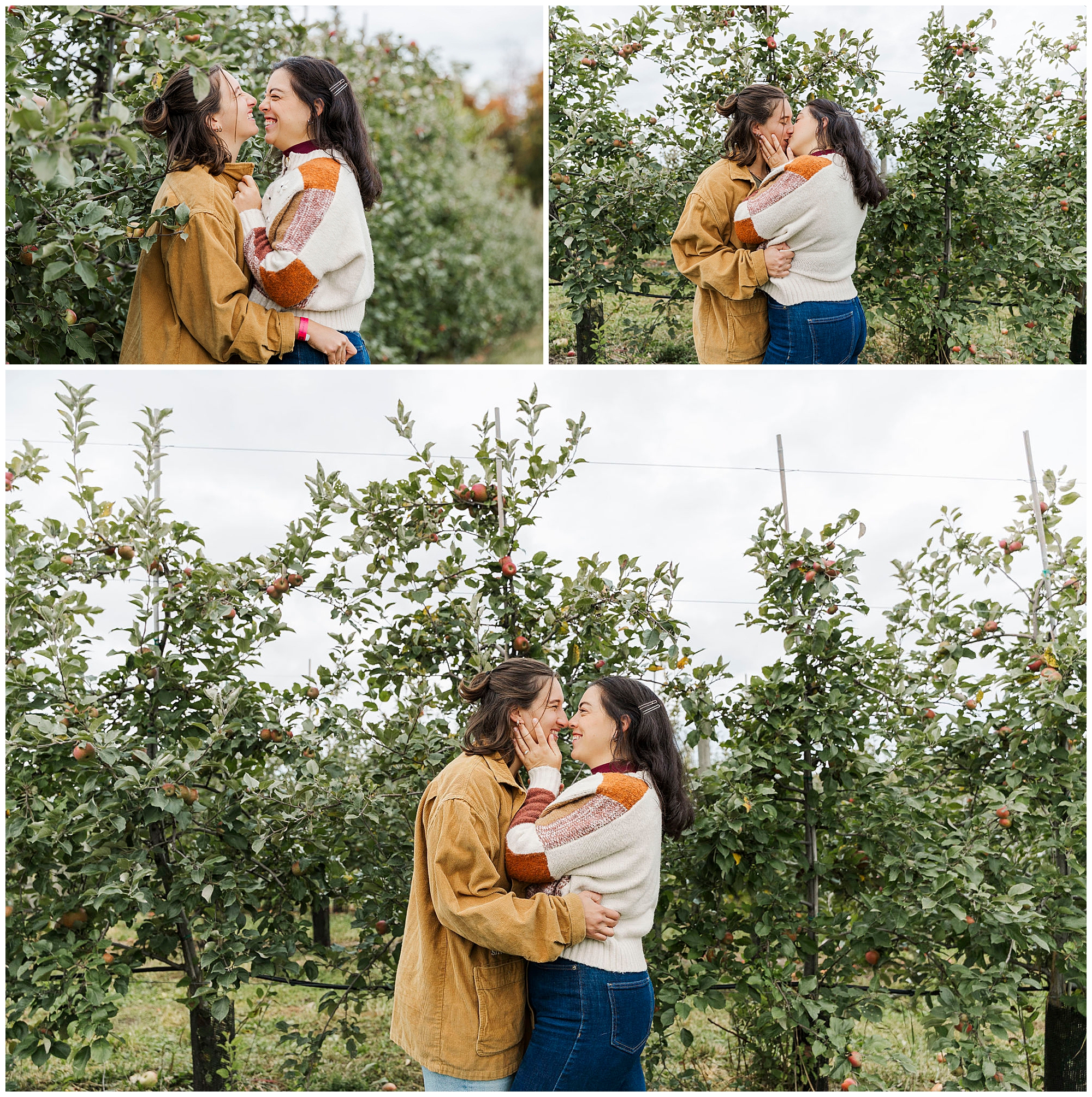 Before this session, we’d photographed Emma and Claire at Blooming Hill Farm. That earlier shoot made this one feel like coming full circle. Now that they’re engaged, returning to another orchard felt meaningful. The Fishkill Farms engagement tied their story together, marking the next chapter of their relationship.
