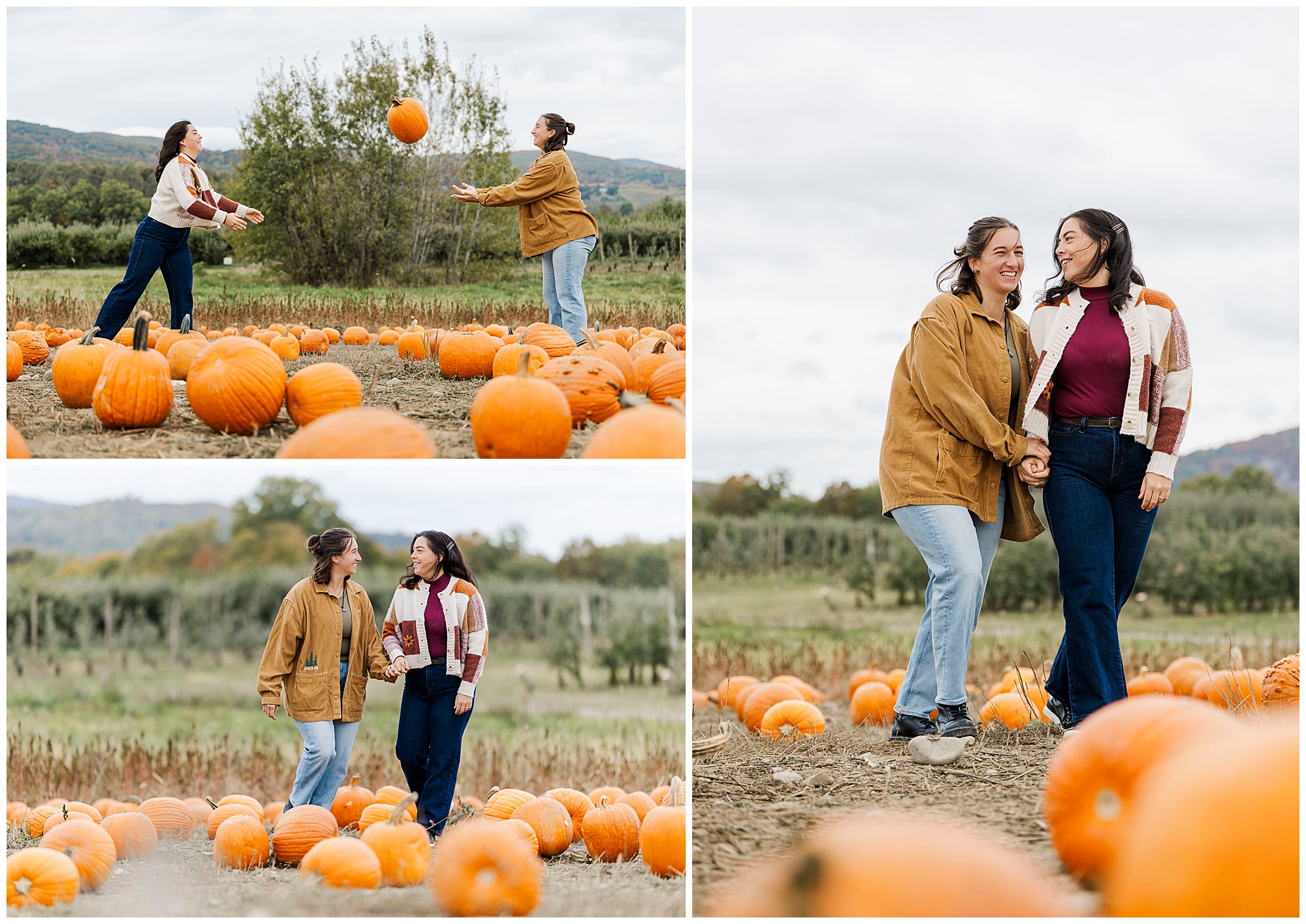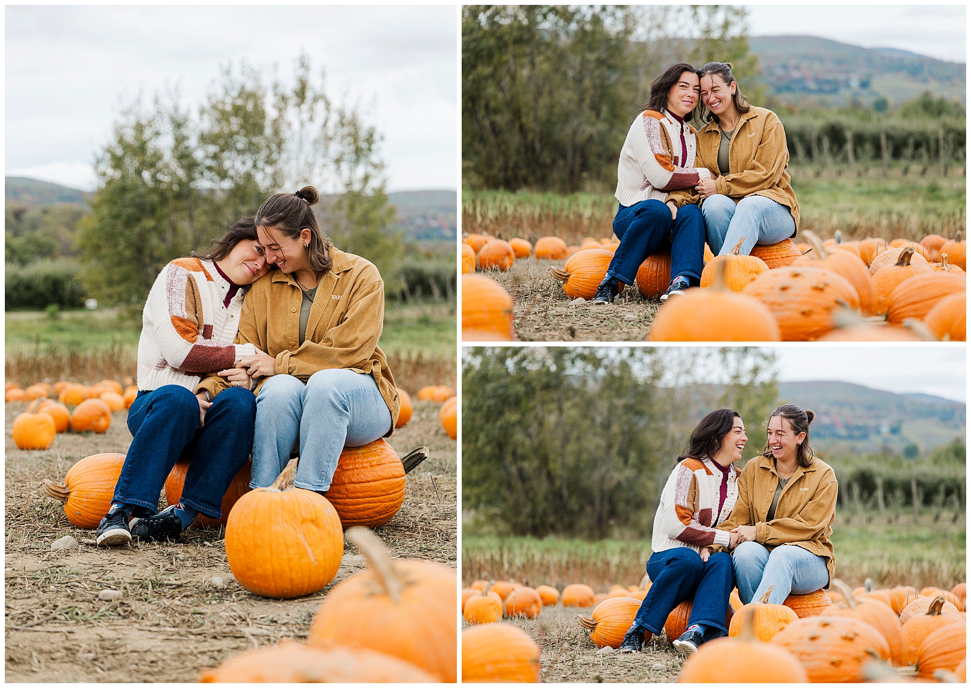Emma and Claire’s Fishkill Farms engagement session is everything we love about fall in the Hudson Valley. The vibrant colors, crisp air, and cozy energy make this farm an incredible spot for couples who want their session to feel warm and relaxed. As Hudson Valley engagement photographers, we always recommend visiting places that reflect who you are as a couple. Fishkill Farms is perfect for that — it’s both scenic and down-to-earth.
