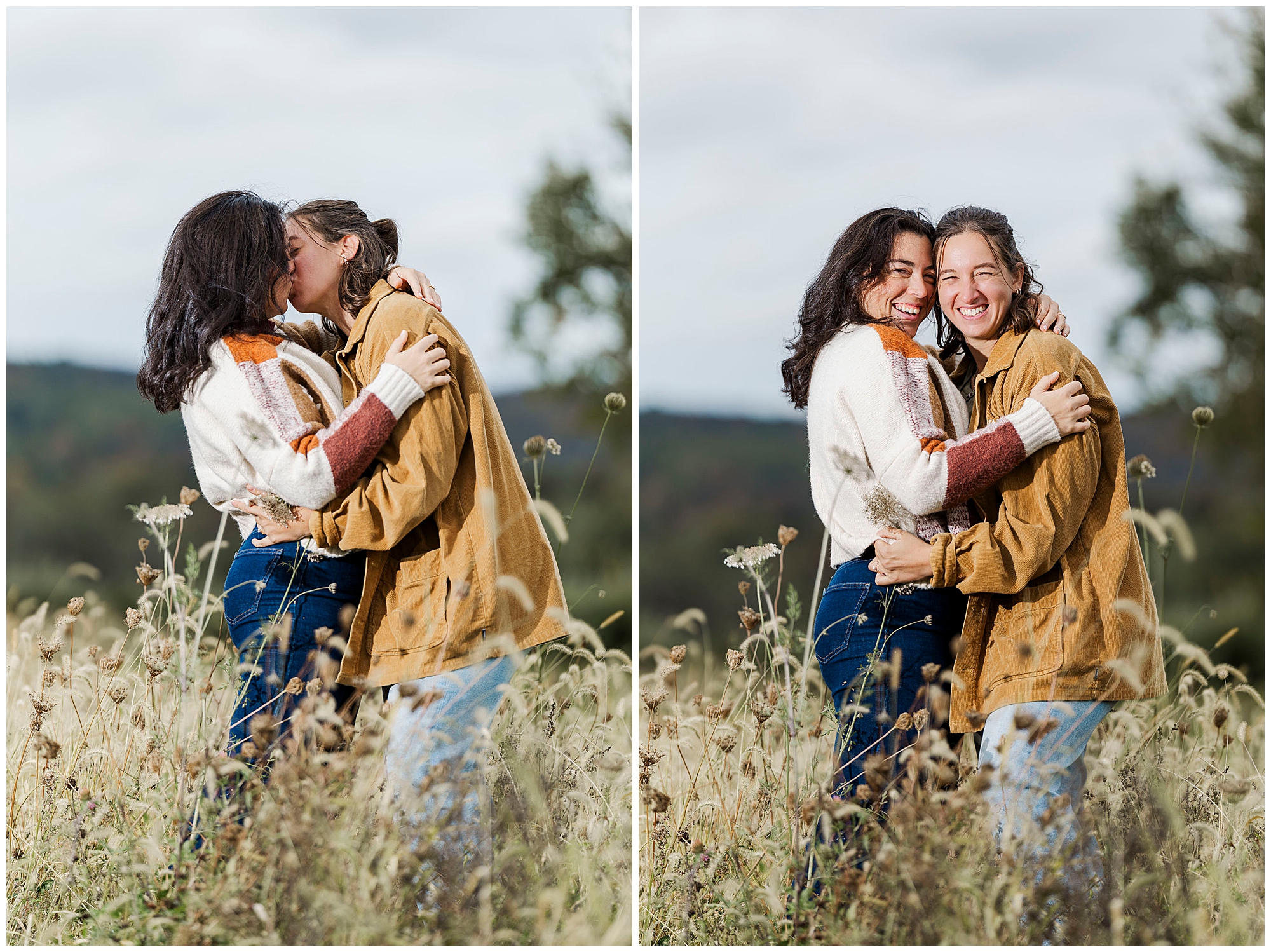 Emma and Claire couldn’t stop laughing during their picnic. It’s one of our favorite things to photograph — real joy between two people in love. Our style of Hudson Valley engagement photography focuses on authentic emotion. We don’t force stiff poses. Instead, we create space for natural connection, which lets moments unfold beautifully.