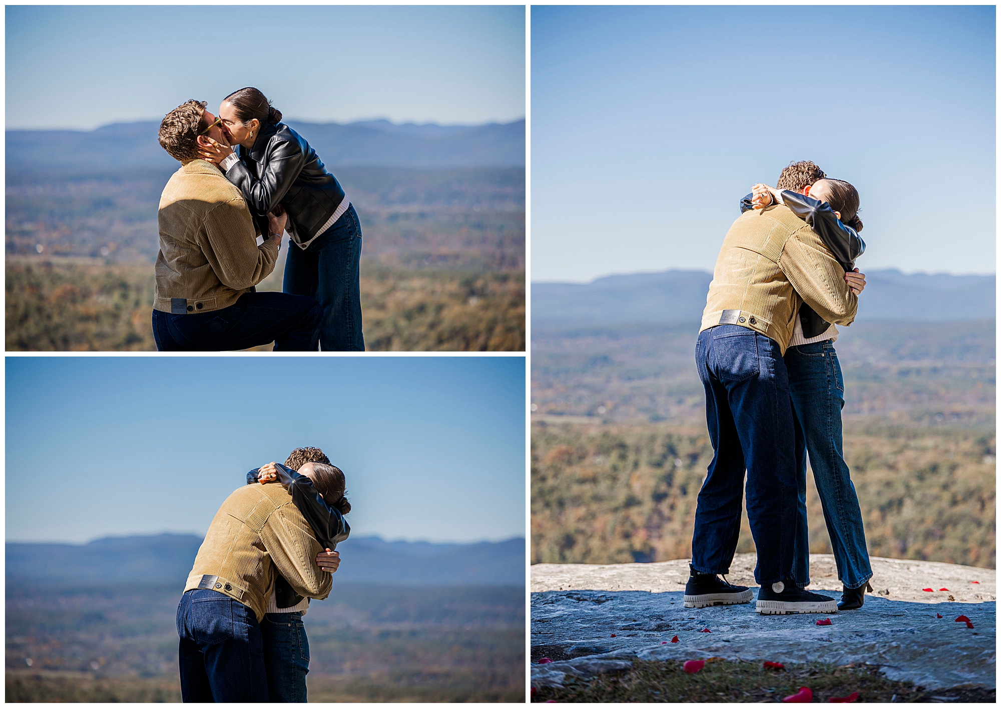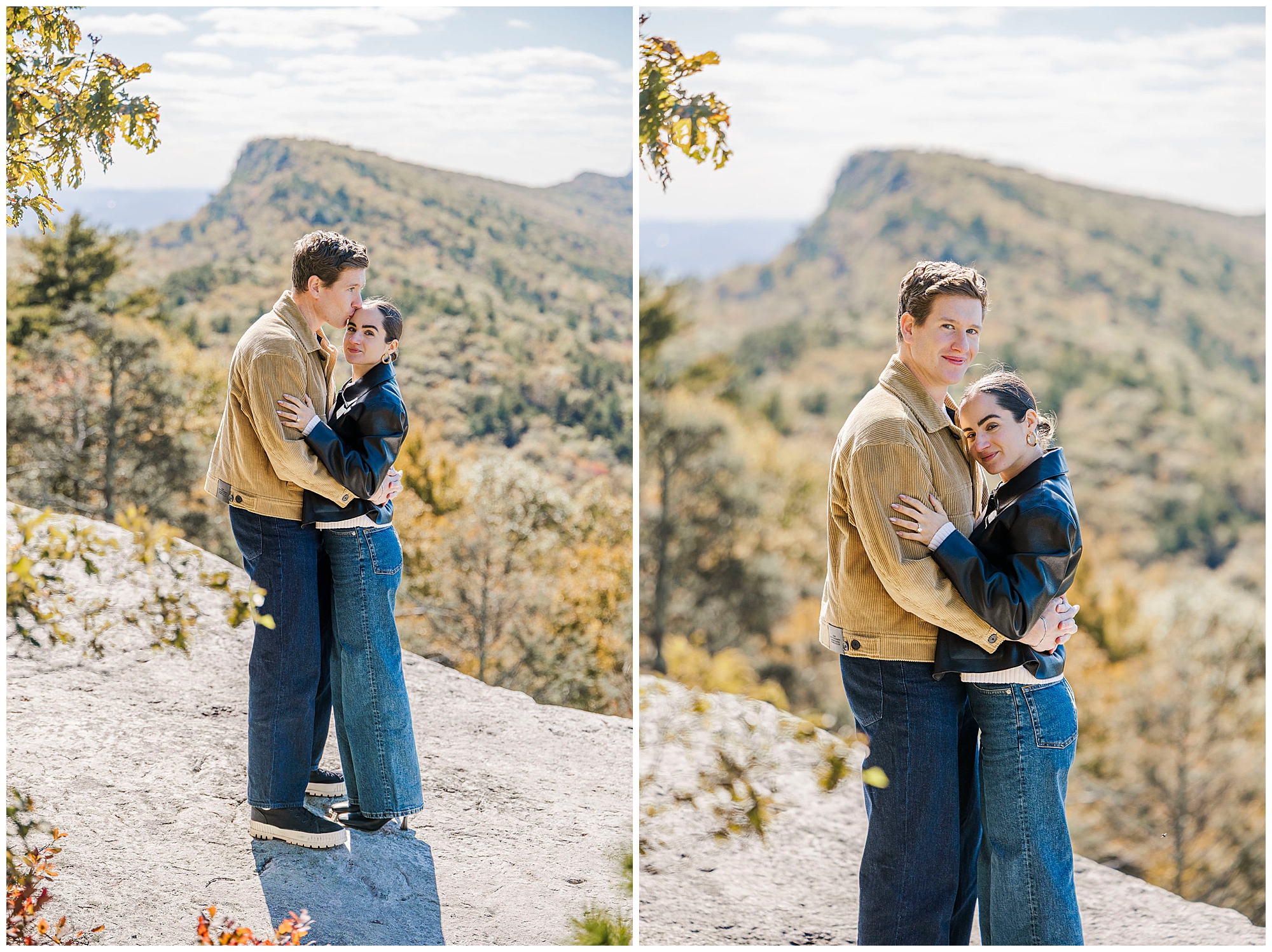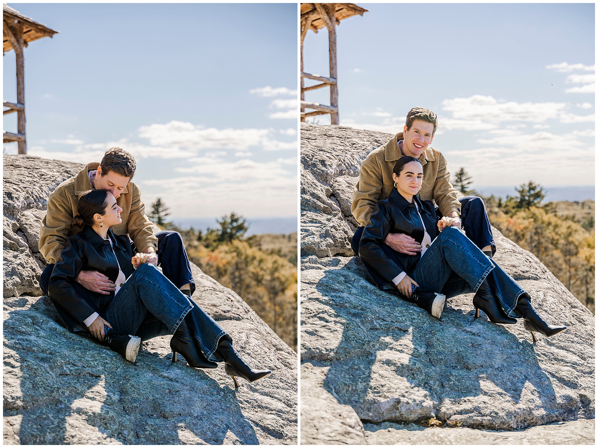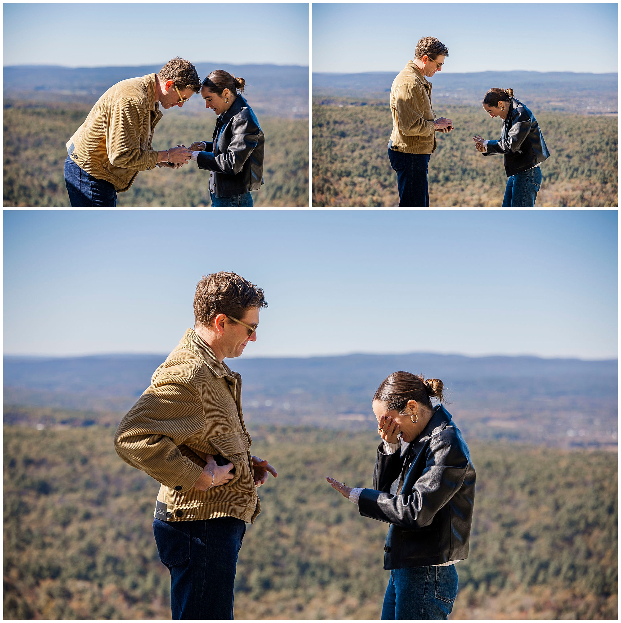 We also stop by Huntington Lookout, where you can see the Mohonk tower rising above the trees. The historic architecture brings a timeless quality to the images. Including these recognizable landmarks in proposal photos gives couples a strong sense of place and connection to the region.