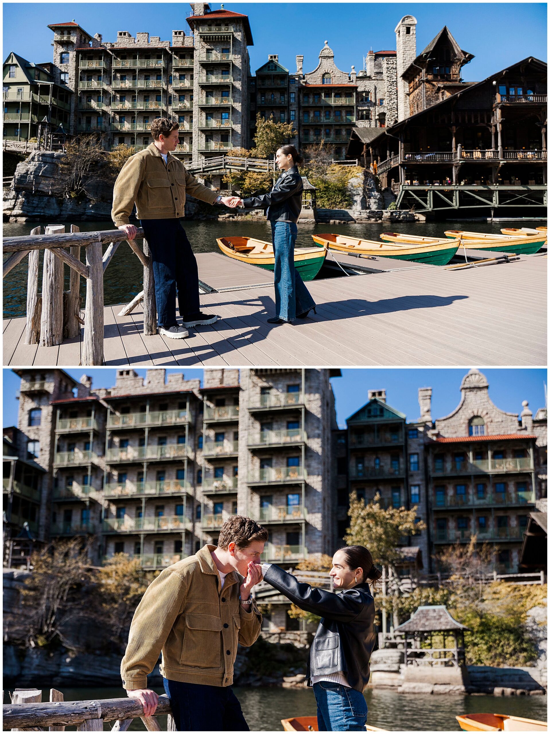 Because Mohonk is a private resort, coordination is key. Rob worked closely with the concierge team to ensure his Mohonk resort proposal went smoothly. We always recommend this step for any couple planning to propose here. Photography at Mohonk requires permission in designated areas, and advance notice is essential. The staff is helpful, and they love being part of such emotional, once-in-a-lifetime moments.