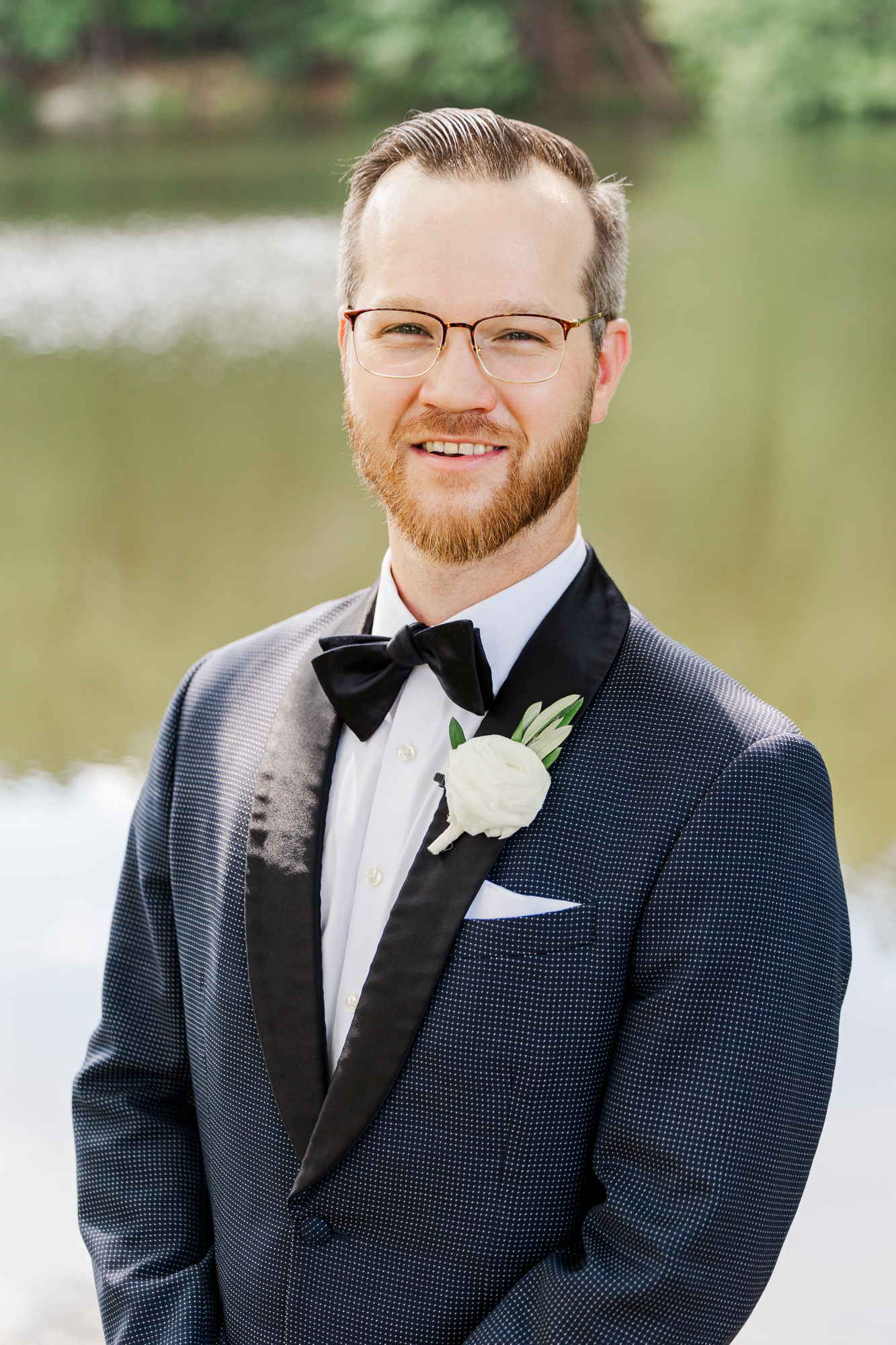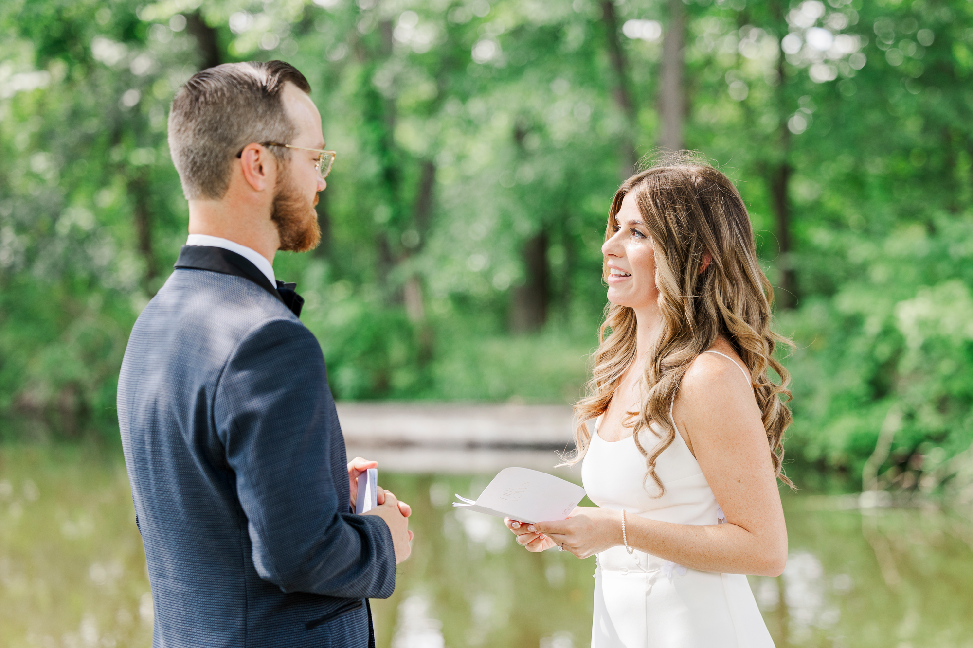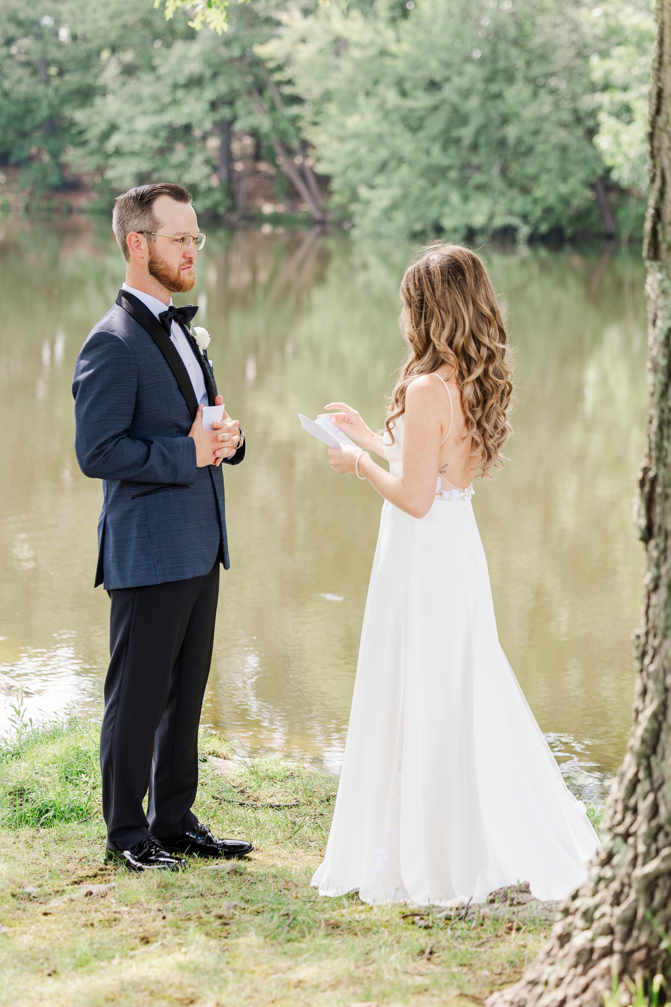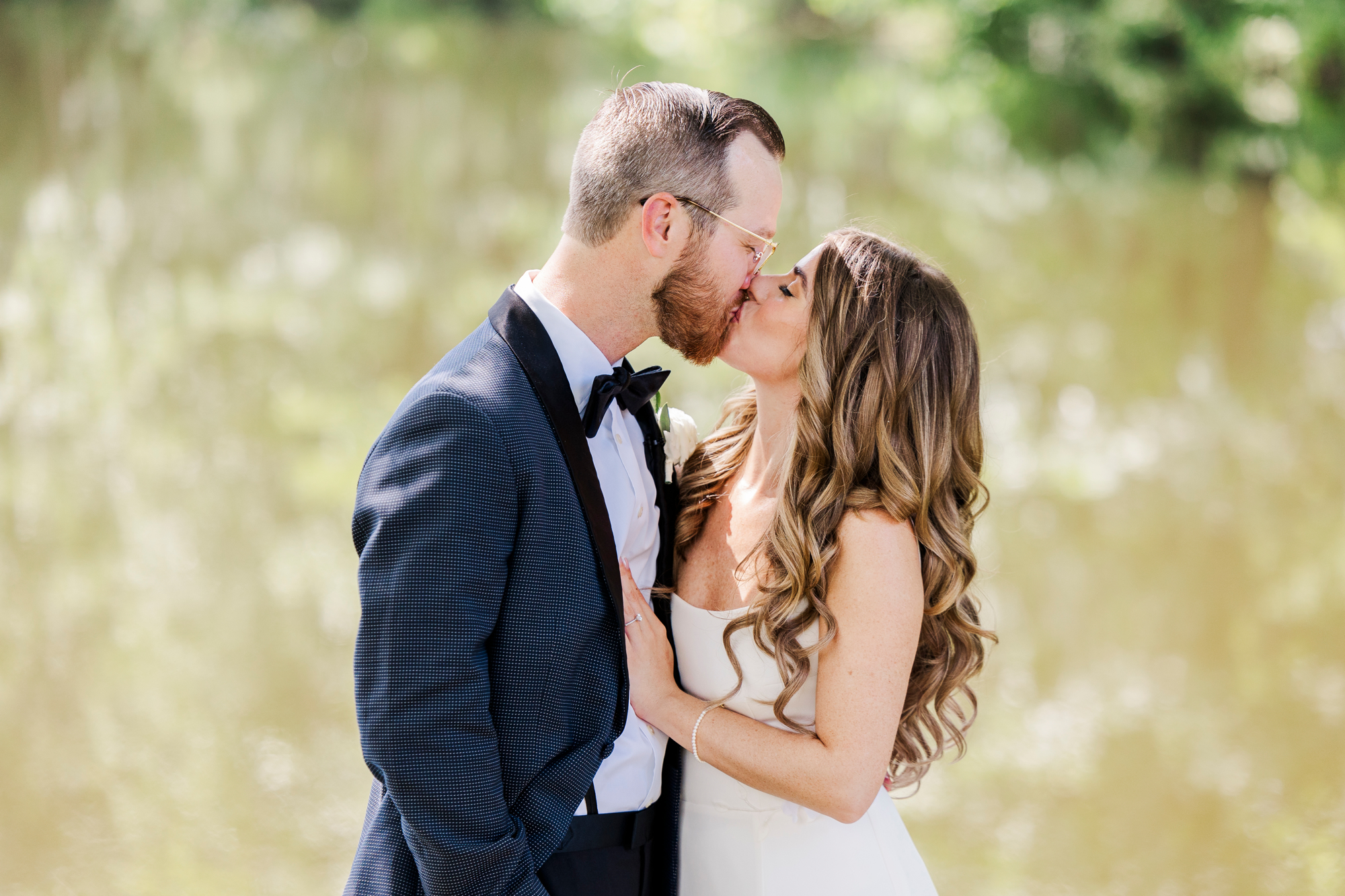 Once they were ready to go, it was time to go to the first look. The team for a Refinery at Perona Farms wedding are super thorough and communicative. It made it easy for us to travel over to the location separately. Alanna and Paul’s first look photos take place at Perona Point, a gorgeous lakeside location. It’s super close to the venue and you can easily access it by golf cart.