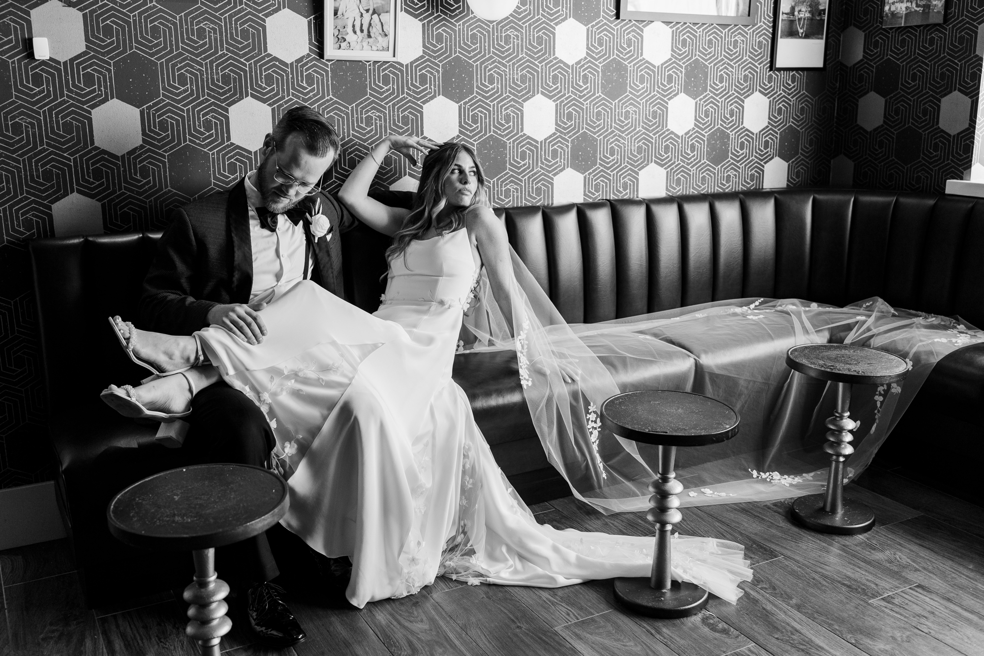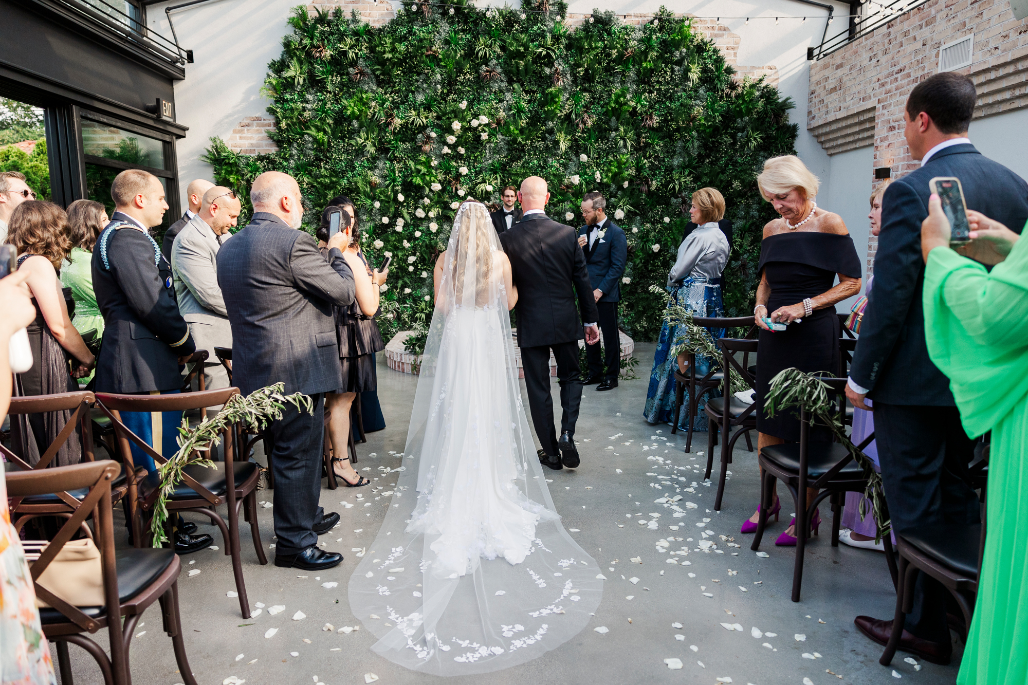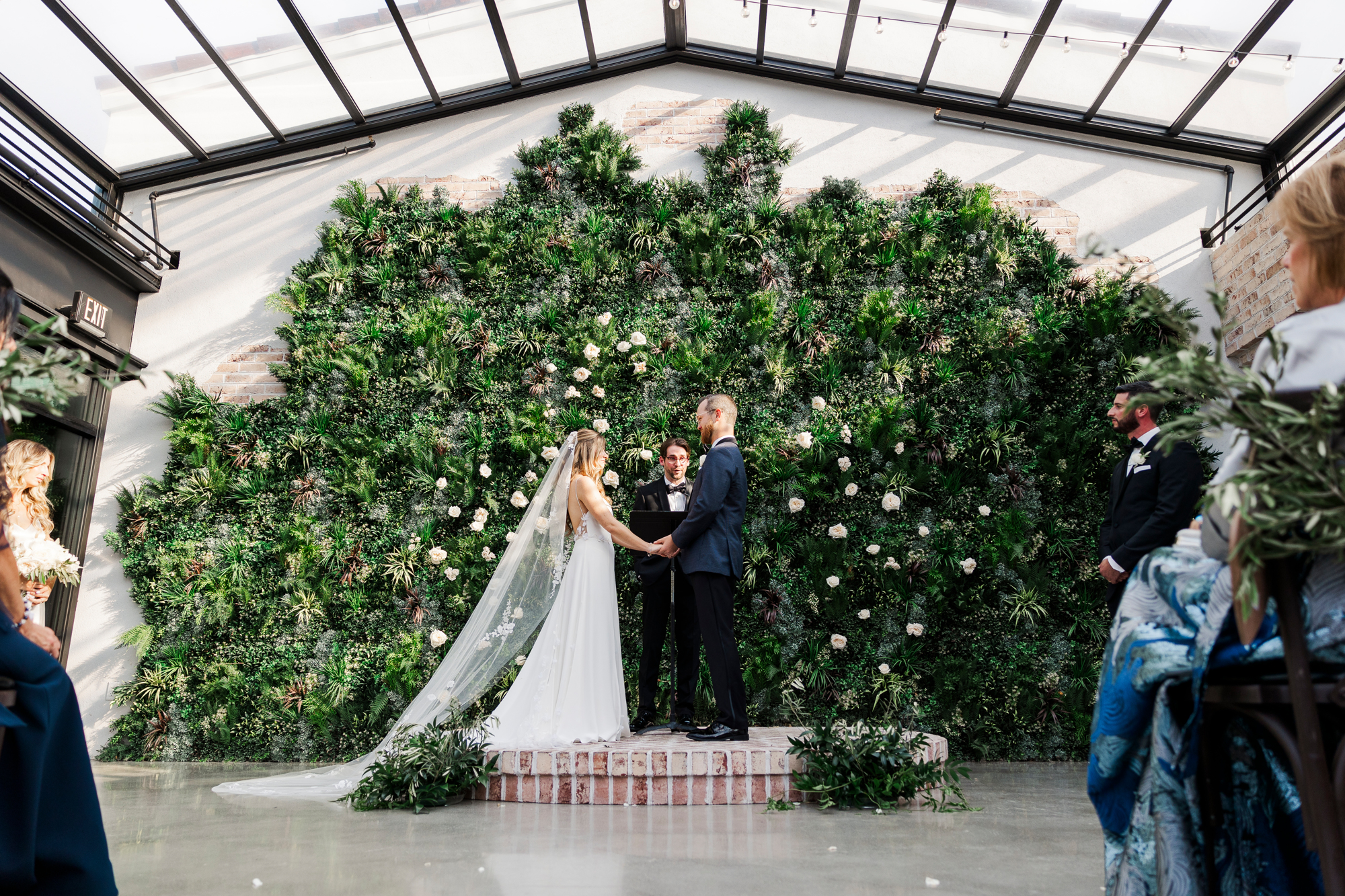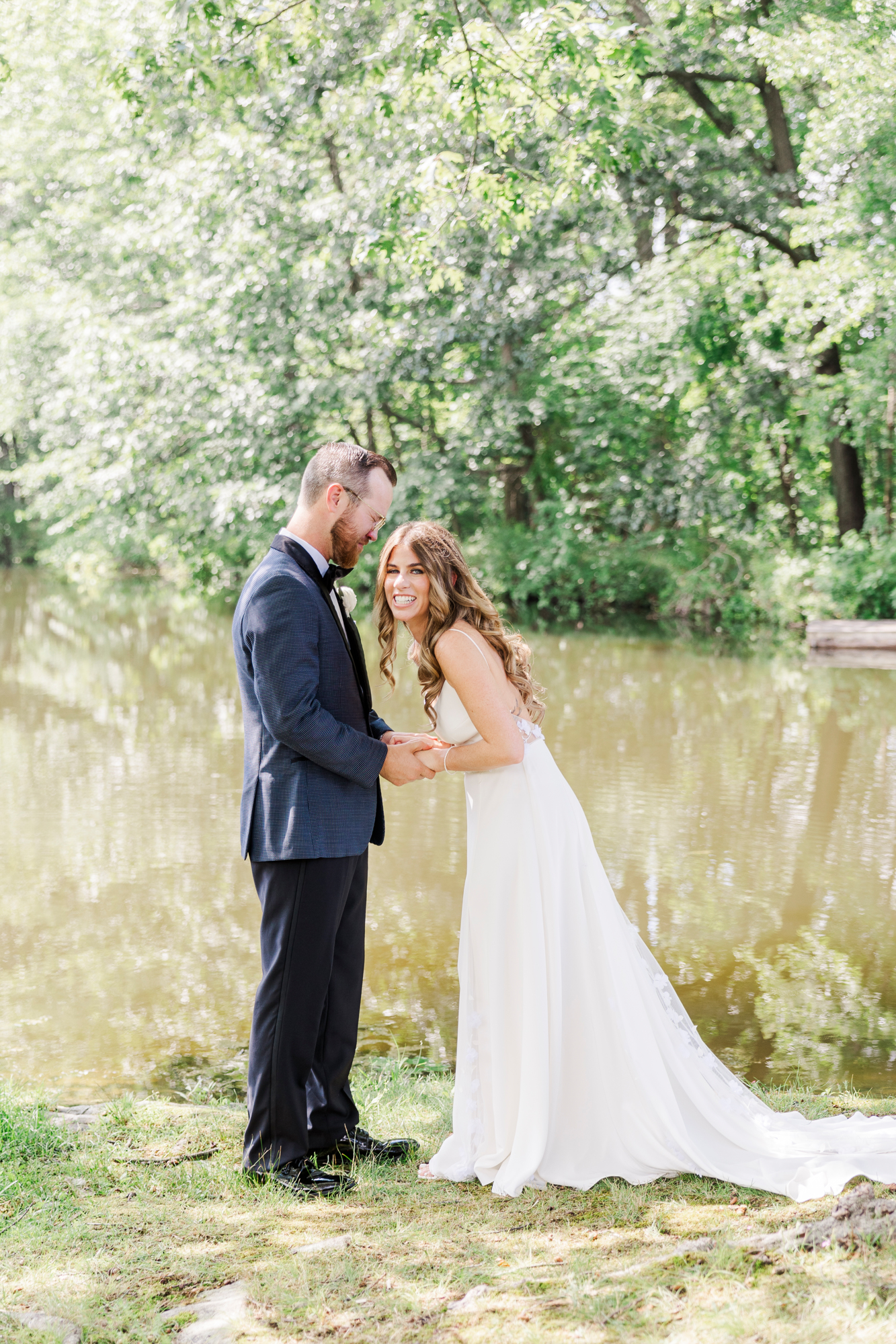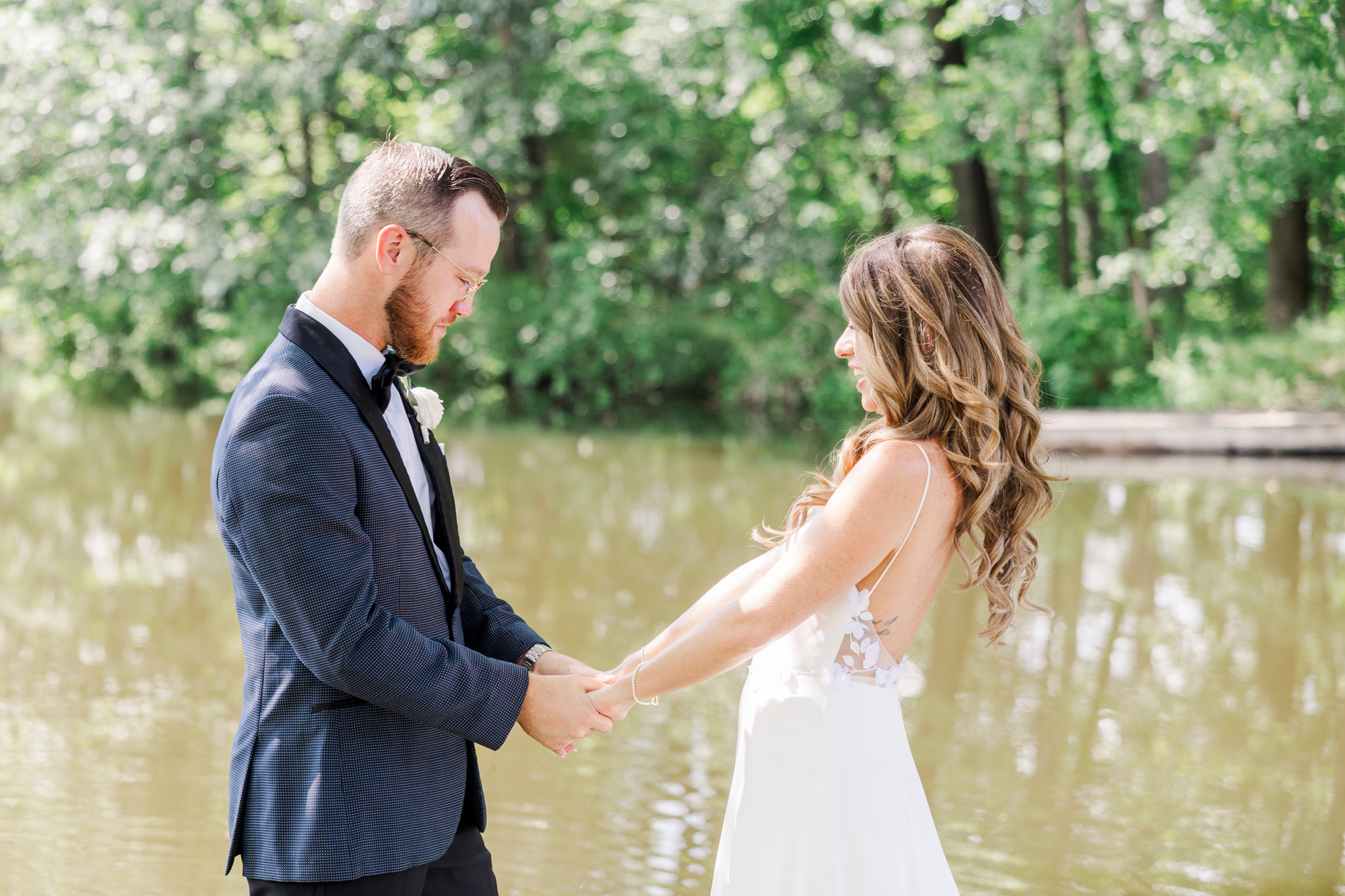 On this hot summer day, the couple exchanged private vows at their portrait location. Perona Point is the perfect spot to do a first look for your Refinery wedding. It’s so private and allows for just the two of you to have a moment together on your wedding day. No one can watch you as you take a moment together, which many couples love. Plus, it’s a great outdoorsy addition to your industrial chic wedding photography.