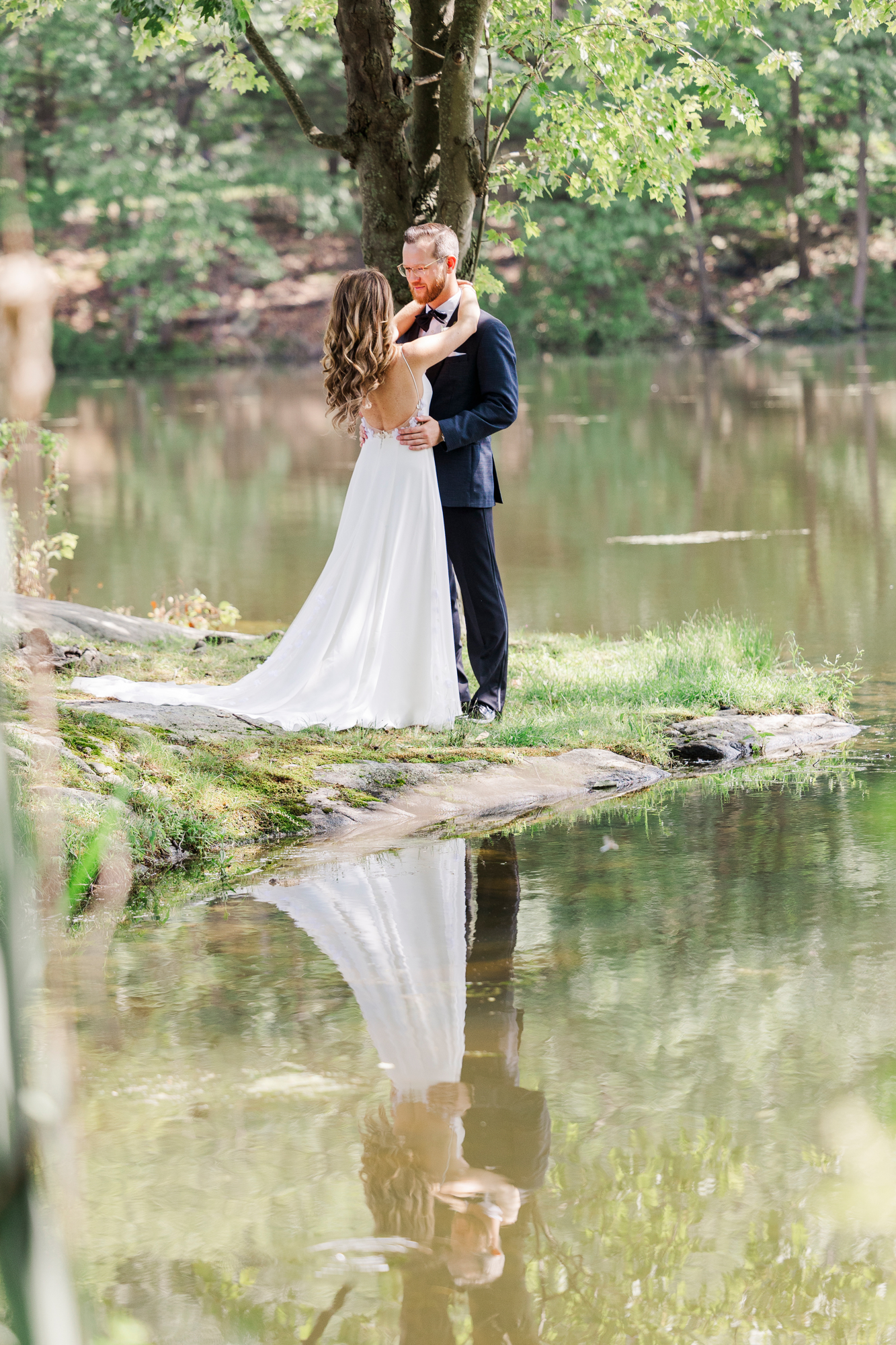 As wedding photographers in the Hudson Valley, we can’t get enough of this rustic, industrial wedding venue. We feel so at home capturing a Perona Farms wedding because there are so many great spots for images. After the couple’s wedding photos at Perona Point, we headed over to the trees to get more romantic, non-traditional portraits.