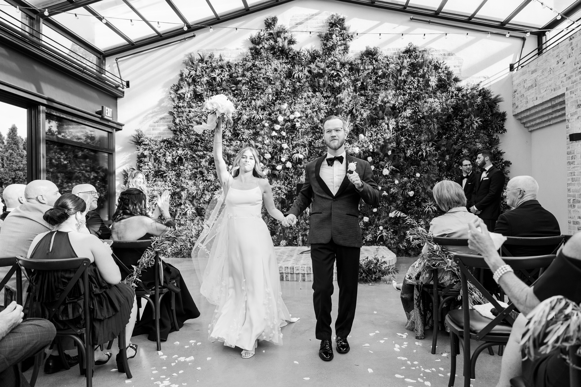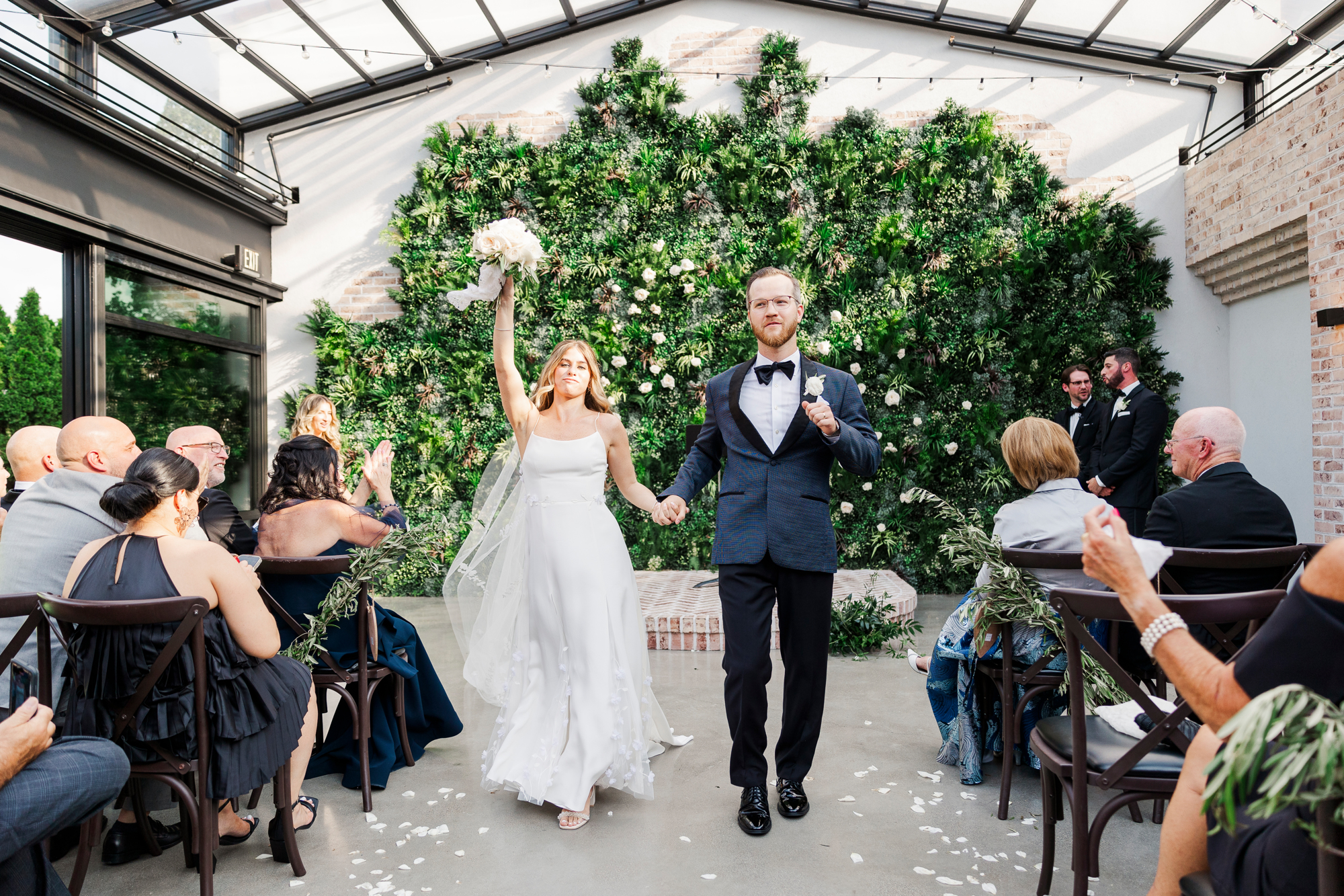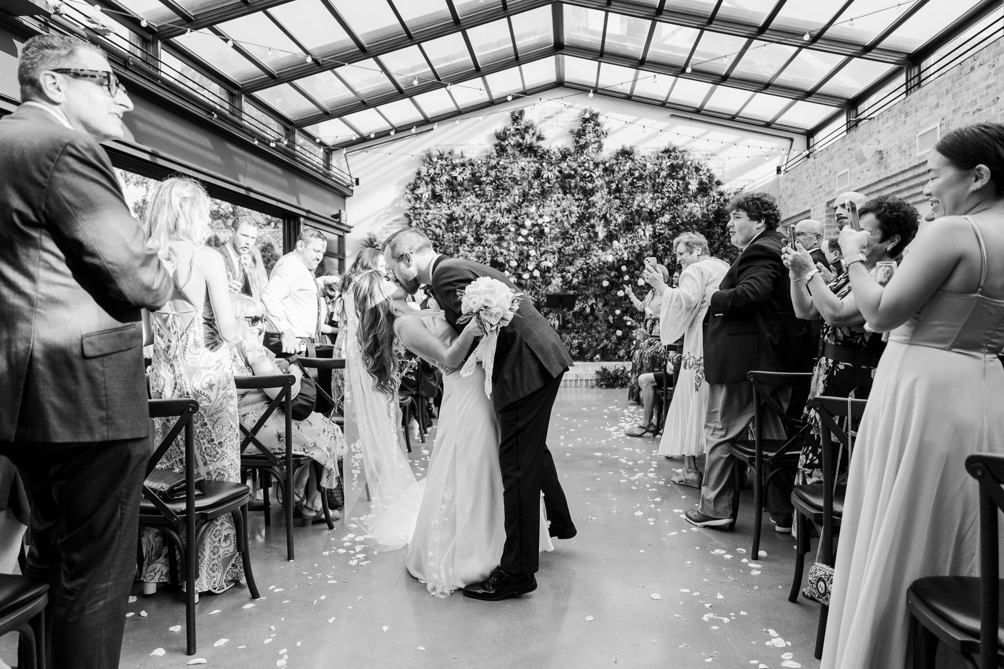 When the ceremony rolled around, we weren’t too sure how the weather was going to hold up. The best part about a Perona Farms wedding, however, is that the ceremony space works for indoor and outdoor conditions. Because the roof is made of glass, your ceremony won’t change aesthetically if it has to close due to rain. Our Hudson Valley wedding photo and video team absolutely loves this about this venue.