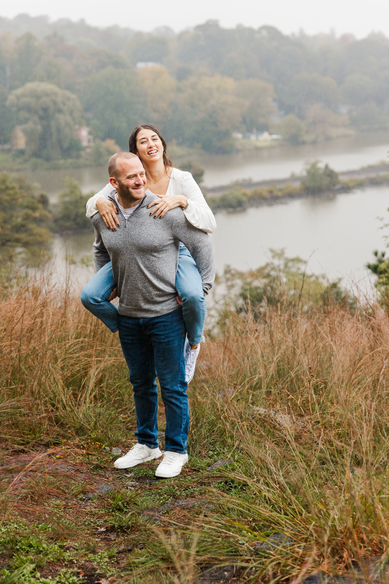 While planning an engagement session in the rain might not top most couples’ lists, Diana and Josh demonstrate that the most memorable moments often emerge from spontaneity. Their genuine laughter and carefree dance in the rain exemplify their profound connection and love. Beacon-based wedding photographers and videographers, skilled in capturing authentic moments, seize this opportunity to immortalize the couple’s pure emotions. Rain or shine, they excel at weaving compelling narratives that reflect the uniqueness of each love story.![]()