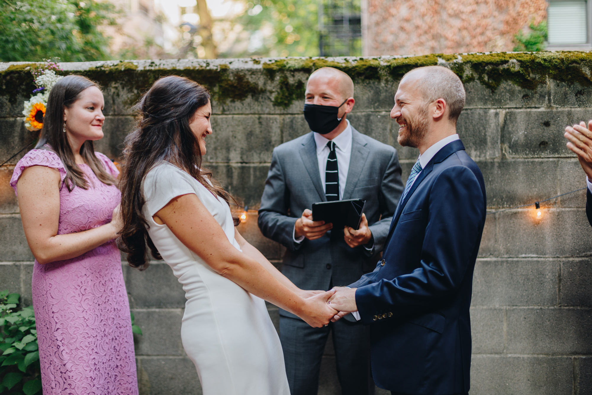 One of our favorite parts of photographing intimate weddings in New York is seeing how communities rally around couples. As Sheila and Rob said their vows, neighbors leaned out of windows to cheer them on. The energy and warmth of that moment mirrored the same kind of support we often see at Hudson Valley backyard weddings surrounded by family and friends.
