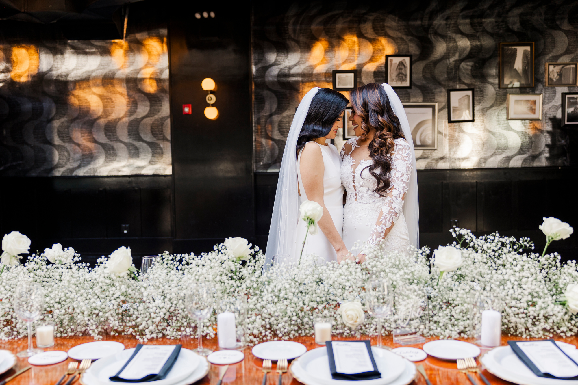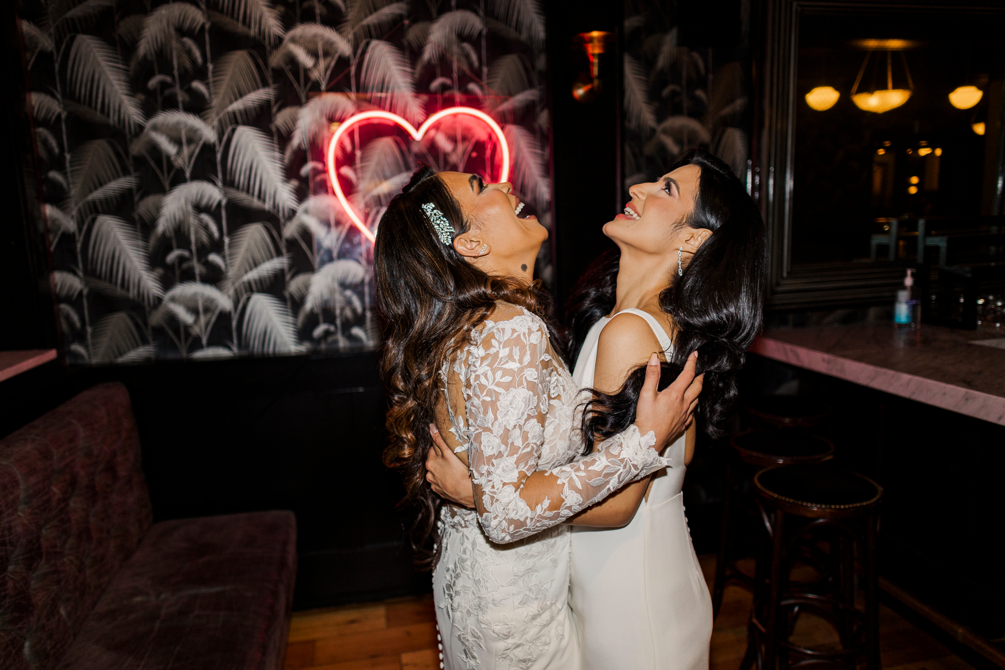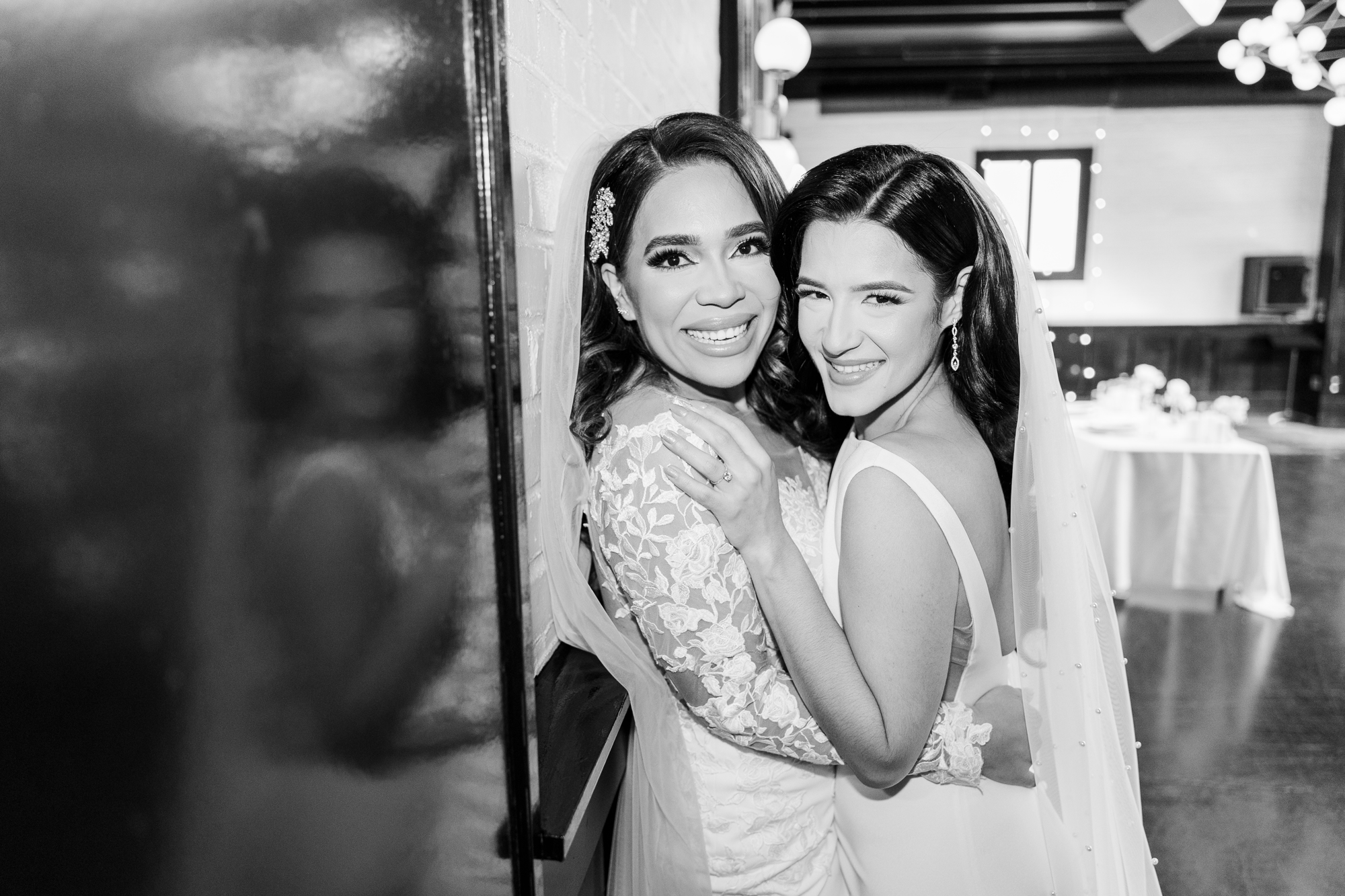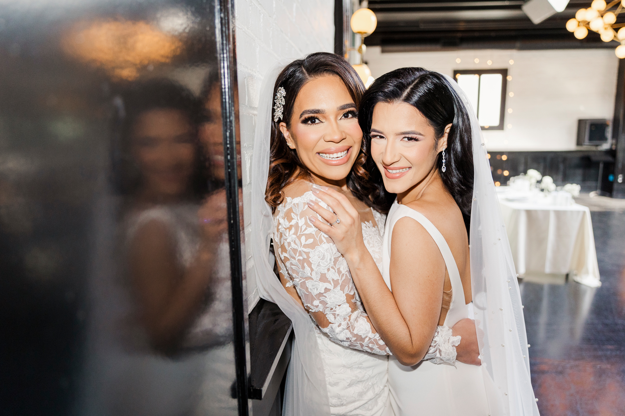As Hudson Valley wedding photographers, we are obsessed with this indoor space. Both the ceremony space and reception space are filled with gorgeous decor and natural light. The bar where cocktail hour takes place is also a great place to take photos. We had a versatile setting where Leilany and Stephanie could enjoy taking a ton of gorgeous shots together.