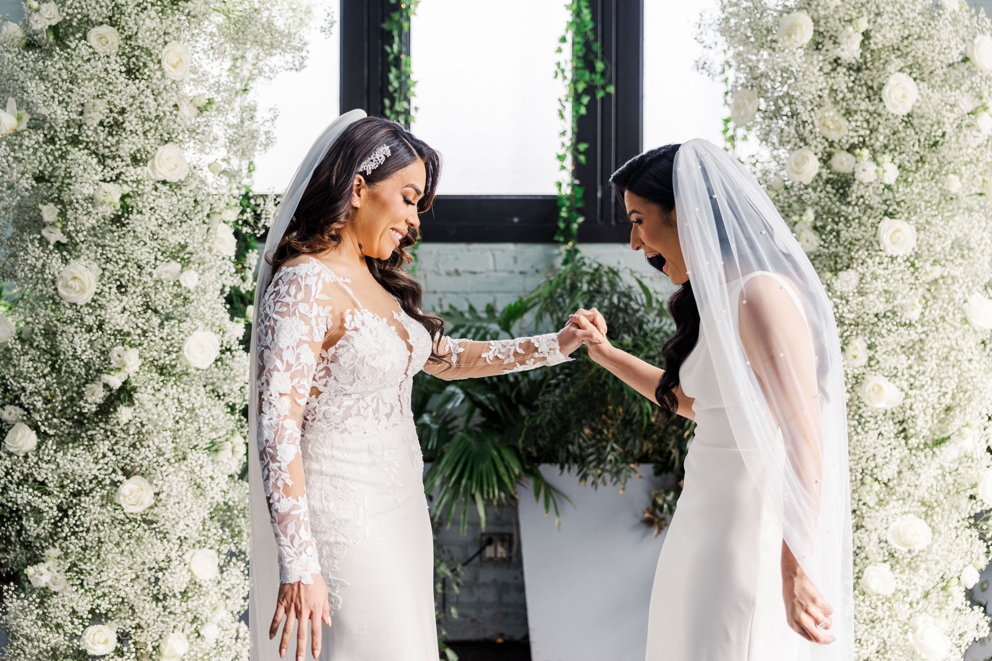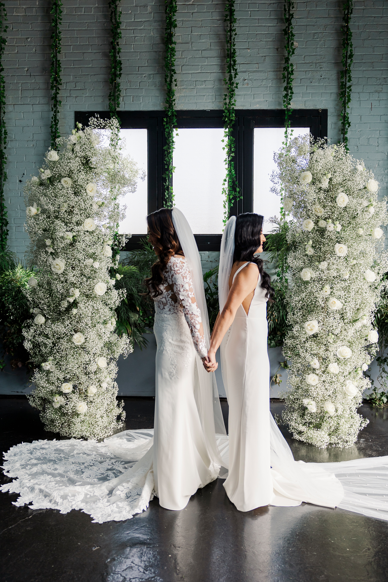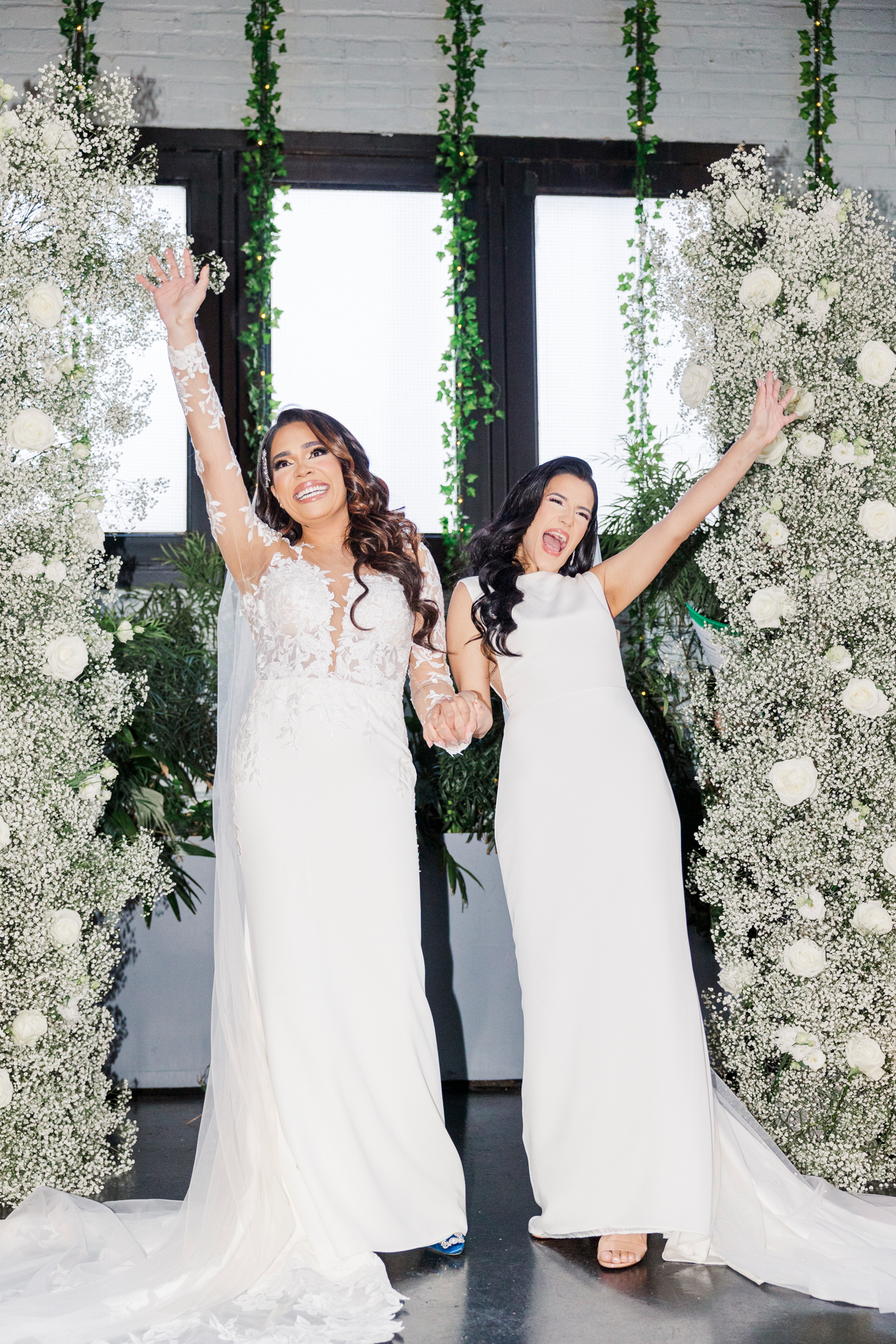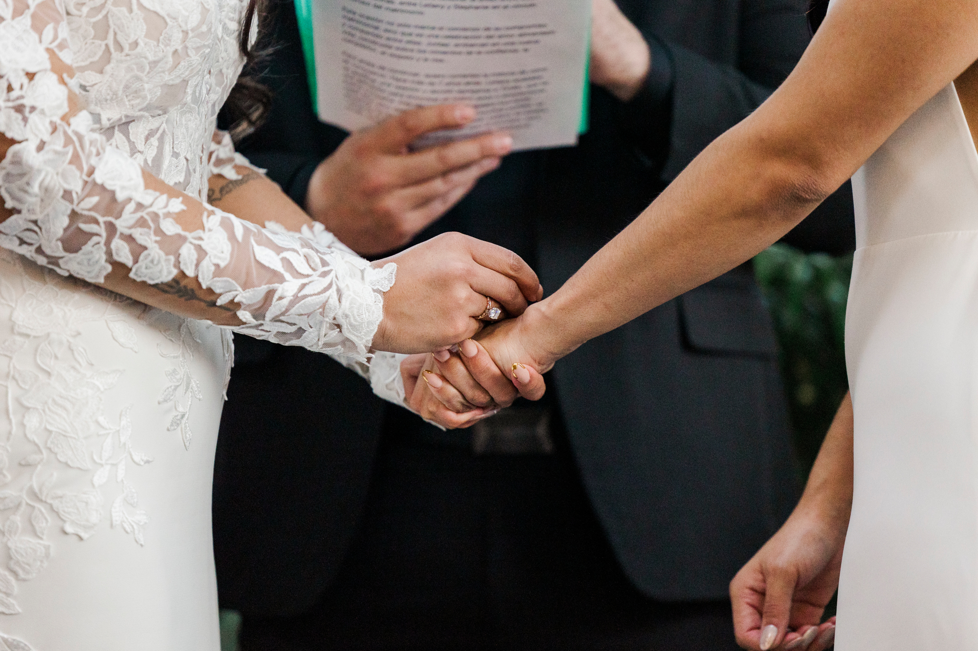 This LGBTQ wedding in Brooklyn featured two gorgeous brides who were so clearly in love. With their dog, Brew, in tow, they had an adorable and intimate wedding day. The two brides were married with an intimate group of family and friends in attendance. This ceremony space is great to accommodate weddings in any season, and you can get great photos indoors for the whole day.