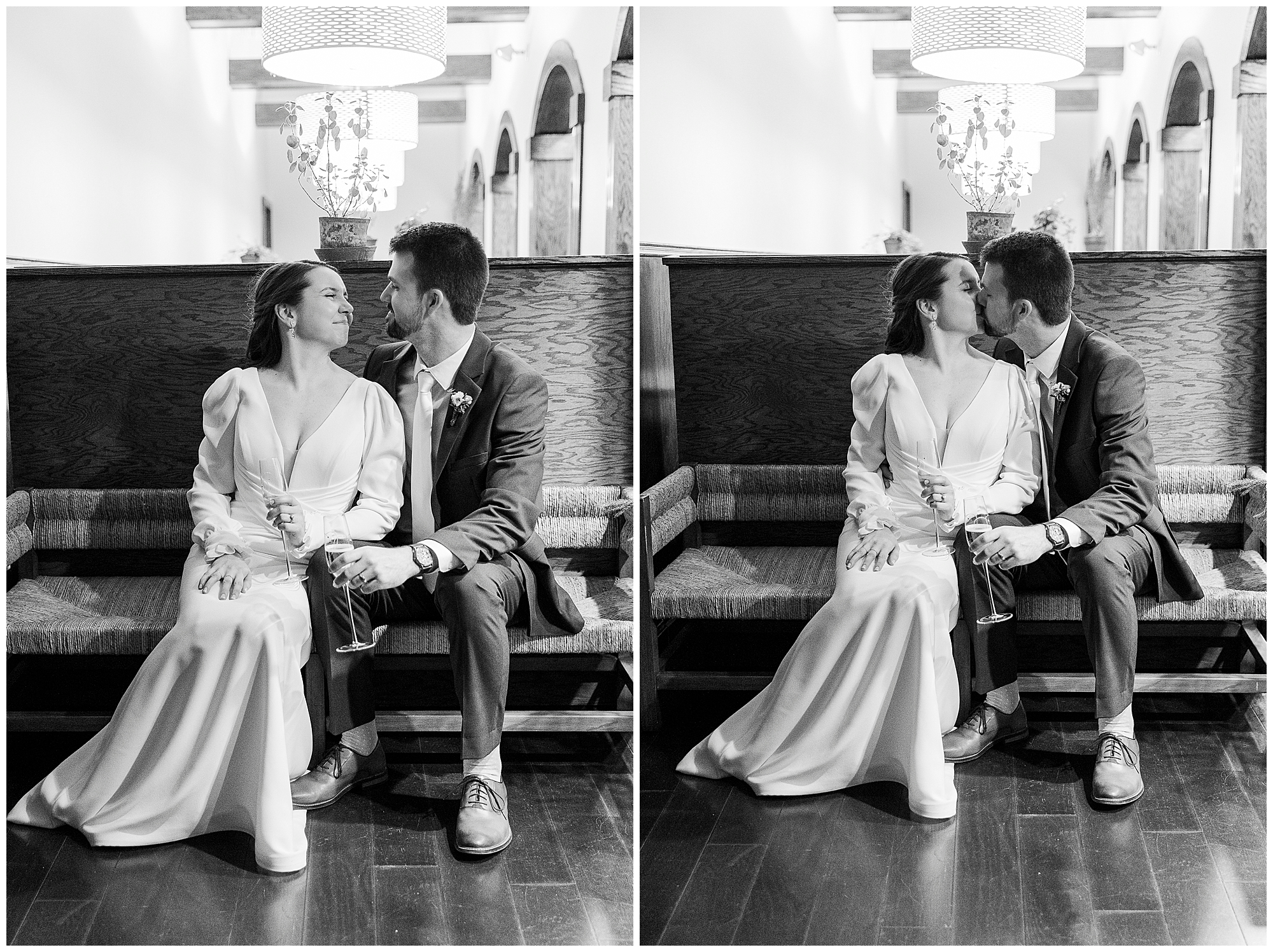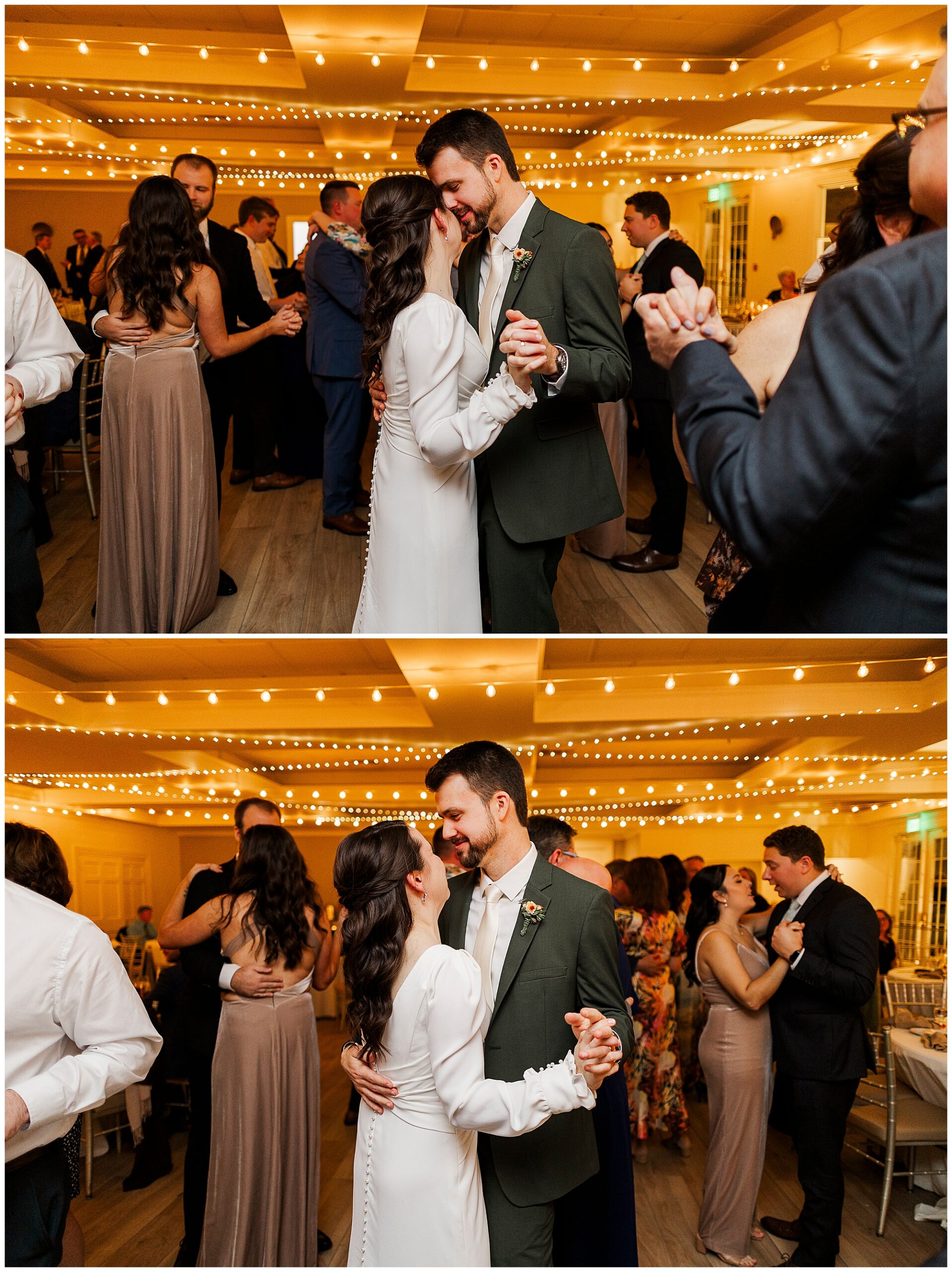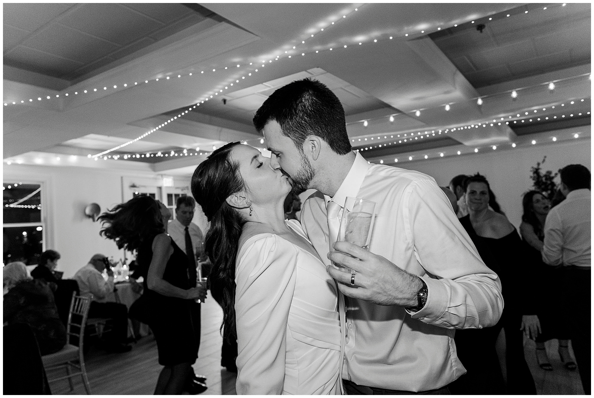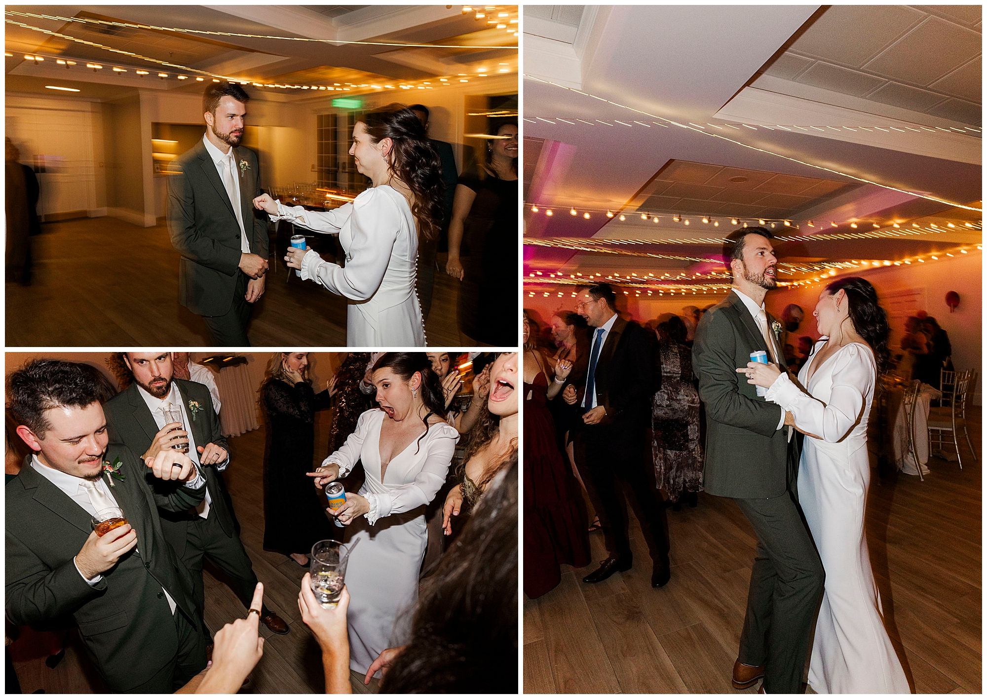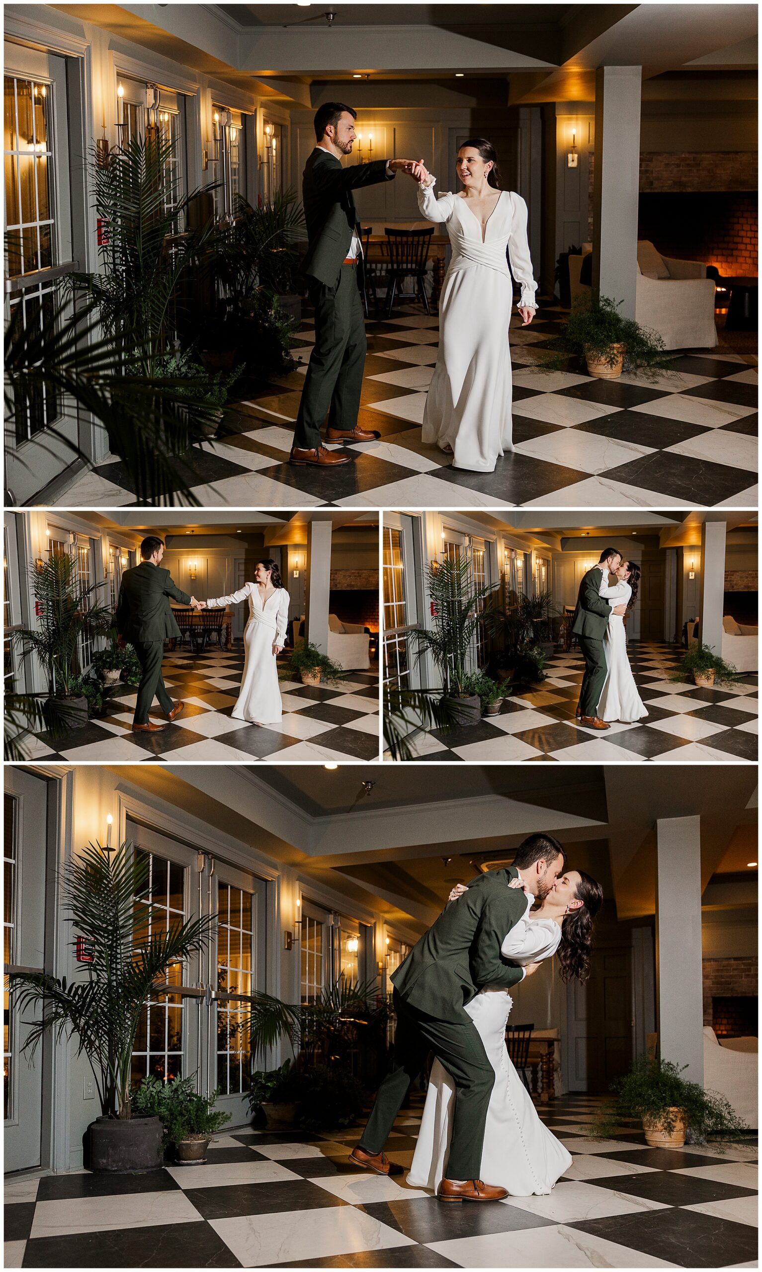 The dance floor stays full all night thanks to the amazing team from Jock in the Box Entertainment. The guests sing along to every song, surrounded by twinkling lights and good energy. We sneak Jenna and Jordan away for a few portraits on the checkered floor in the cocktail hour space. Those quiet moments between the dancing and laughter are some of our favorites from this Litchfield Inn wedding.