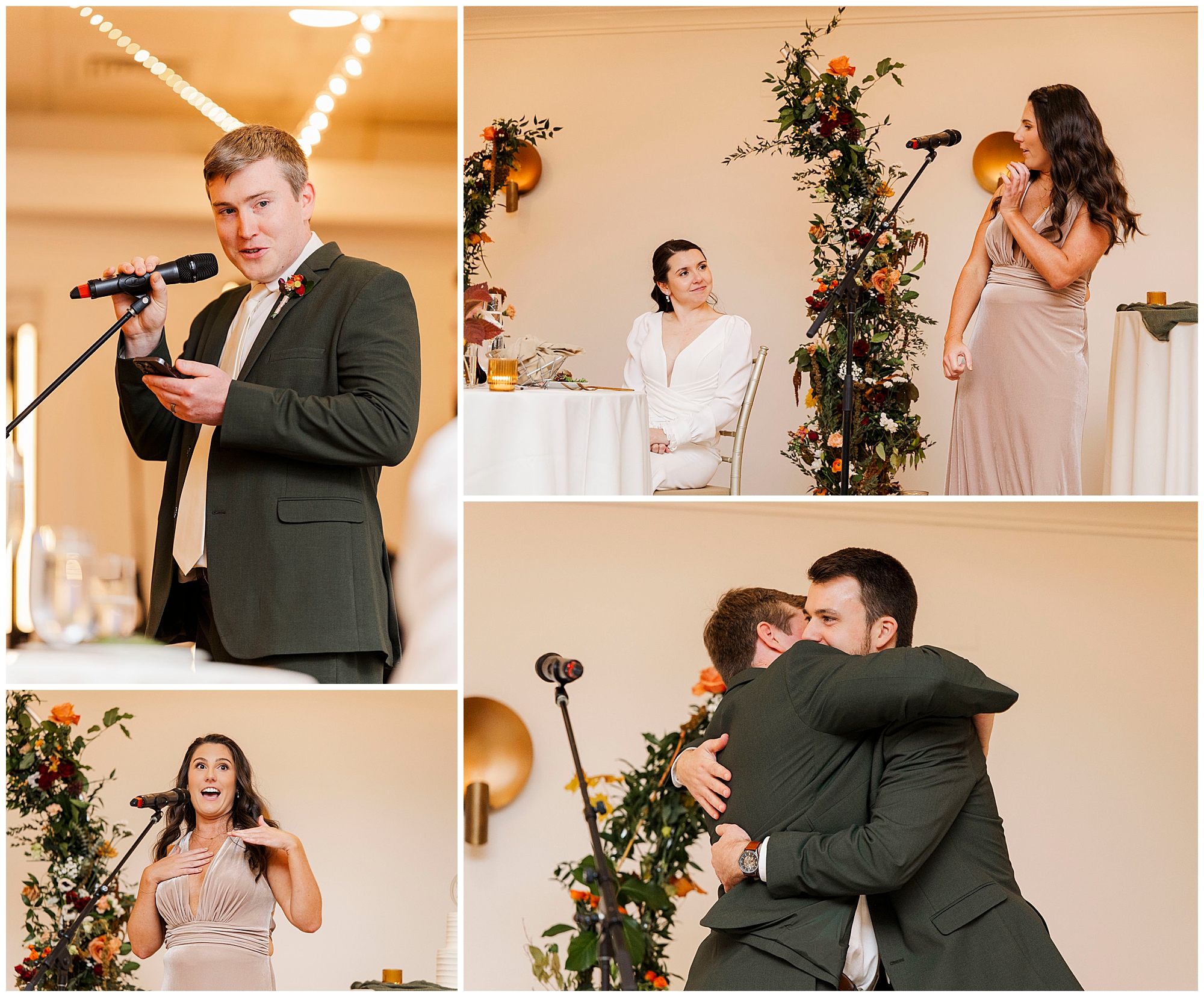 The night wraps up with everyone on their feet, celebrating under the warm glow of the ballroom lights. It’s one of those weddings where you can feel the love radiating from every person in the room. The fall setting, the heartfelt moments, and the venue’s charm all come together beautifully. We leave feeling grateful to have documented such an incredible day for these two.