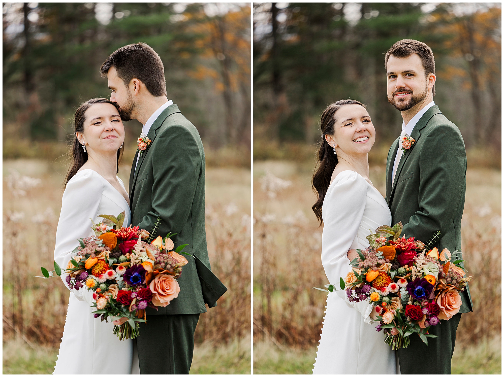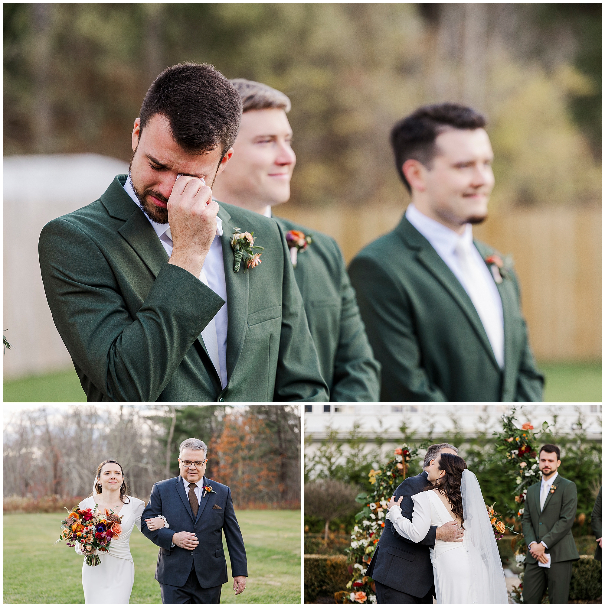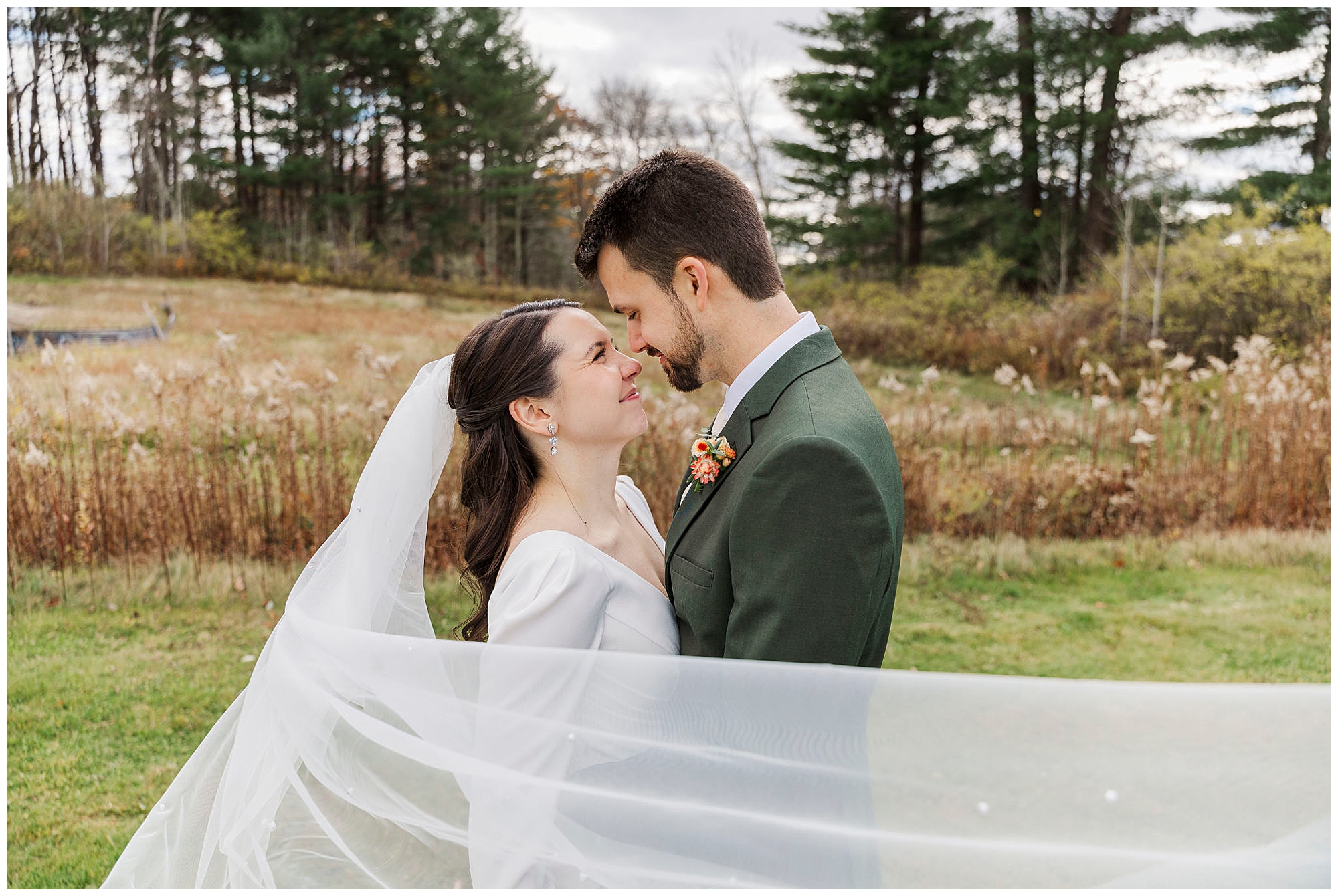 Jenna and Jordan’s Litchfield Inn wedding was the perfect mix of cozy and elegant. Early November gave them crisp air and glowing foliage in the distance. From the moment we arrived, we could feel the excitement building. The couple’s love and emotion carried through every part of their day, from the first look to the dance floor.
