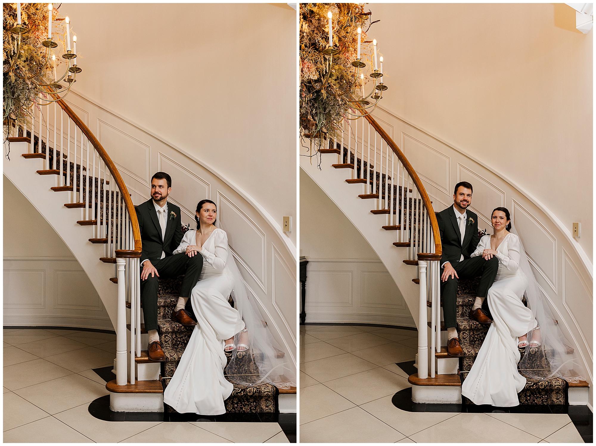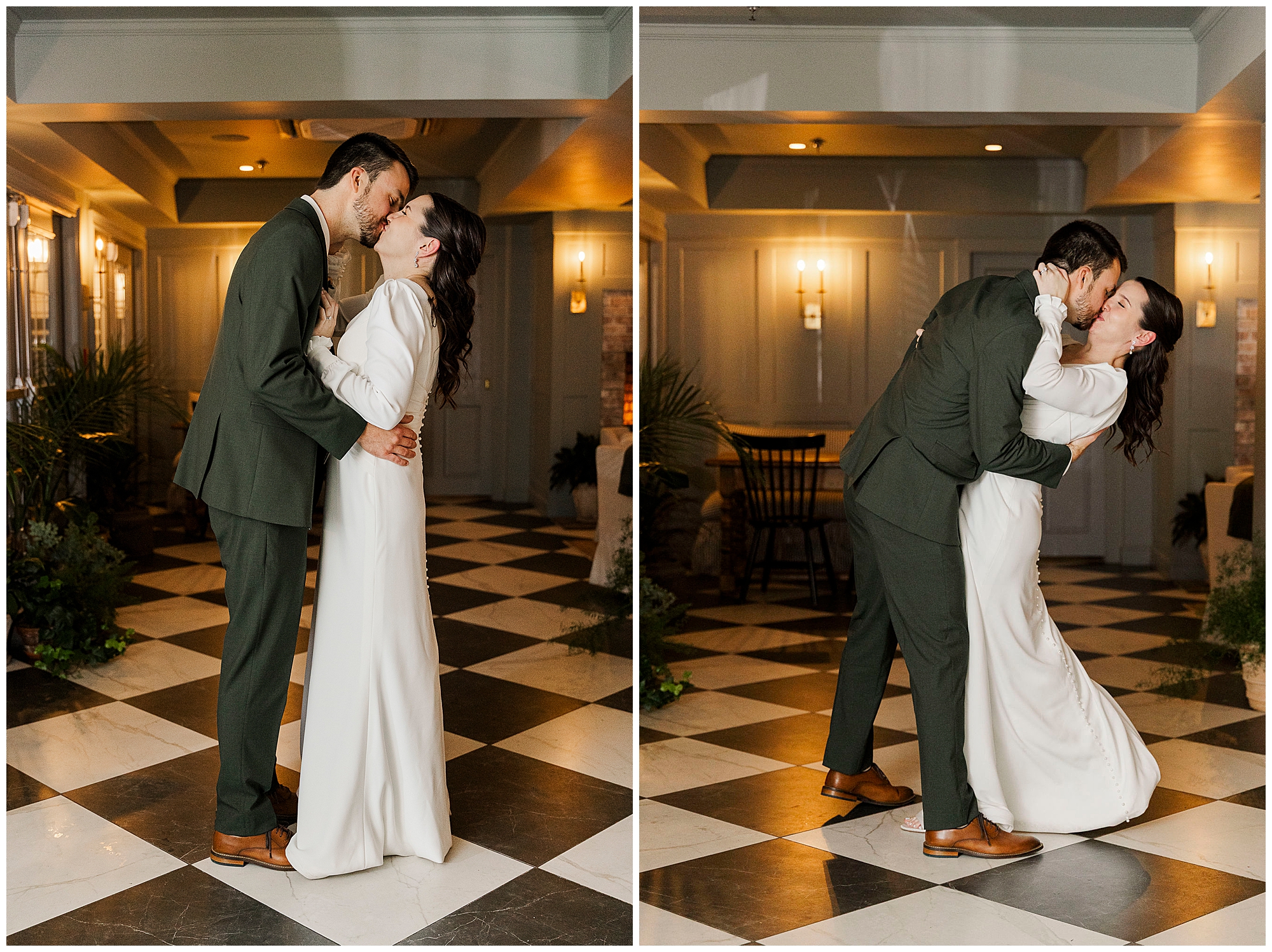 The dance floor stays full all night thanks to the amazing team from Jock in the Box Entertainment. The guests sing along to every song, surrounded by twinkling lights and good energy. We sneak Jenna and Jordan away for a few portraits on the checkered floor in the cocktail hour space. Those quiet moments between the dancing and laughter are some of our favorites from this Litchfield Inn wedding.