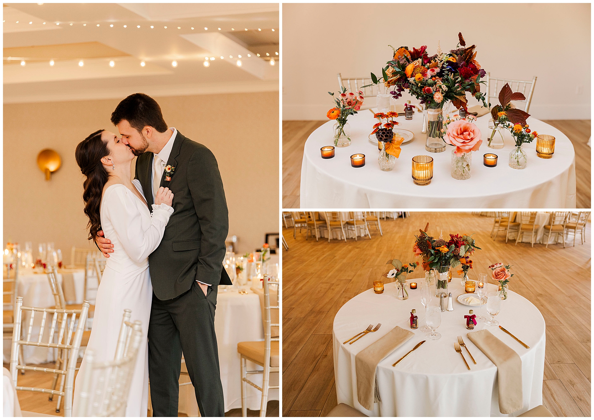 The night wraps up with everyone on their feet, celebrating under the warm glow of the ballroom lights. It’s one of those weddings where you can feel the love radiating from every person in the room. The fall setting, the heartfelt moments, and the venue’s charm all come together beautifully. We leave feeling grateful to have documented such an incredible day for these two.