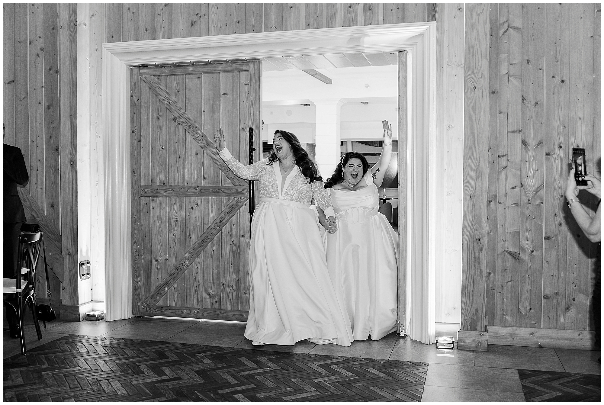As queer wedding photography specialists, we appreciate great venues. The modern Craftsman barn aesthetic photographs beautifully. High ceilings and lighter wood tones prevent darkness. Intricate stonework adds texture and visual interest throughout.