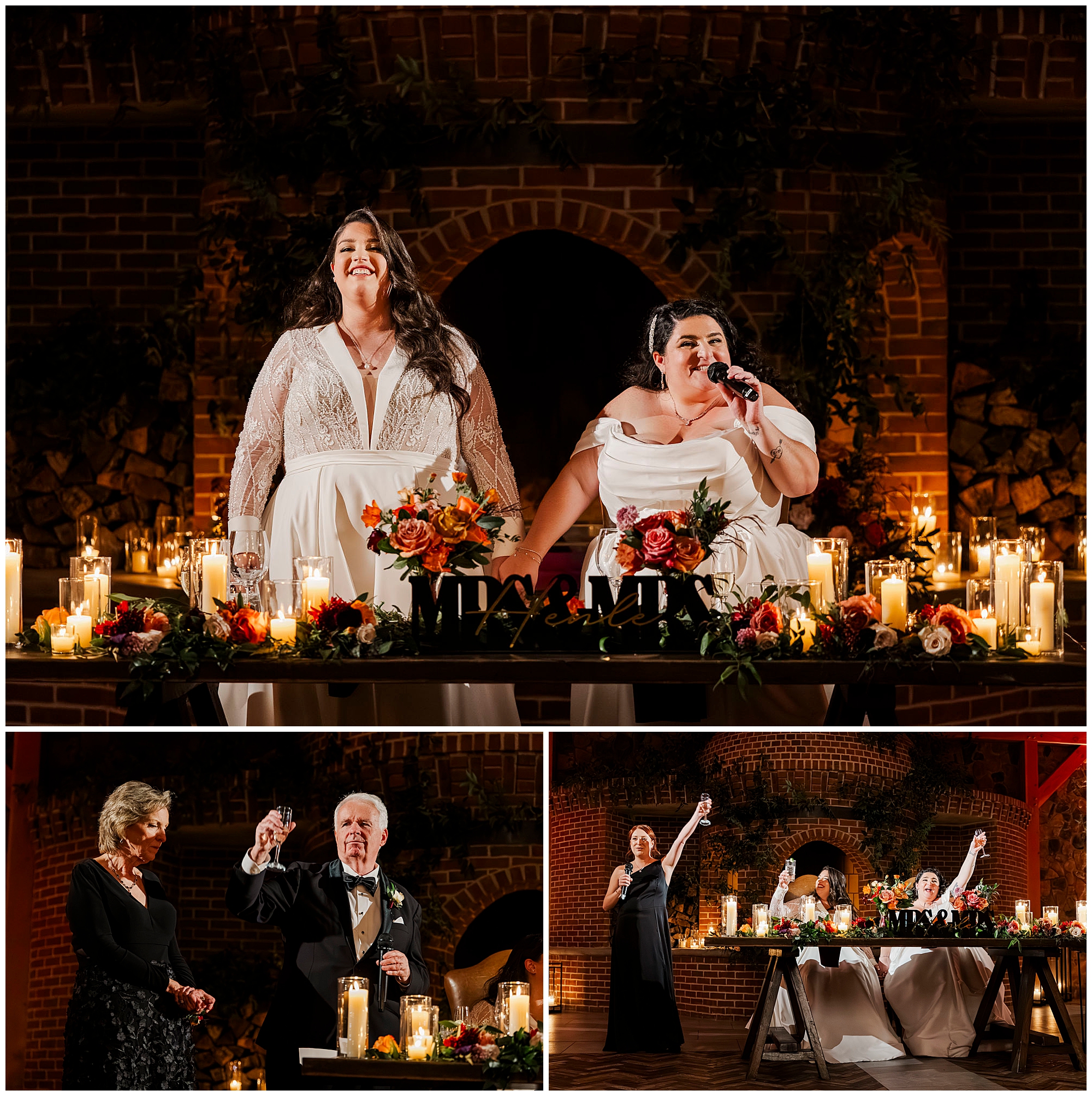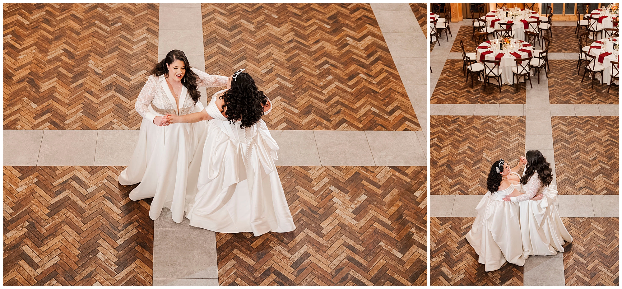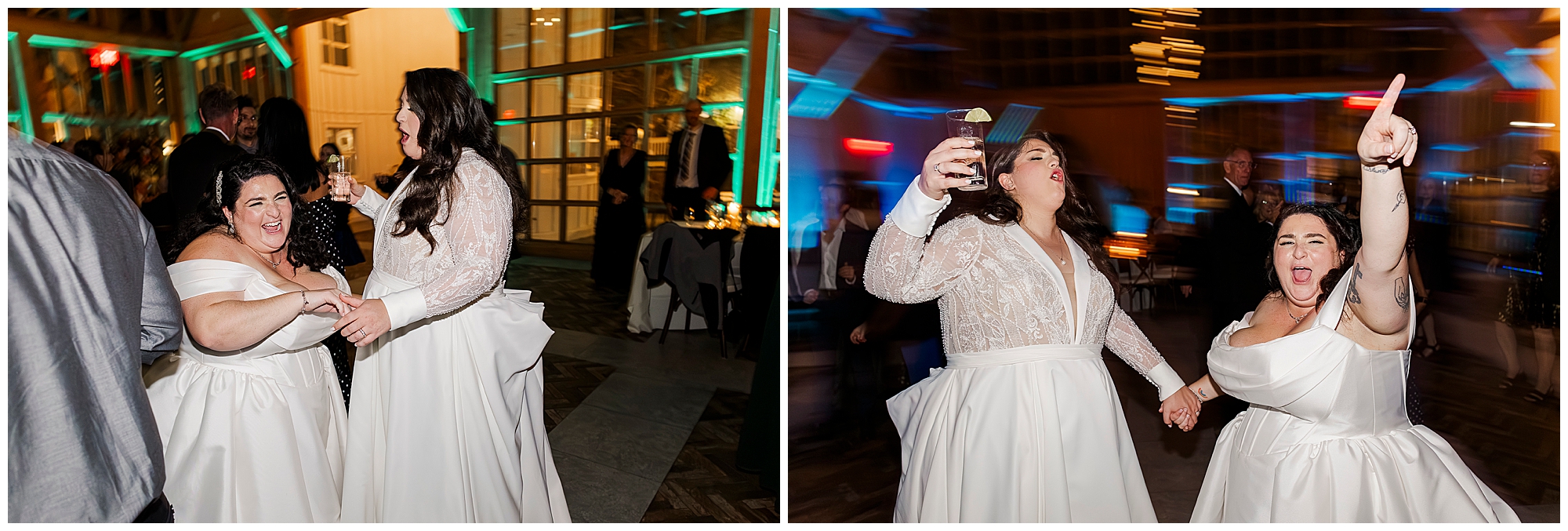 The hair and makeup looked flawless all day. Brides by Sette and Beauty by Samantha Carly created gorgeous looks. Both brides’ styles complemented their personalities perfectly. Moreover, everything held up beautifully through dancing.