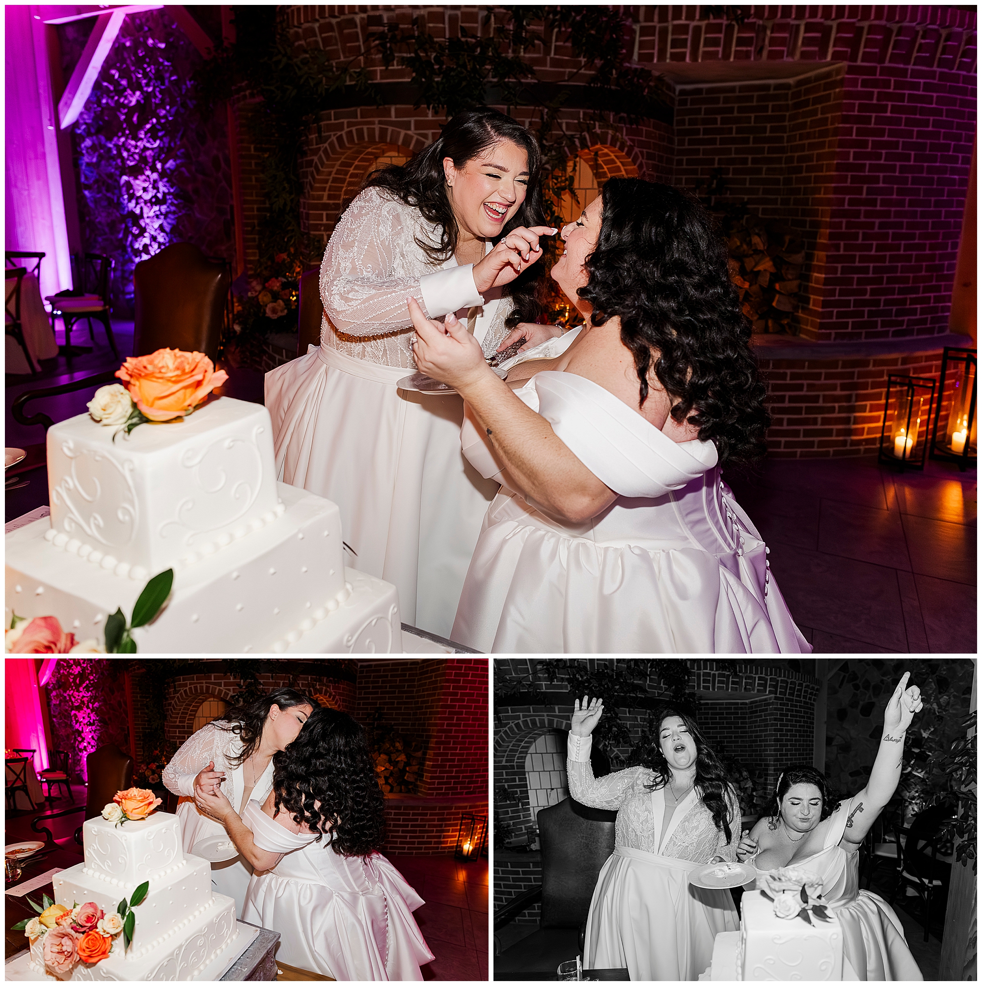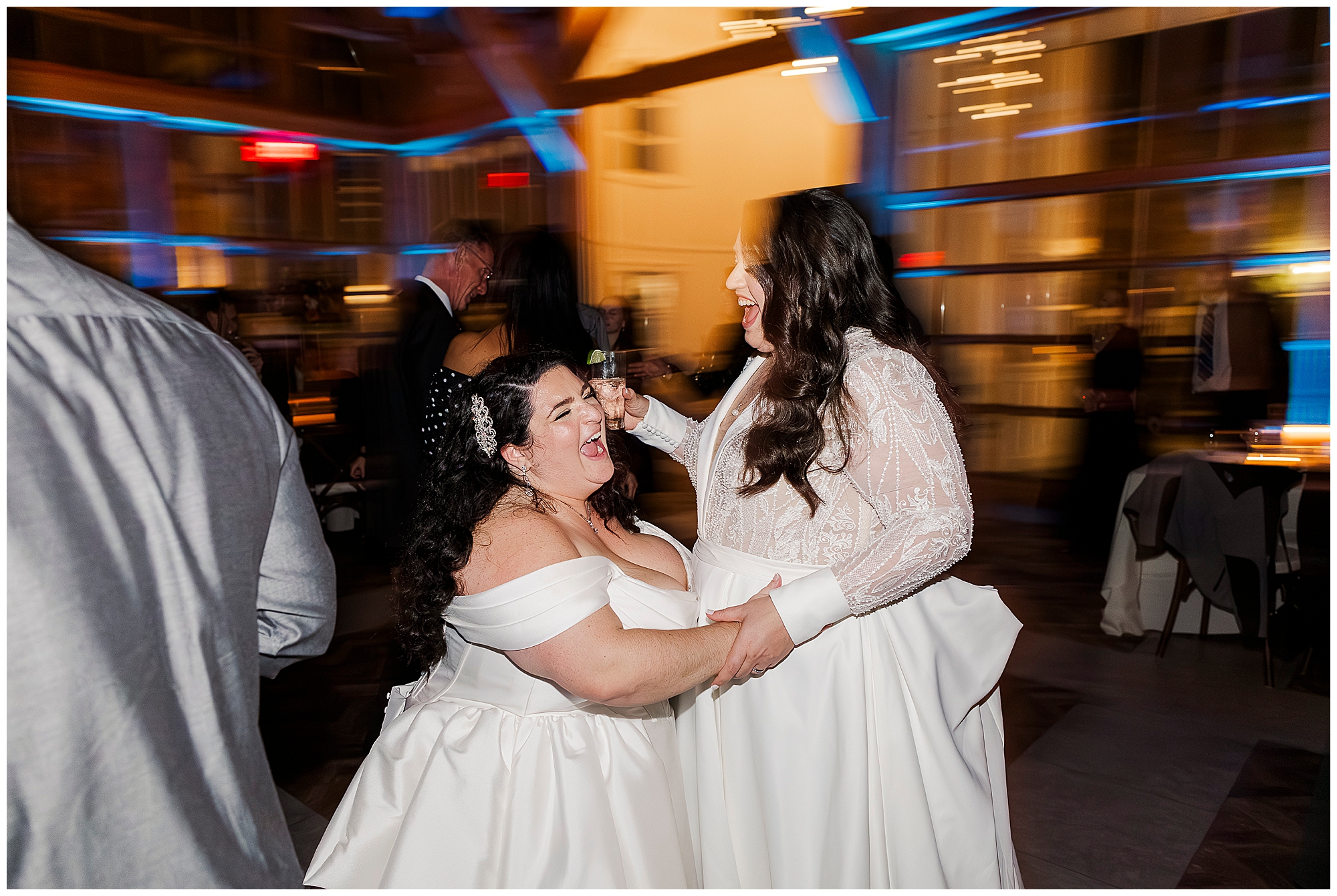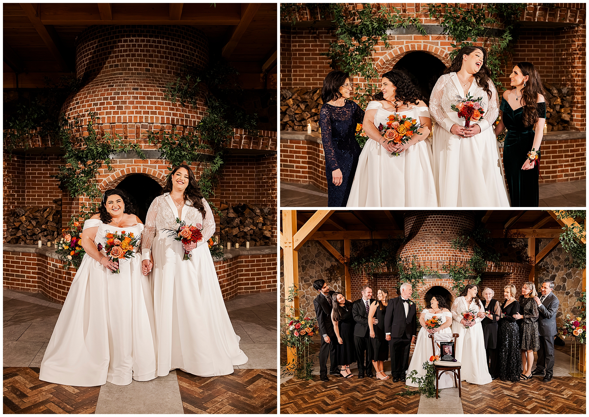 The hair and makeup looked flawless all day. Brides by Sette and Beauty by Samantha Carly created gorgeous looks. Both brides’ styles complemented their personalities perfectly. Moreover, everything held up beautifully through dancing.