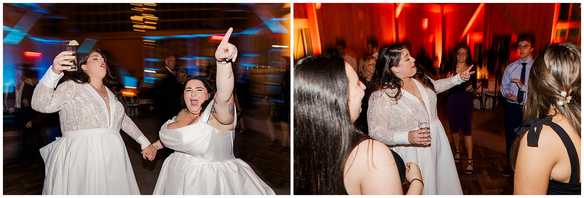 The celebration kicked into high gear quickly. Guests filled the dance floor enthusiastically throughout. The industrial chic aesthetic provided a cool backdrop. Meanwhile, the lighting design enhanced every photograph.