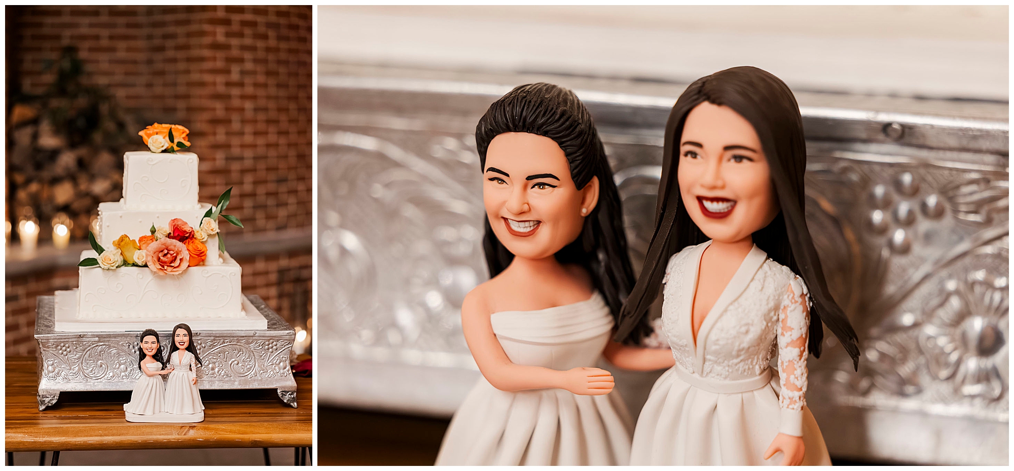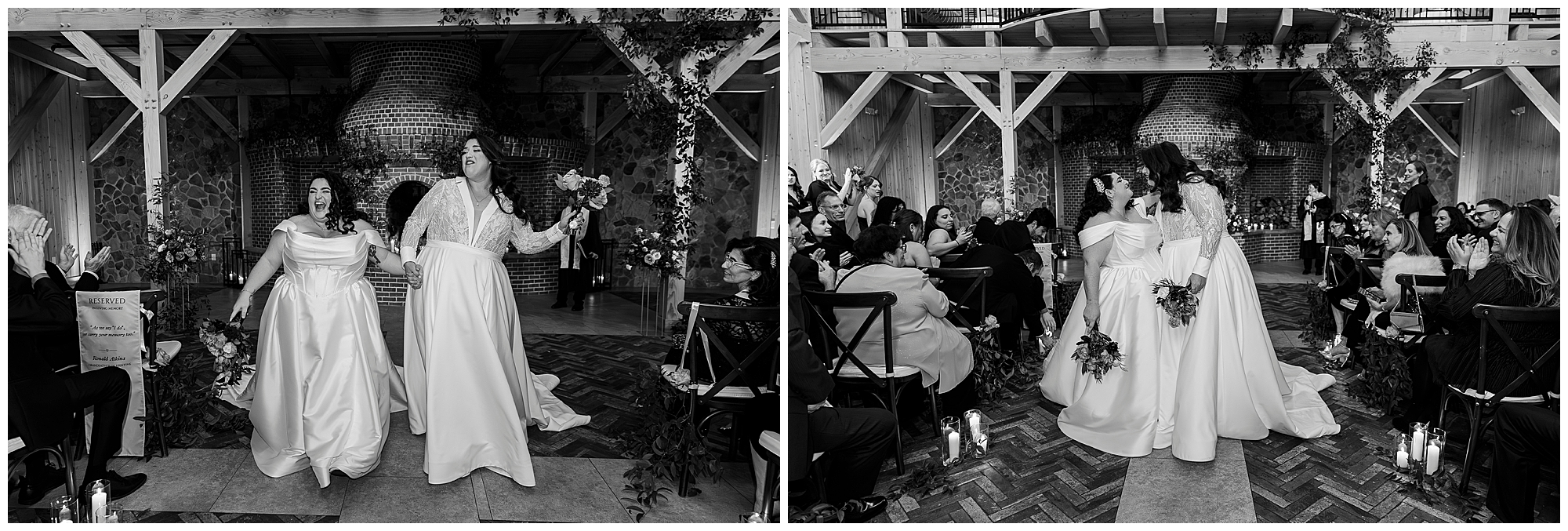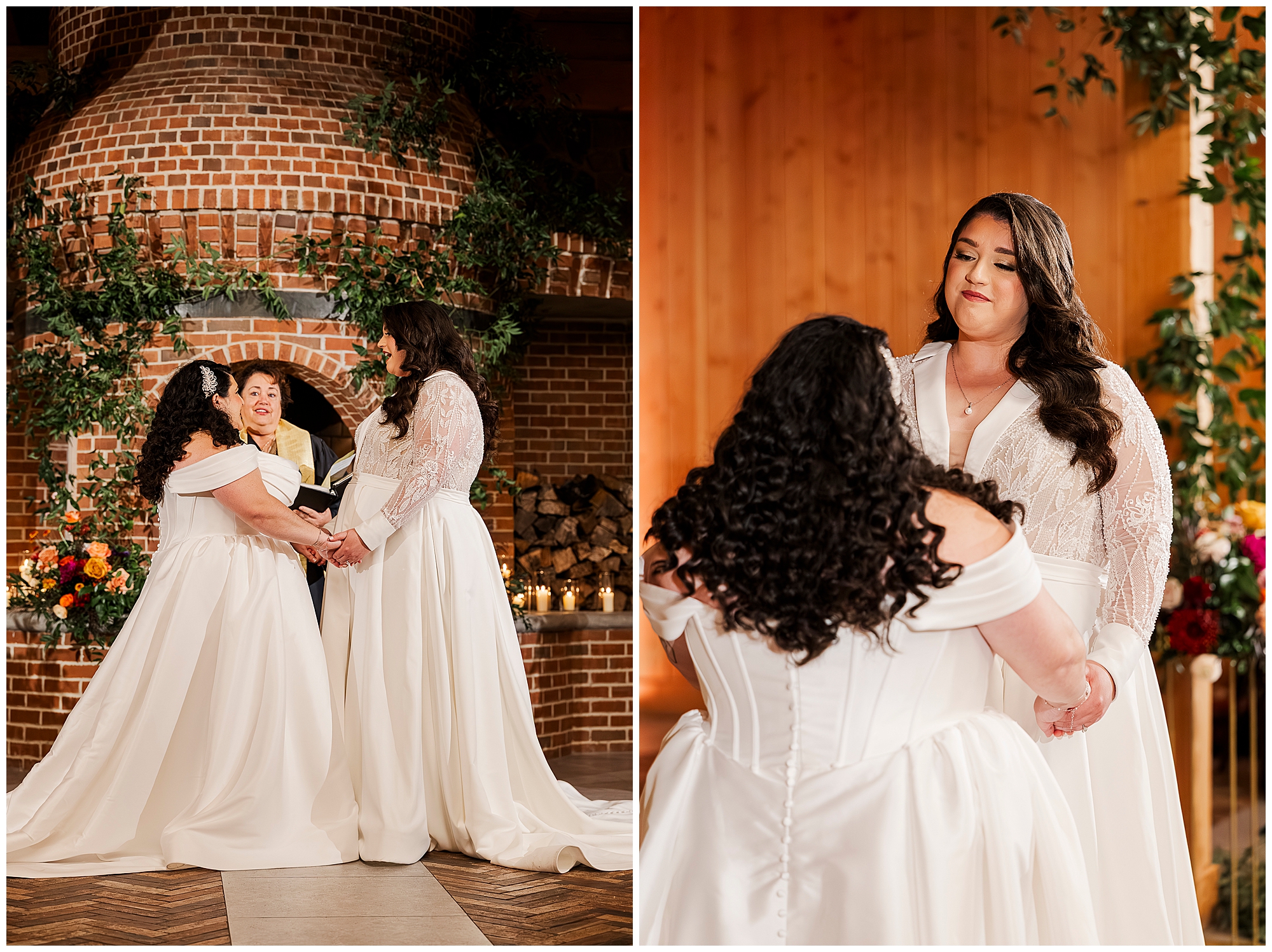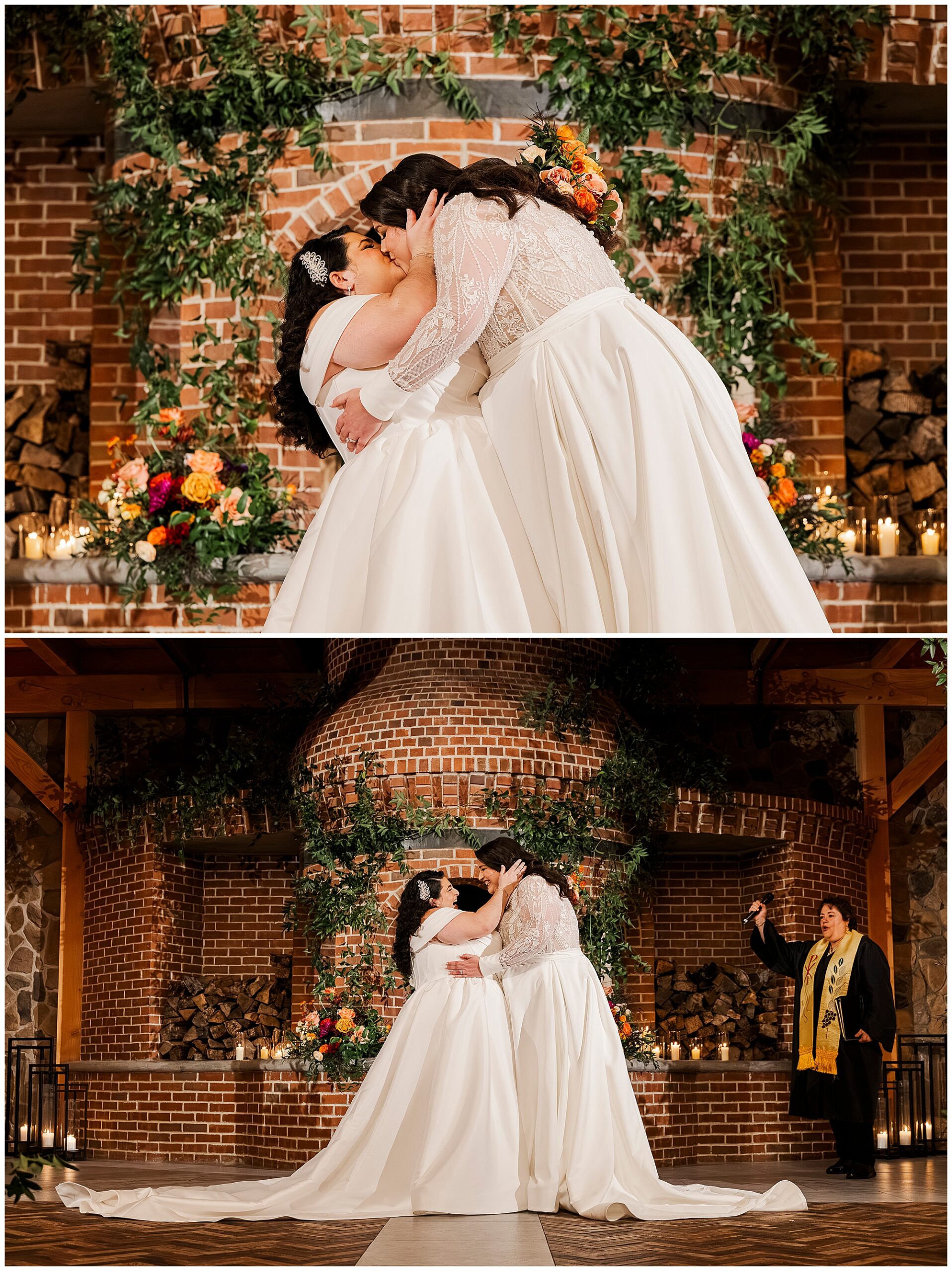 The hair and makeup looked flawless all day. Brides by Sette and Beauty by Samantha Carly created gorgeous looks. Both brides’ styles complemented their personalities perfectly. Moreover, everything held up beautifully through dancing.
