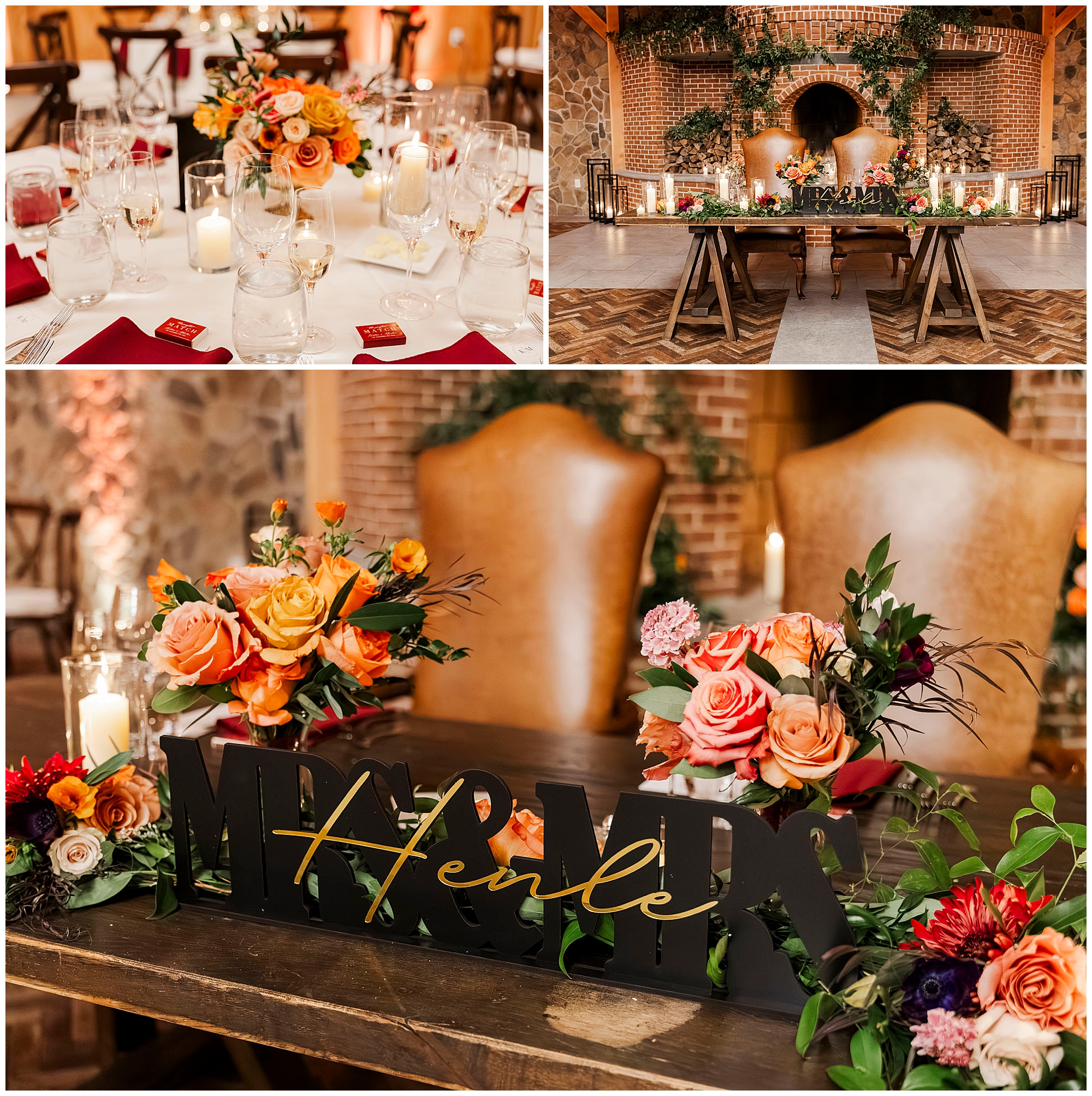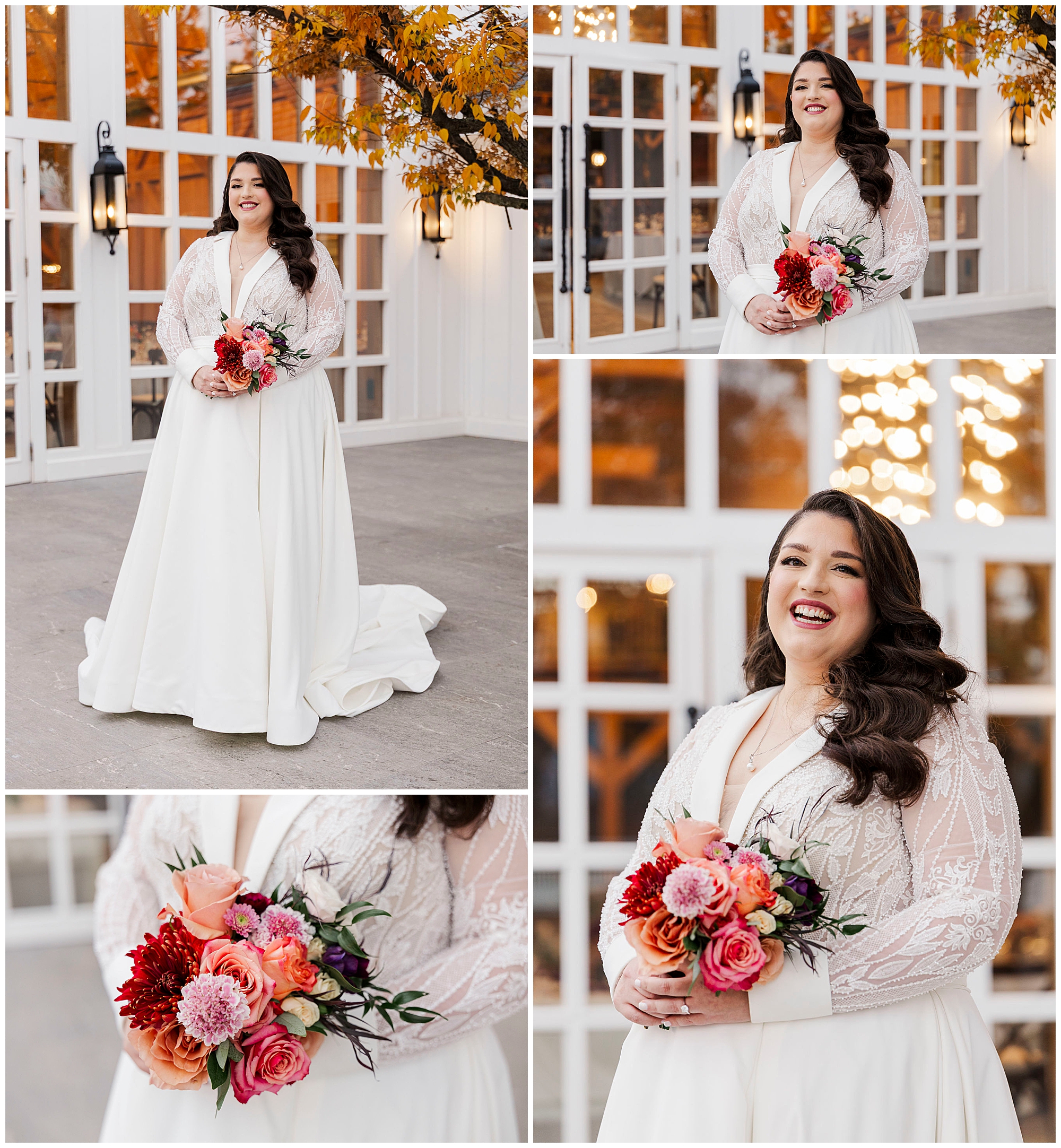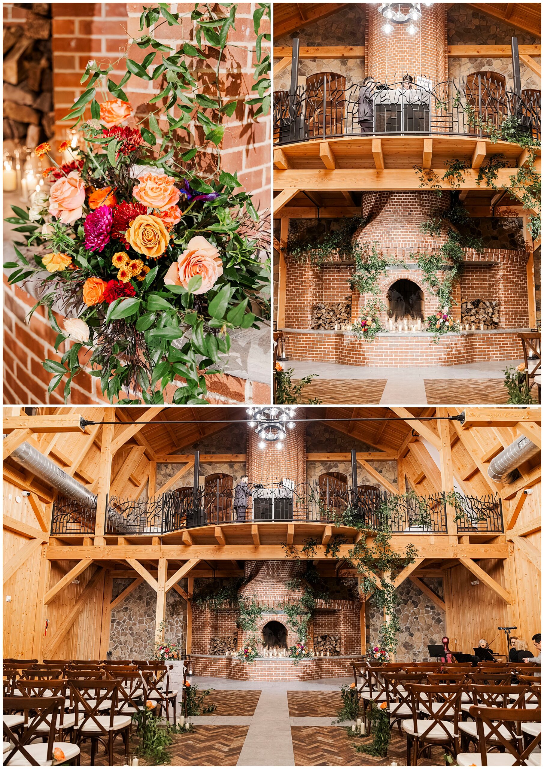The Silo wedding featured gorgeous florals. The Botanical Box designed stunning arrangements in fall colors. Rich burgundy, orange, and coral tones dominated. These seasonal blooms complemented the venue’s aesthetic perfectly.