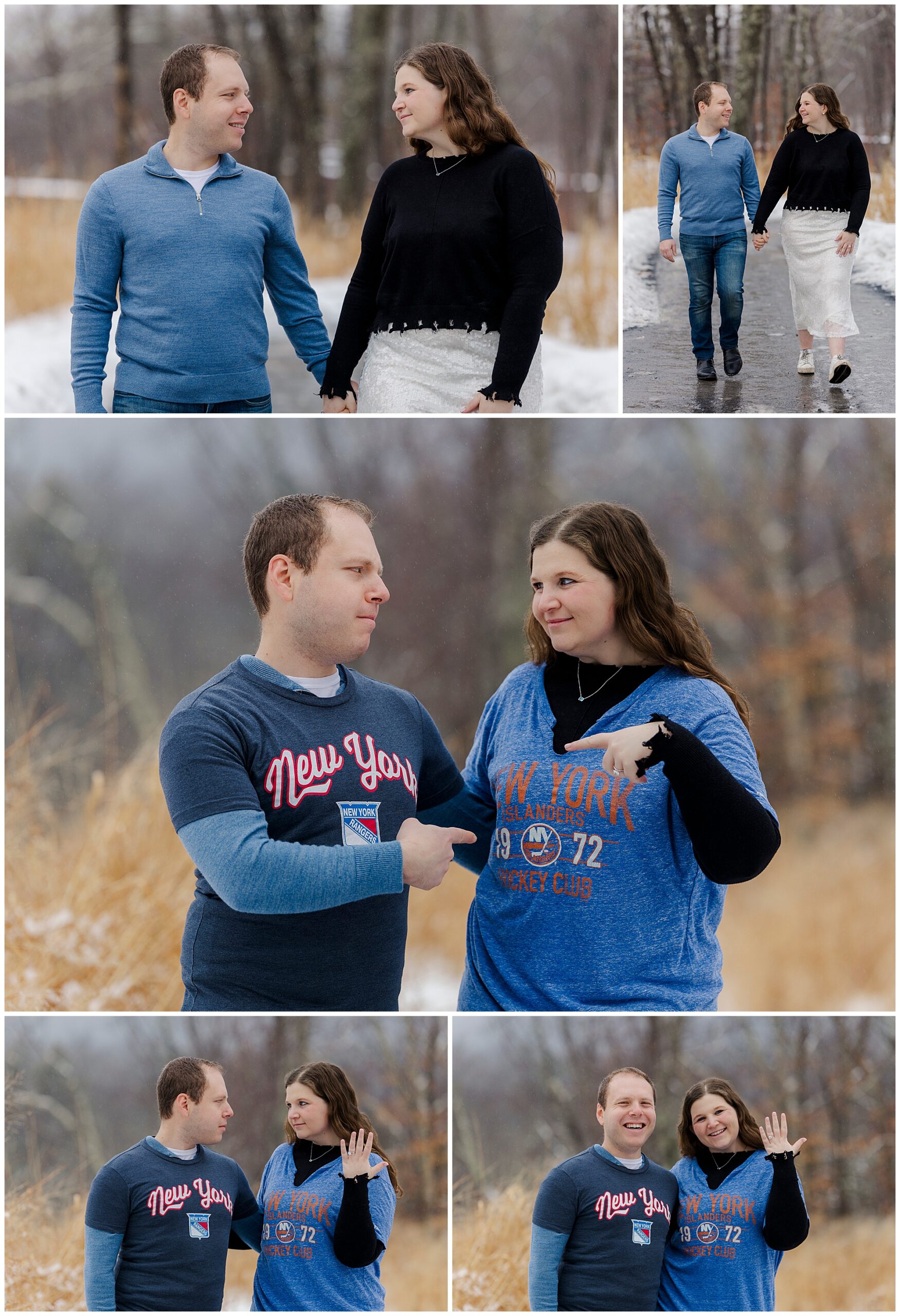 To close out the session, Matt and Haley pulled out their opposing hockey team jerseys. Naturally, we absolutely loved this personal and playful detail as Hudson Valley proposal photographers. These kinds of authentic touches always make a session feel so uniquely personal. In addition, it gave us a glimpse into the fun dynamic this couple shares every day.