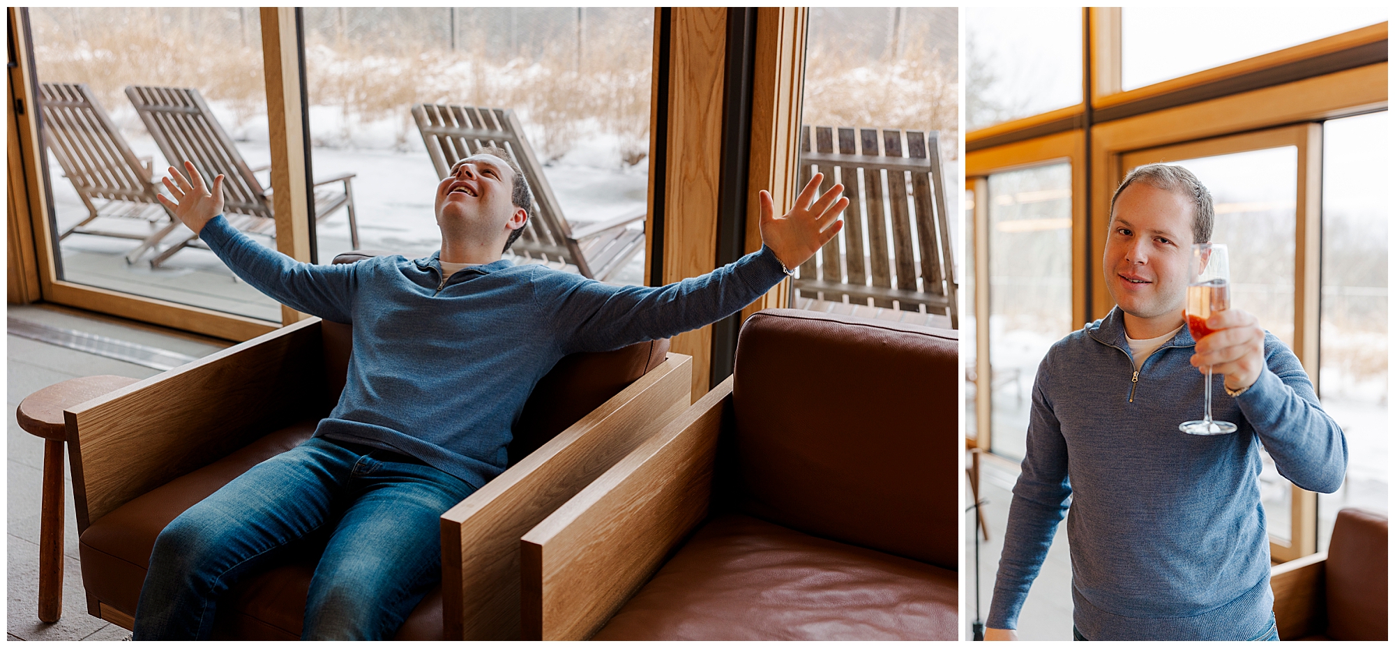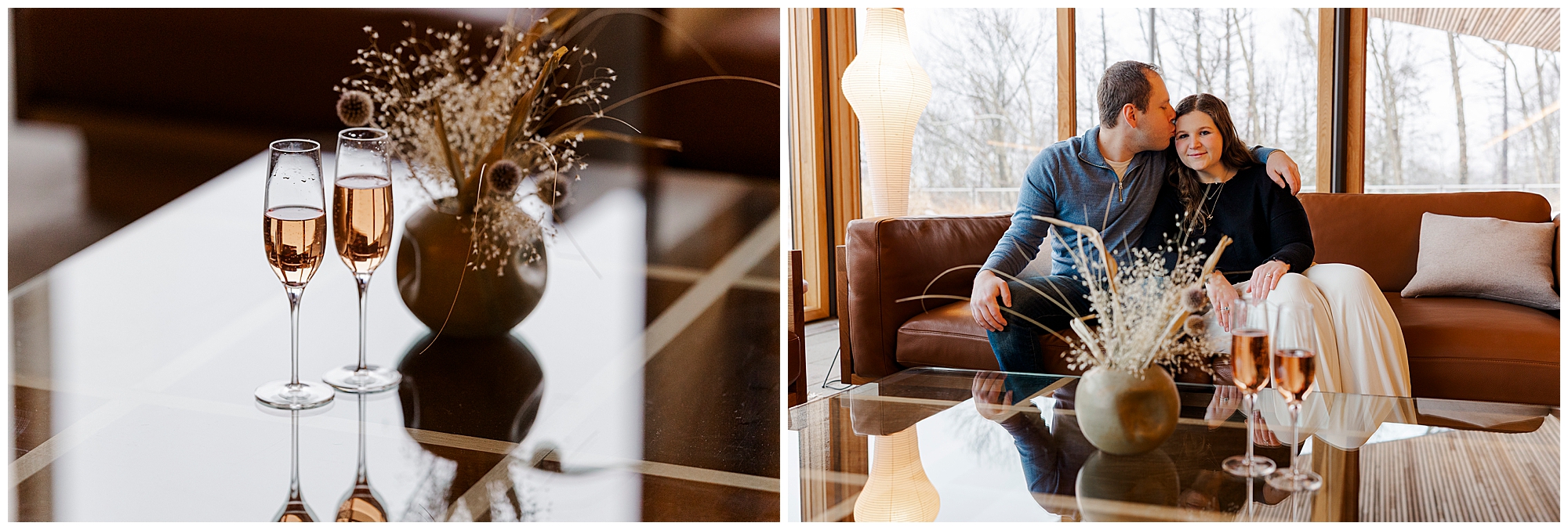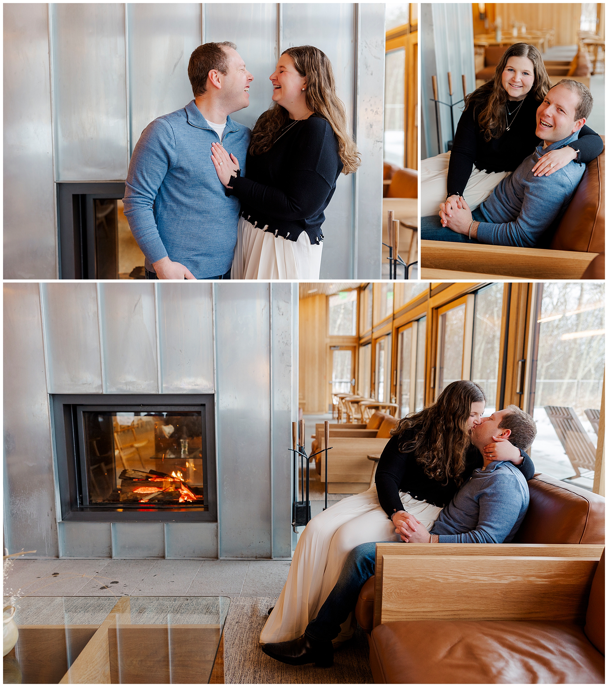 After the proposal, they headed back inside to cozy up by the fire in the lobby. They sat together and simply took in the moment, which was so beautiful to witness. As Hudson Valley proposal photographers, we always encourage couples to pause and soak it all in. Furthermore, the hotel surprised them with champagne to celebrate, adding the sweetest unexpected touch.