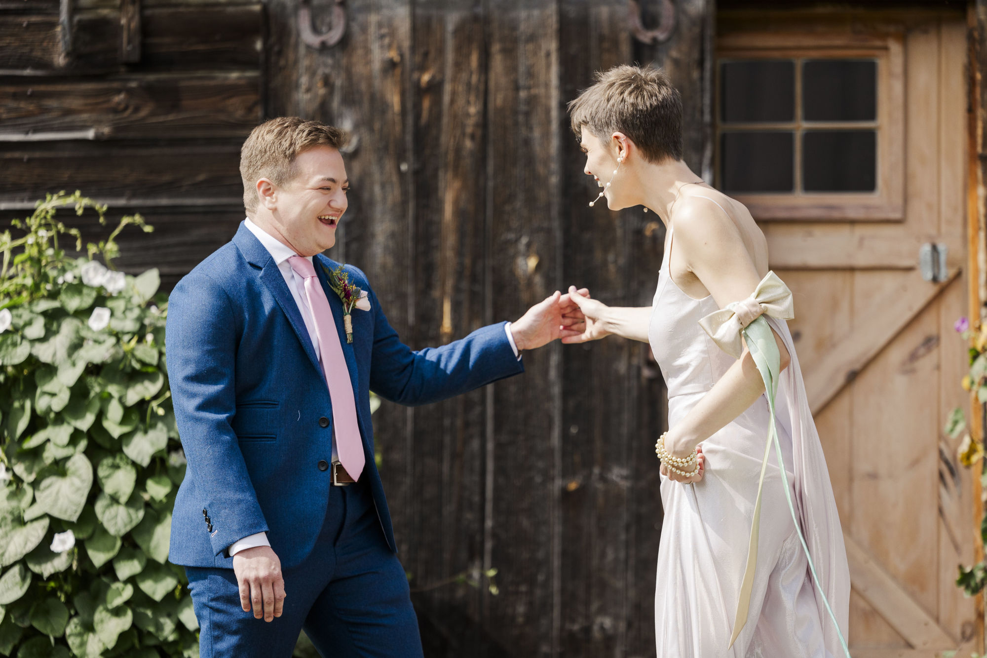 Your wedding day can feel like a whirlwind, with everyone wanting a piece of your attention. A first look gives you a few quiet minutes to connect with your partner before the celebration begins. You can laugh, cry, breathe, and soak in that feeling of truly being together. Some couples even choose to read private vows during their first look, creating an intimate and emotional moment that feels deeply personal. It is one of our favorite parts of any Hudson Valley wedding day because it is so raw and real.