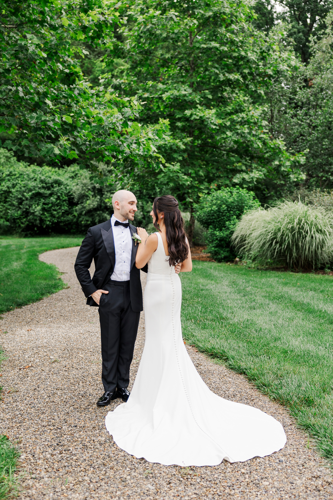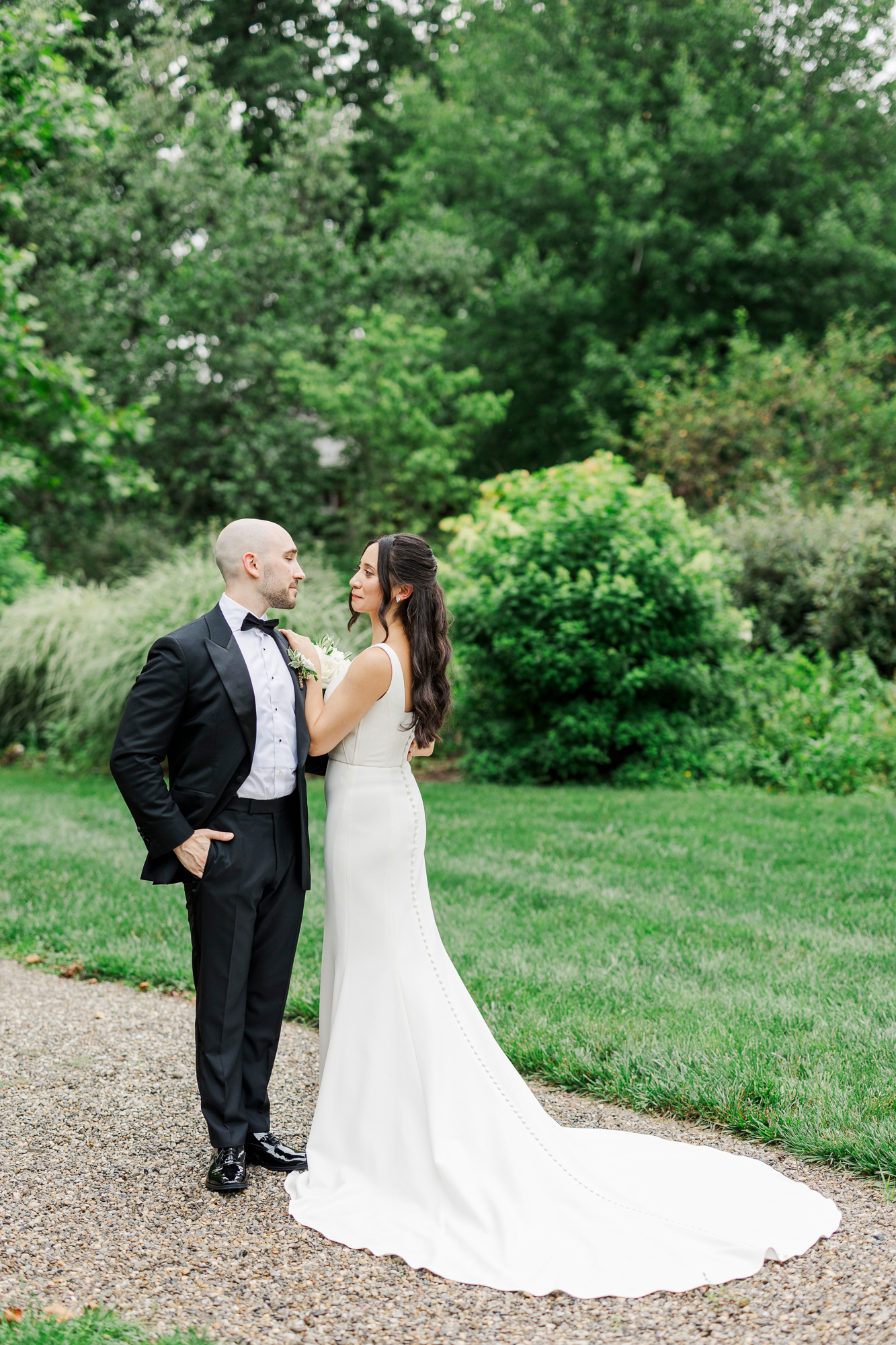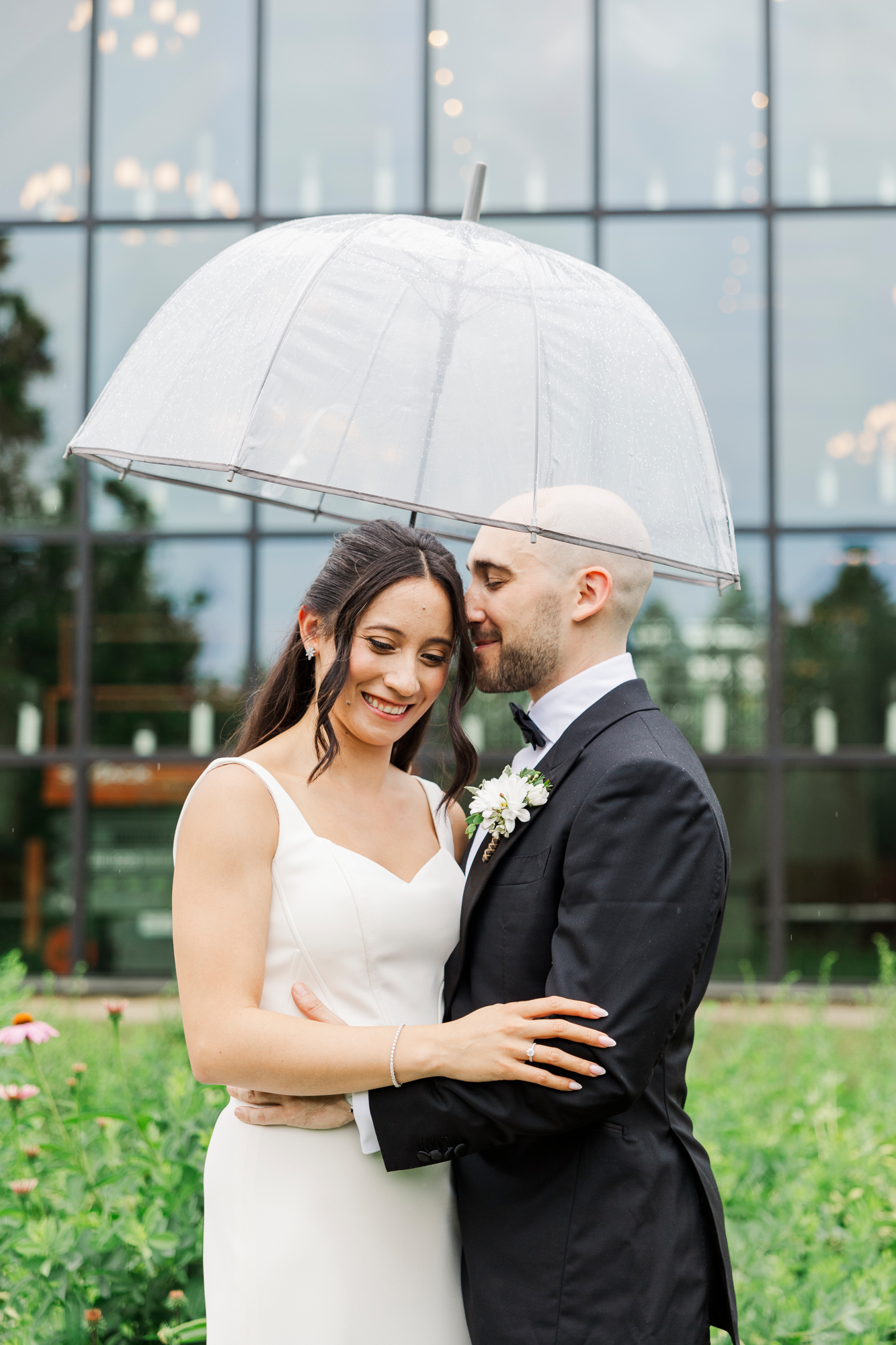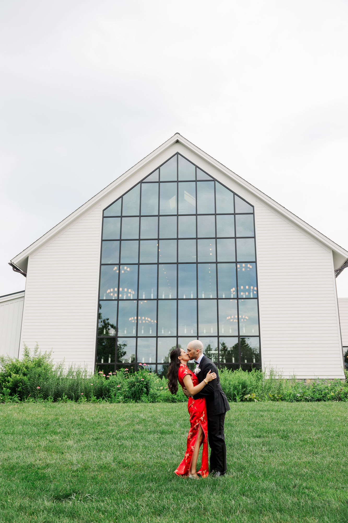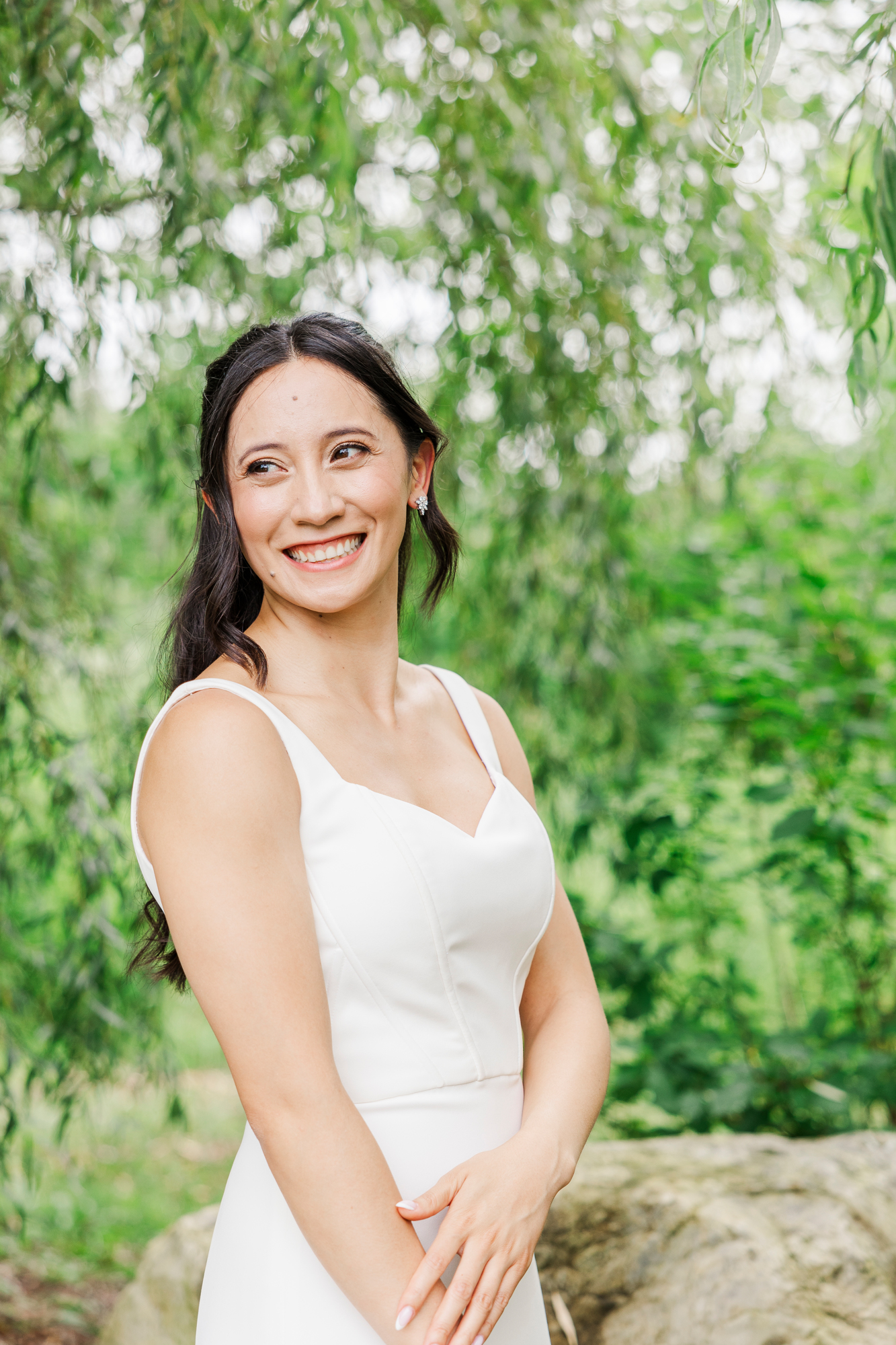 The first look took place in the rain, just outside of the playhouse. We then took the couple outside of the farmhouse for portraits with their umbrella. The rain started to clear up just in time for couples photos within the weeping willow trees. These two then changed for their tea ceremony in the Conservatory.