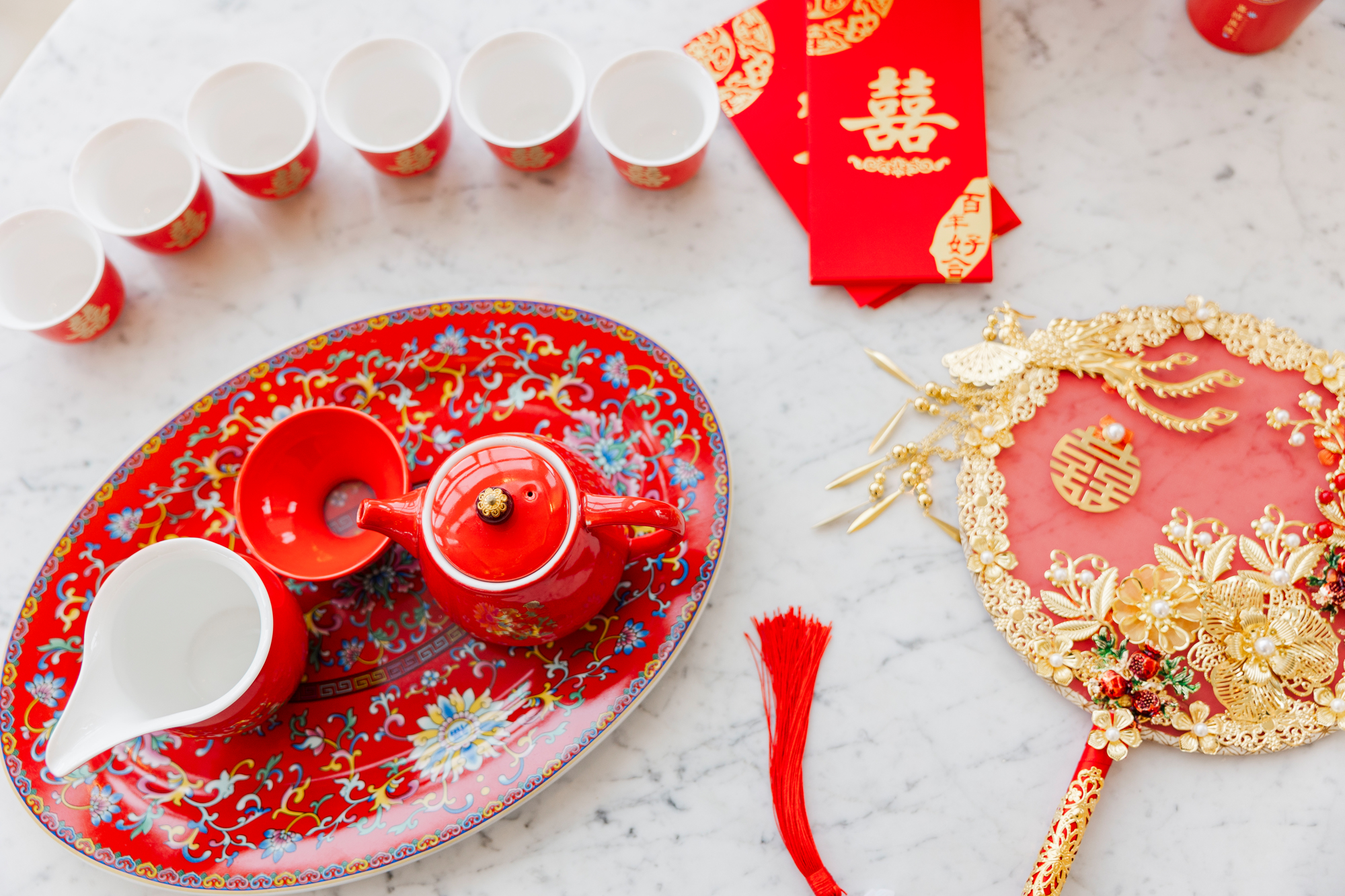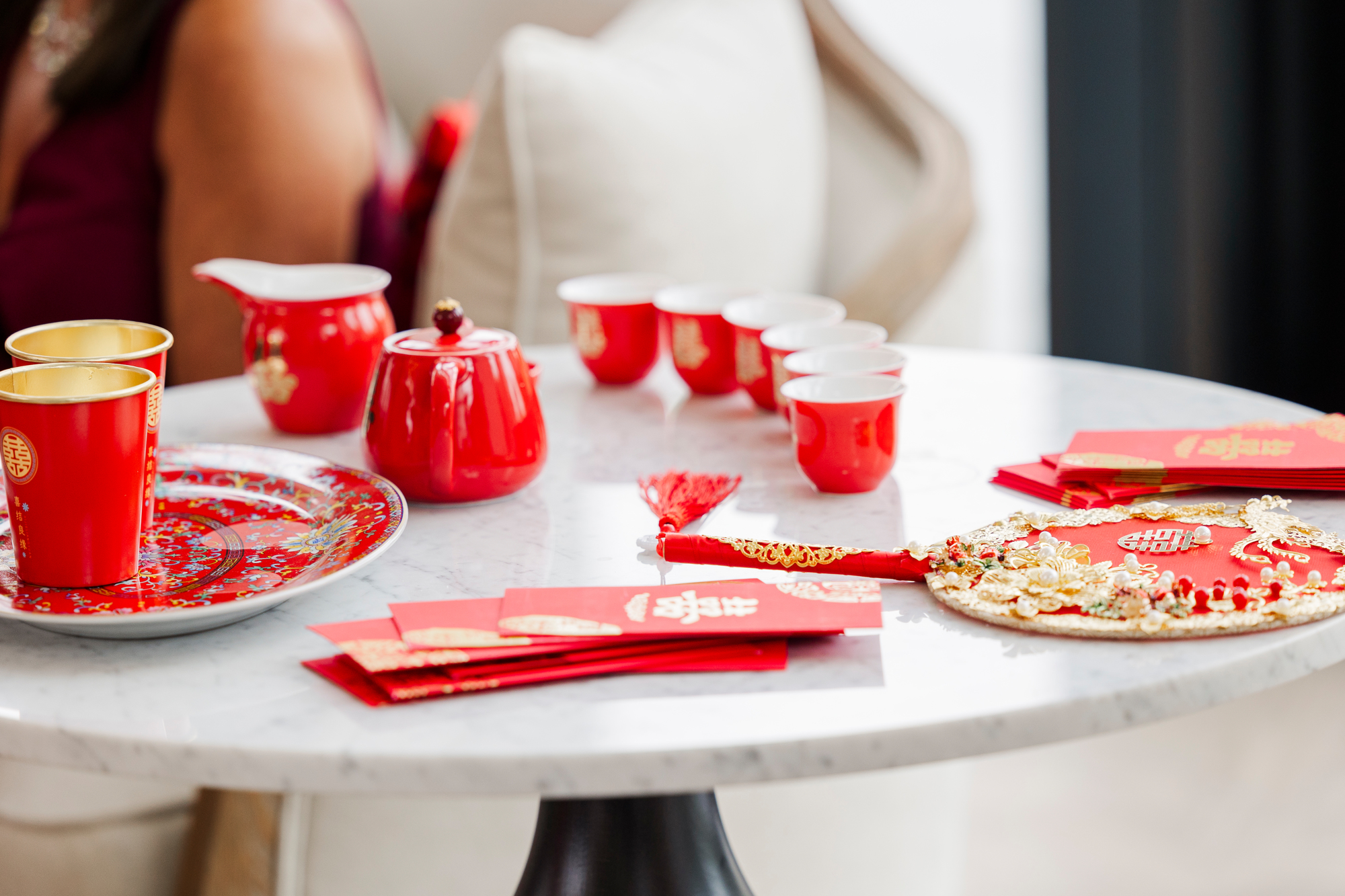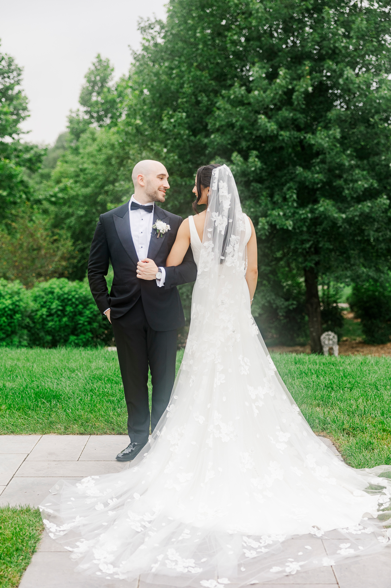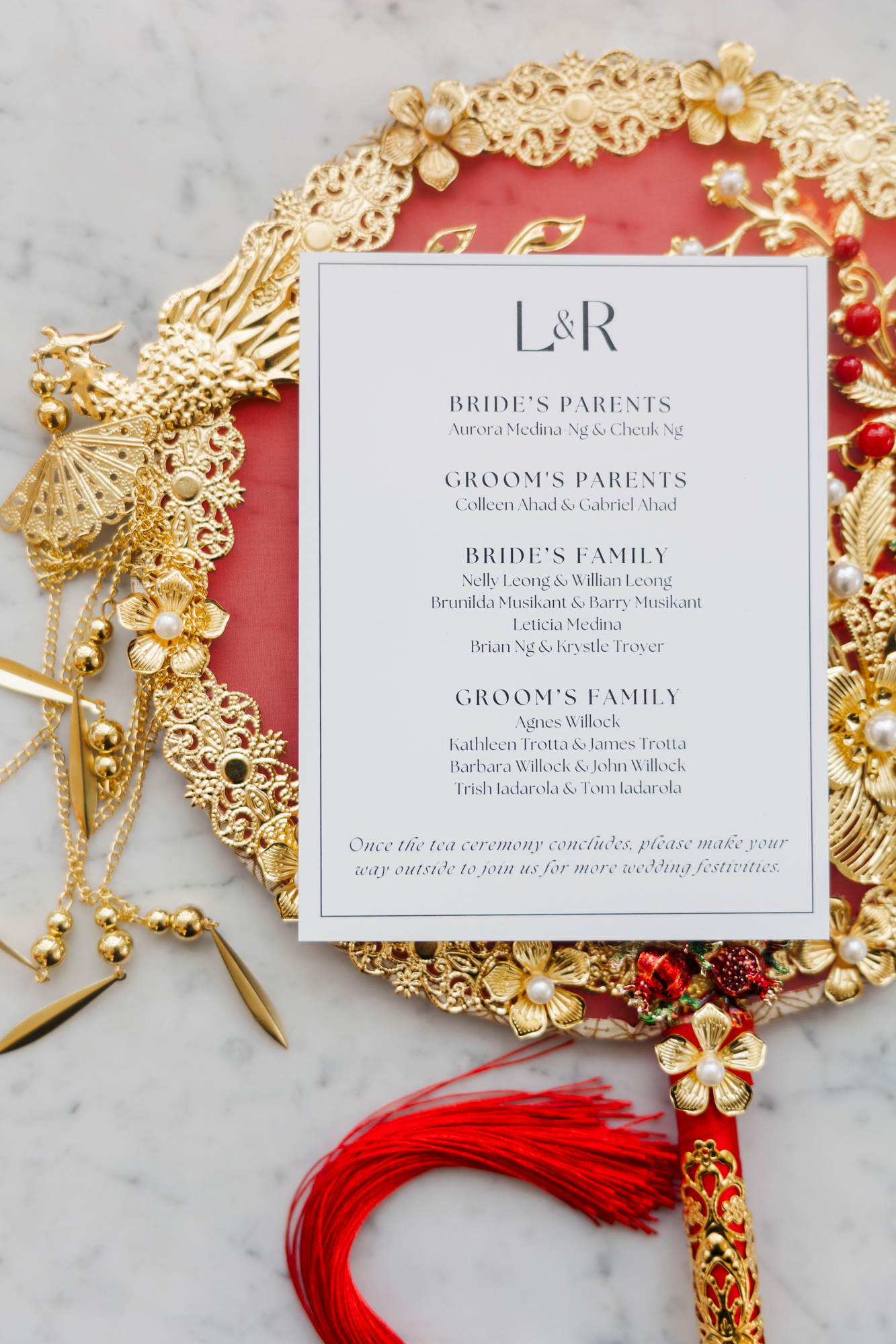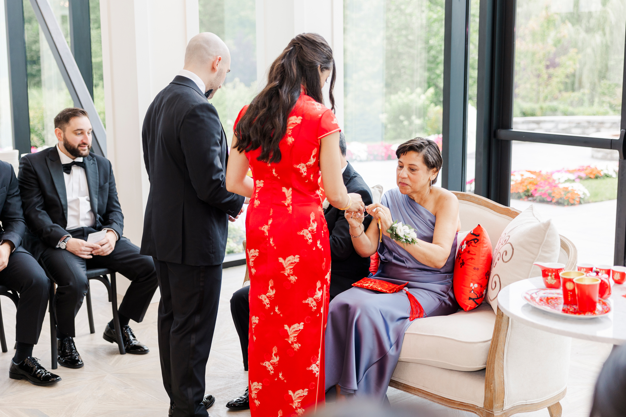 The first look took place in the rain, just outside of the playhouse. We then took the couple outside of the farmhouse for portraits with their umbrella. The rain started to clear up just in time for couples photos within the weeping willow trees. These two then changed for their tea ceremony in the Conservatory.