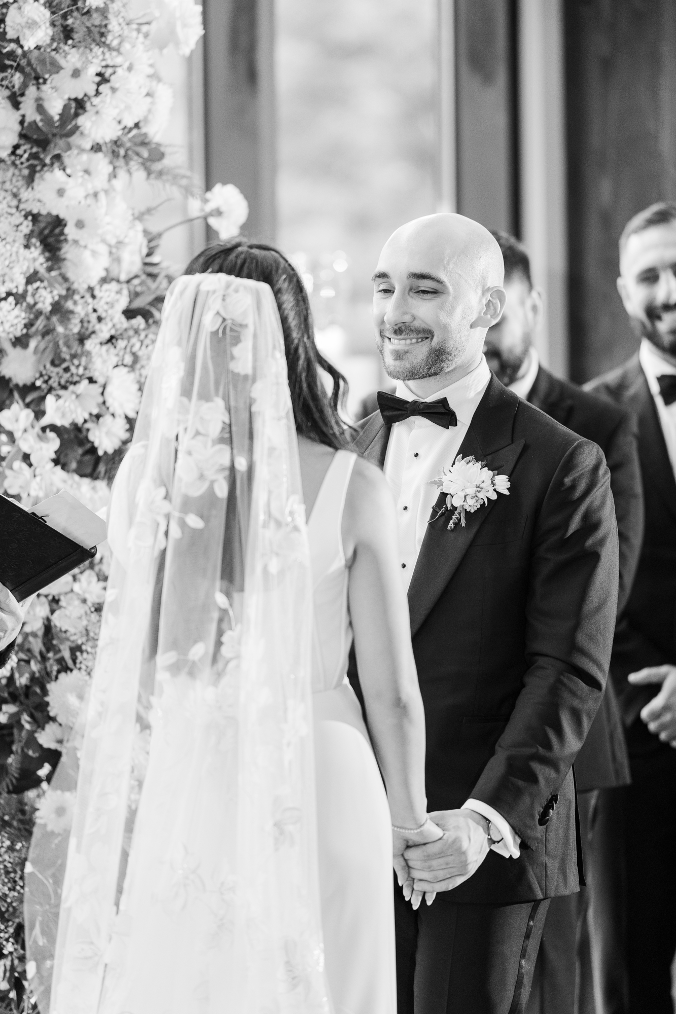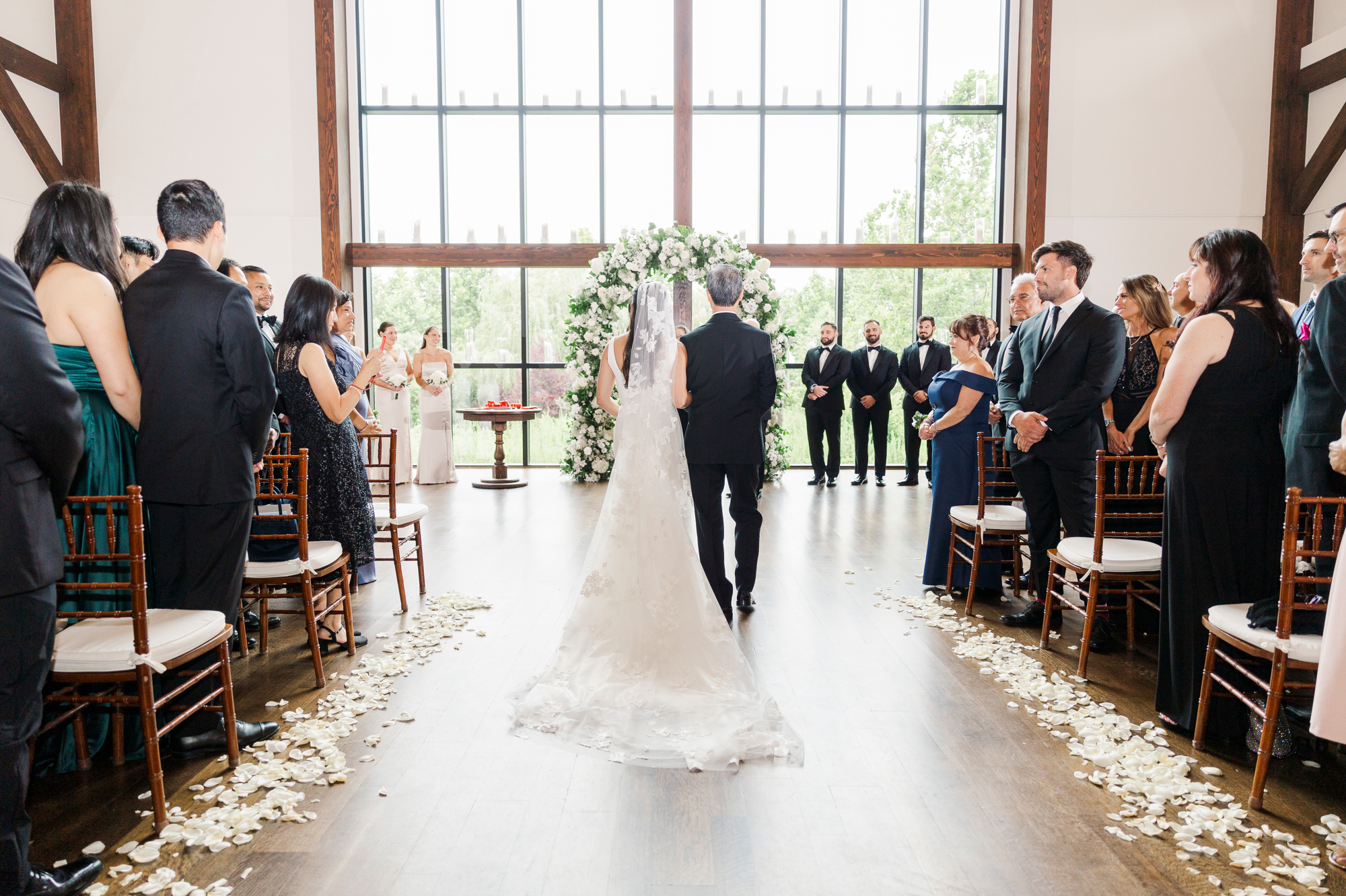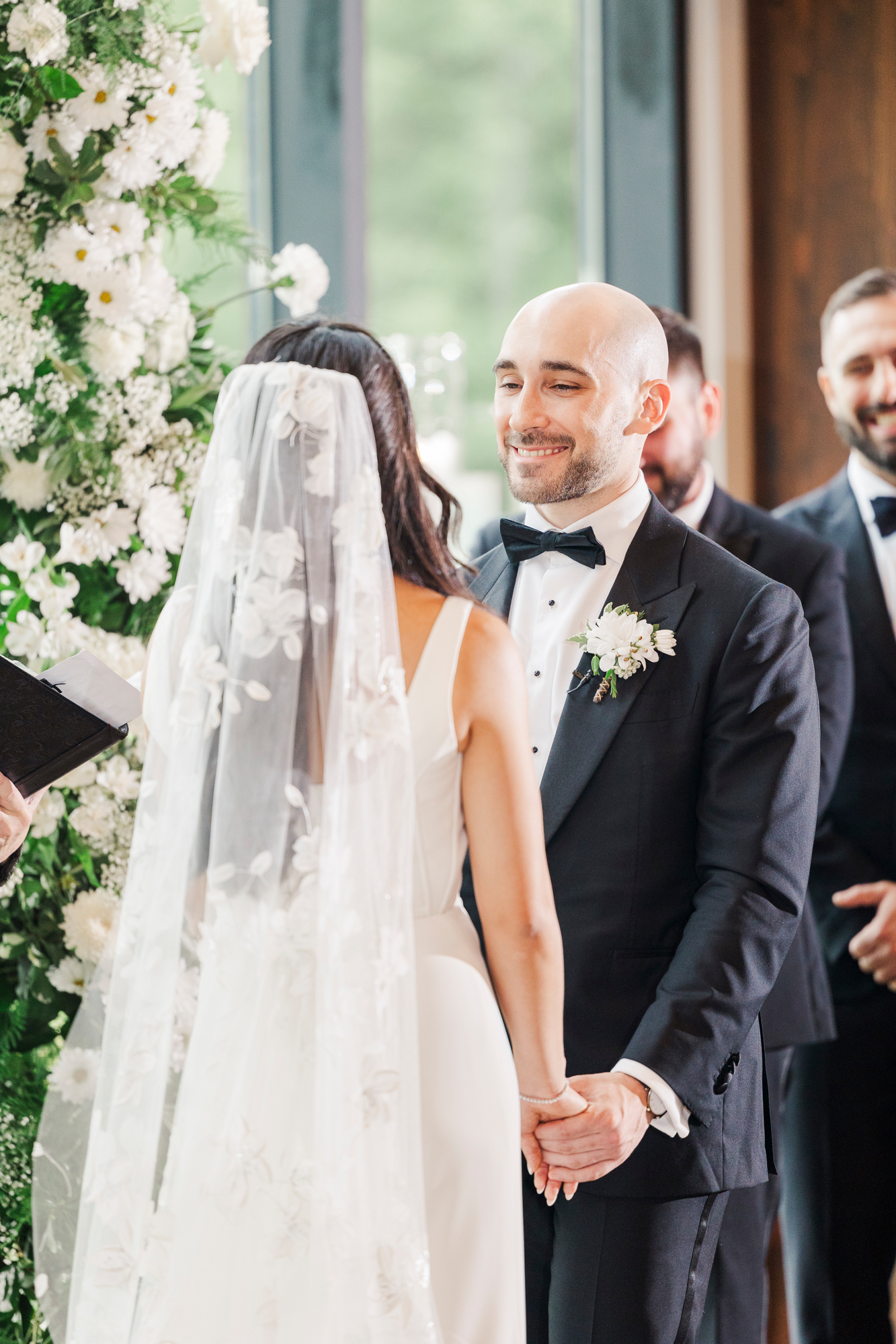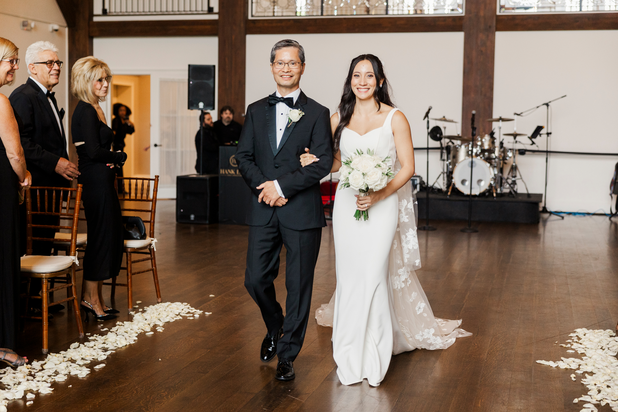 The tea ceremony for this Crossed Keys Estate wedding was beautifully lit within the space. Laura and Rob then went outside for portraits before changing back into their ceremony attire. Shortly after, they recited private vows in the farmhouse suite before walking down the aisle. The ceremony was sweet and sentimental, and perfectly reflected the couple’s love story.